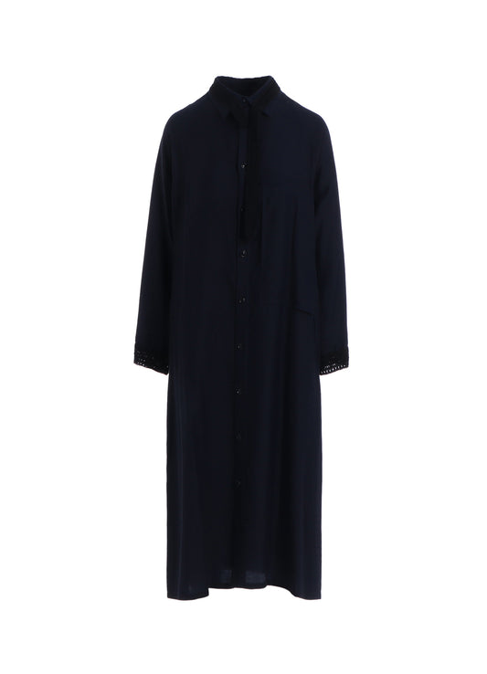 CUPRO DUNGAREE TWILL CROCHET COMBINATION SHRT DRESS