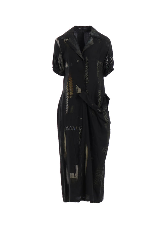 CU/DUNGAREE TWILL DARK NEON PRINT LEFT SIDE GATHERED DRESS
