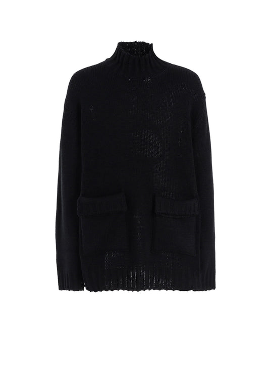 BULKY WOOL BIG POCKET HIGH NECK KNIT