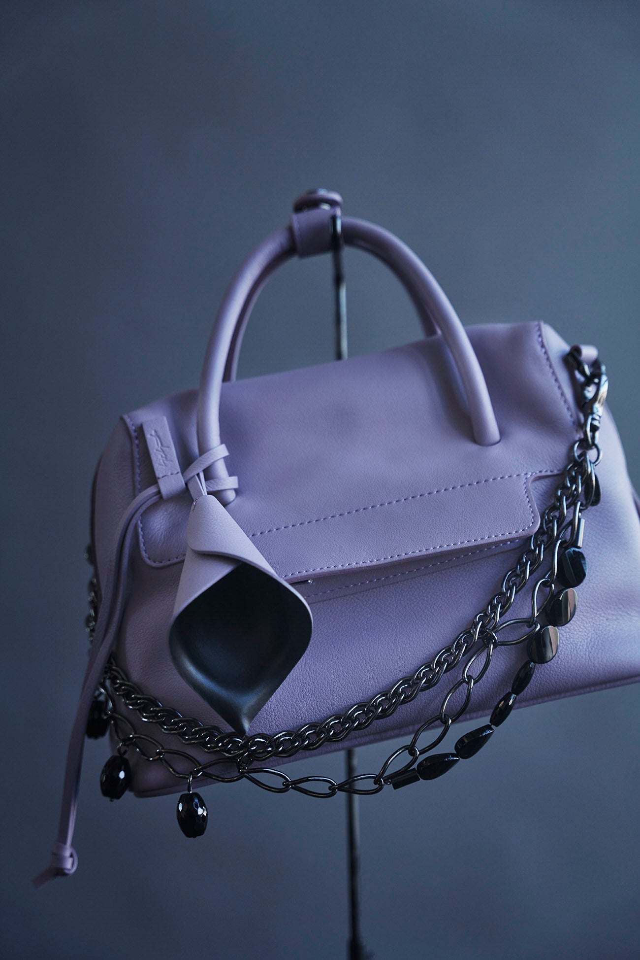 A shoulder belt adorned with a charm that combines a small black stone emitting a deep glow and a keychain, exuding the delicacy of jewelry. This accessory adds a subtle yet striking accent to any outfit, enhancing your style effortlessly.