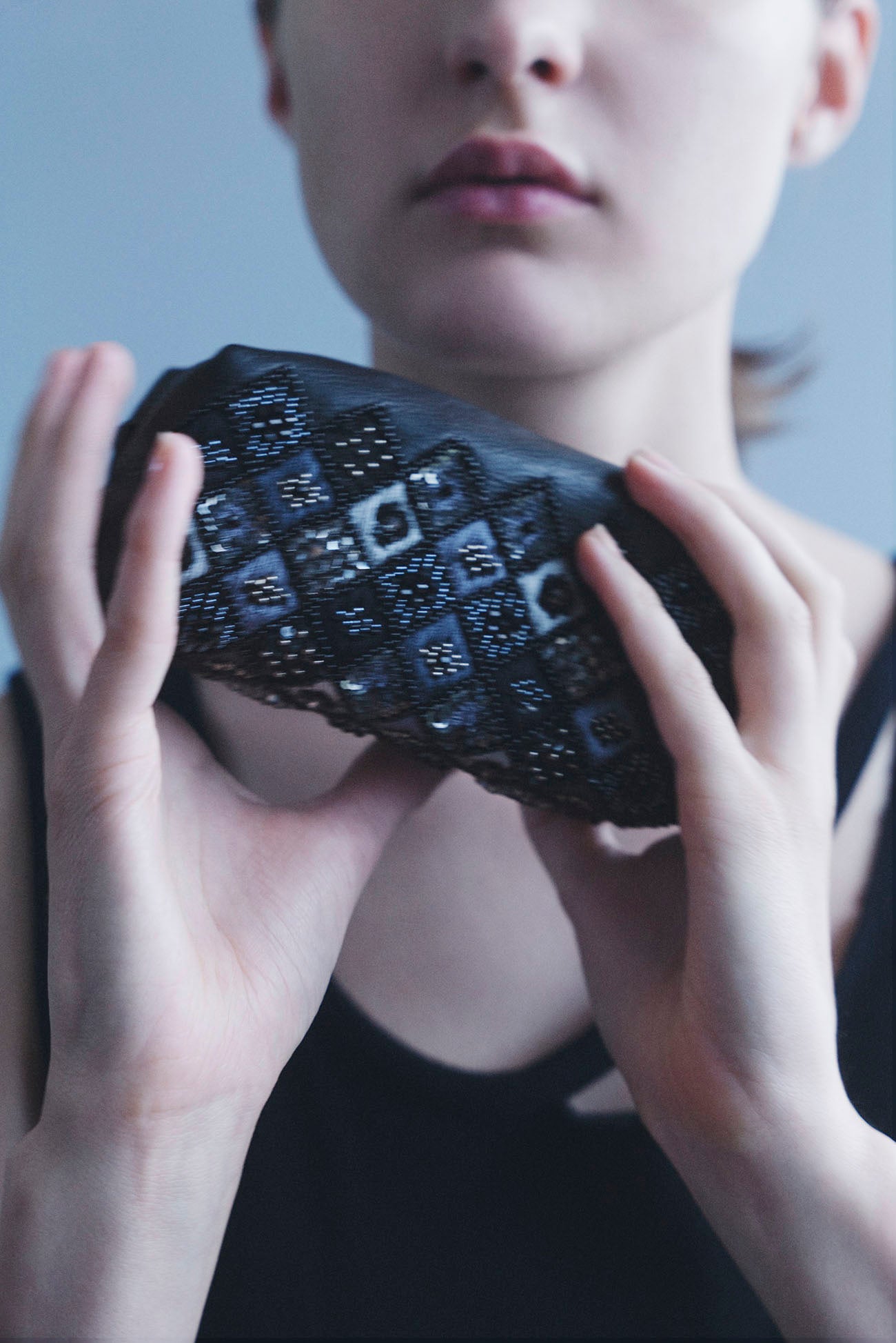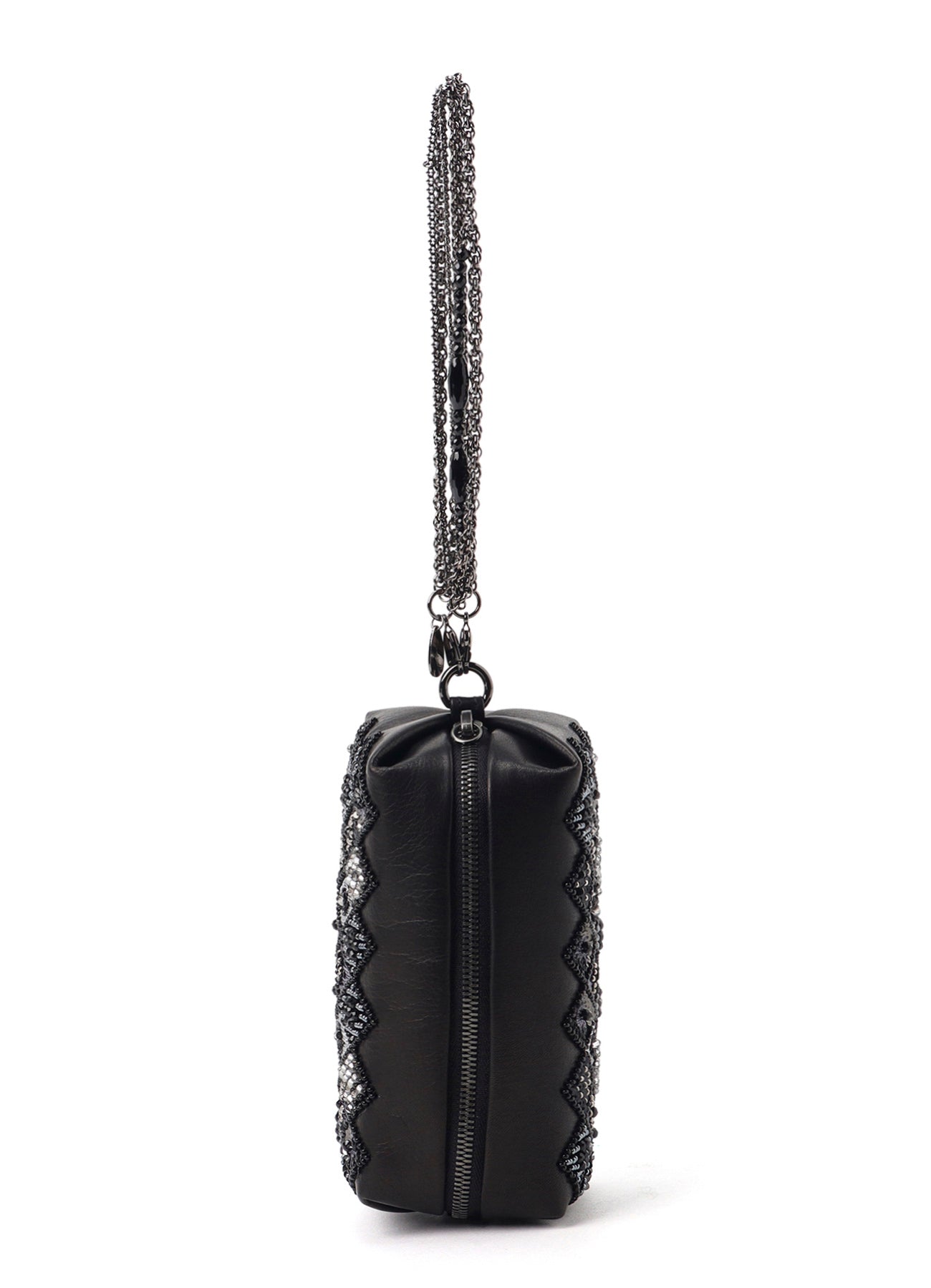 This petite pouch, perfect for the palm of your hand, showcases a unique array of beads crafted with Indian traditional embroidery techniques. Each piece has a distinct expression, allowing for versatility in use—as a pouch alone, a bag charm, or an accessory, encouraging personalized styling.