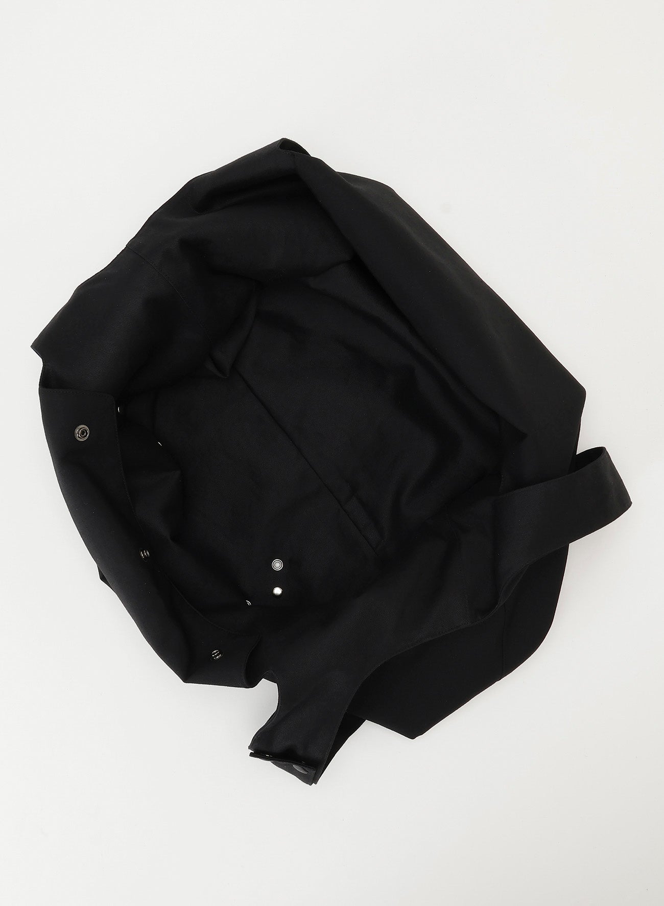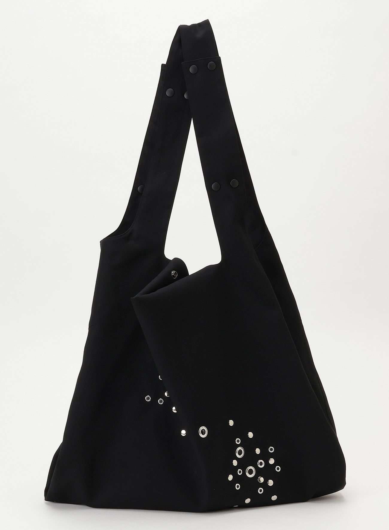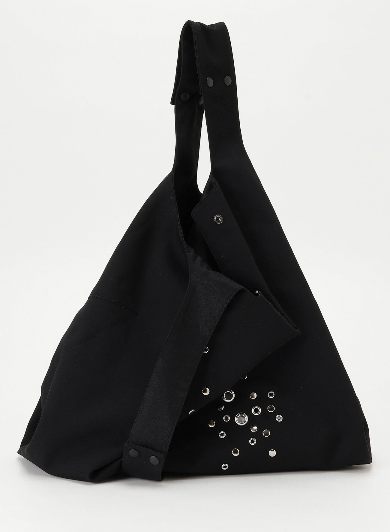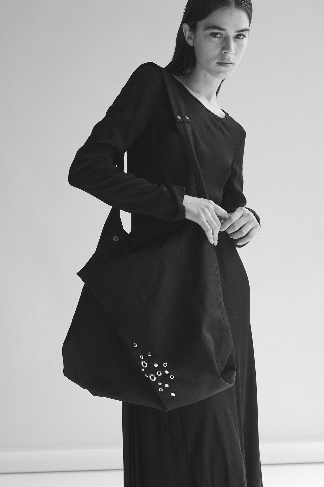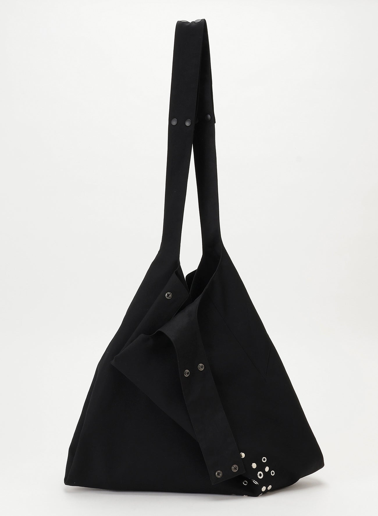 discord Yohji Yamamoto stellt eine neue Tasche aus ihrer charakteristischen "INFINITE"-Linie vor. Diese Tasche definiert eine einfache Einkaufstasche neu und kann dank der Positionierung ihrer Clip-Knöpfe auf 3 verschiedene Arten verwendet werden. Sie verfügt über verspielte Y-förmige Seitennähte und zufällig platzierte Ösen und Nieten.