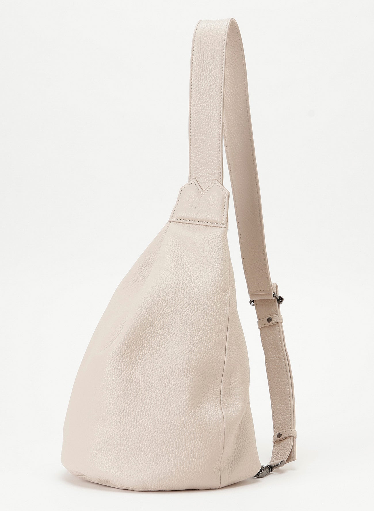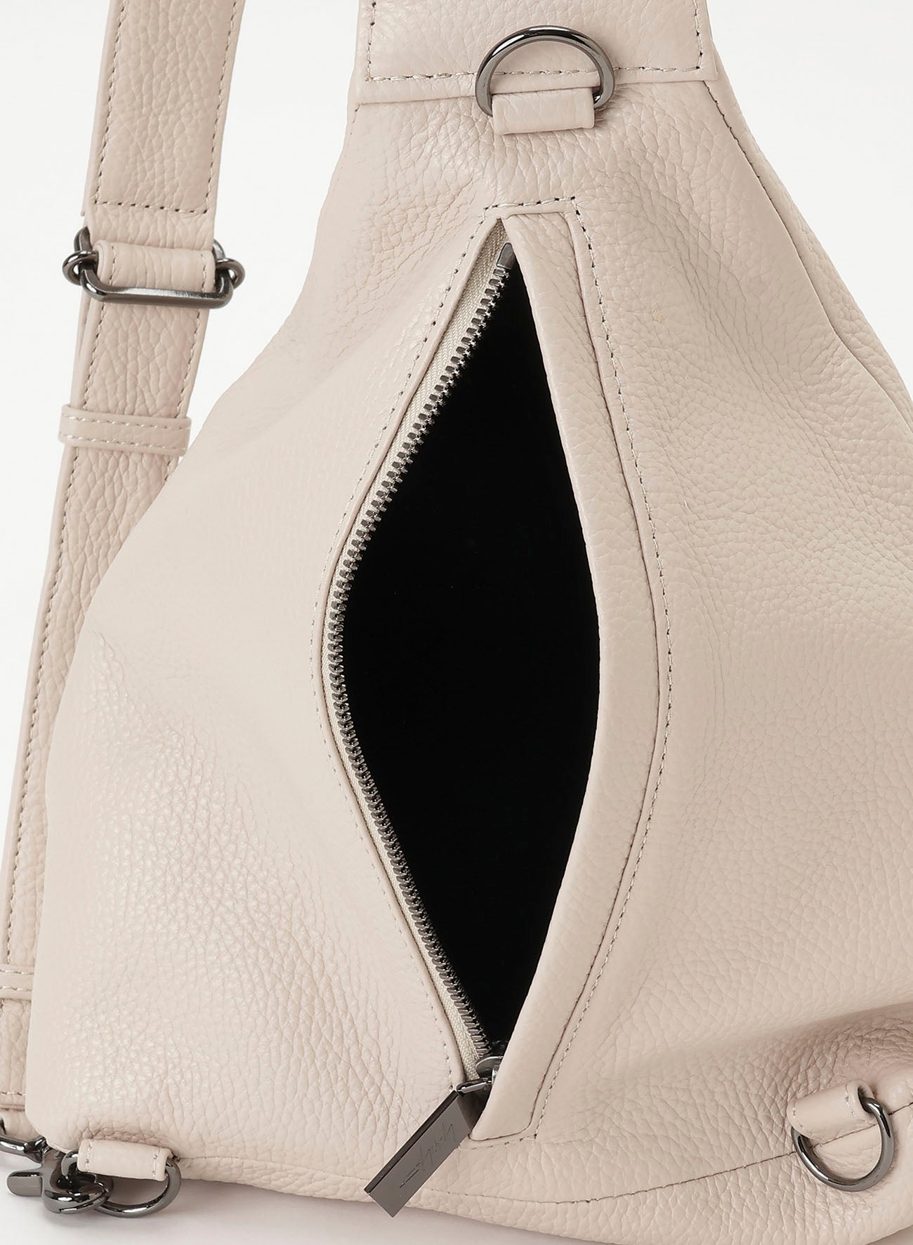 Dies ist eine kompakte Körpertasche mit auffälligen oberen Falten und einer runden Form. Der "Nasukan" kann für beide Schultern angepasst werden, was die Vielseitigkeit erhöht. Der Reißverschluss befindet sich auf dem Rückenteil für verbesserte Sicherheit. Hergestellt aus lebhaft gefärbtem italienischem Schrumpfleder.
