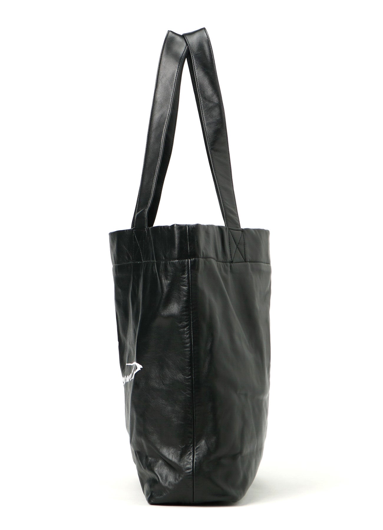 Diese Tote-Tasche zeigt einen Print der Unterschrift von Yohji Yamamoto. Aus dünnem, weichem Rindsleder gefertigt, verkörpert sie Eleganz und Qualität. Sie eignet sich für verschiedene Anlässe und ist eine perfekte Ergänzung für die Sammlung jedes Modebegeisterten.
