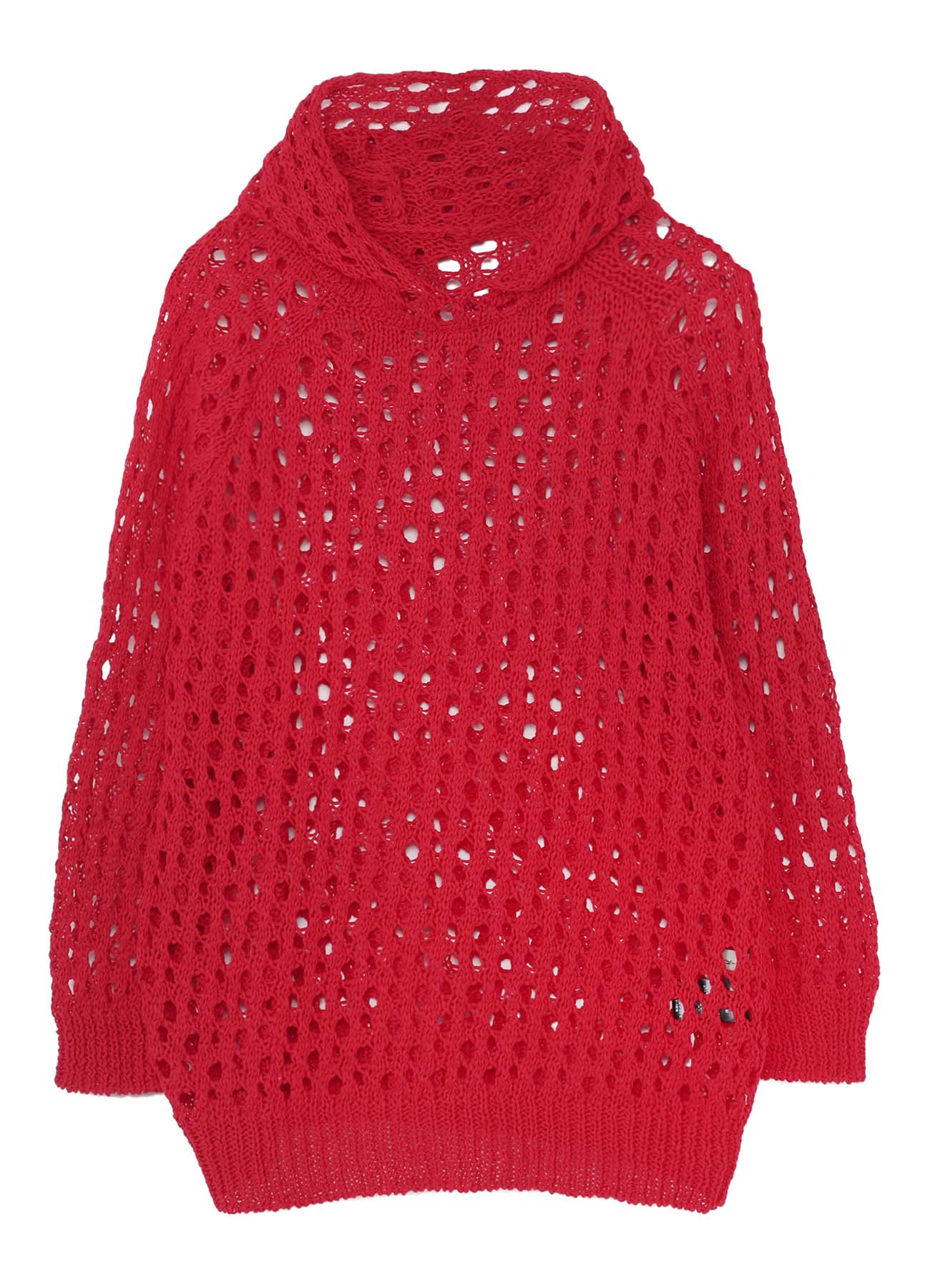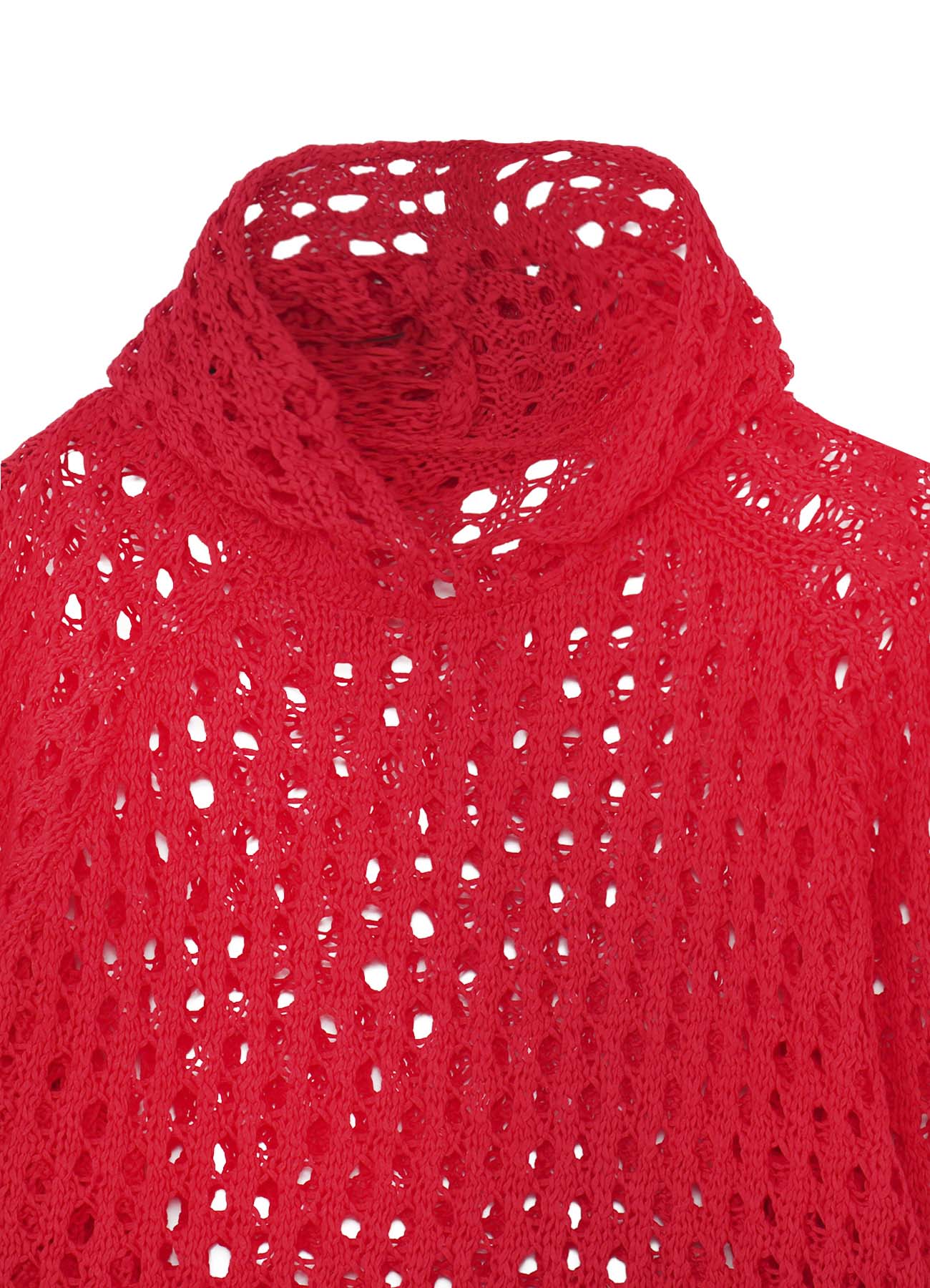 This chunky hoodie features intricate openwork knitting. By changing the inner wear, the look transforms, offering versatile styling options. With its drapery and breezy feel, it's a perfect match for the upcoming season. Images may showcase sample items, so please use the size info for accurate details.