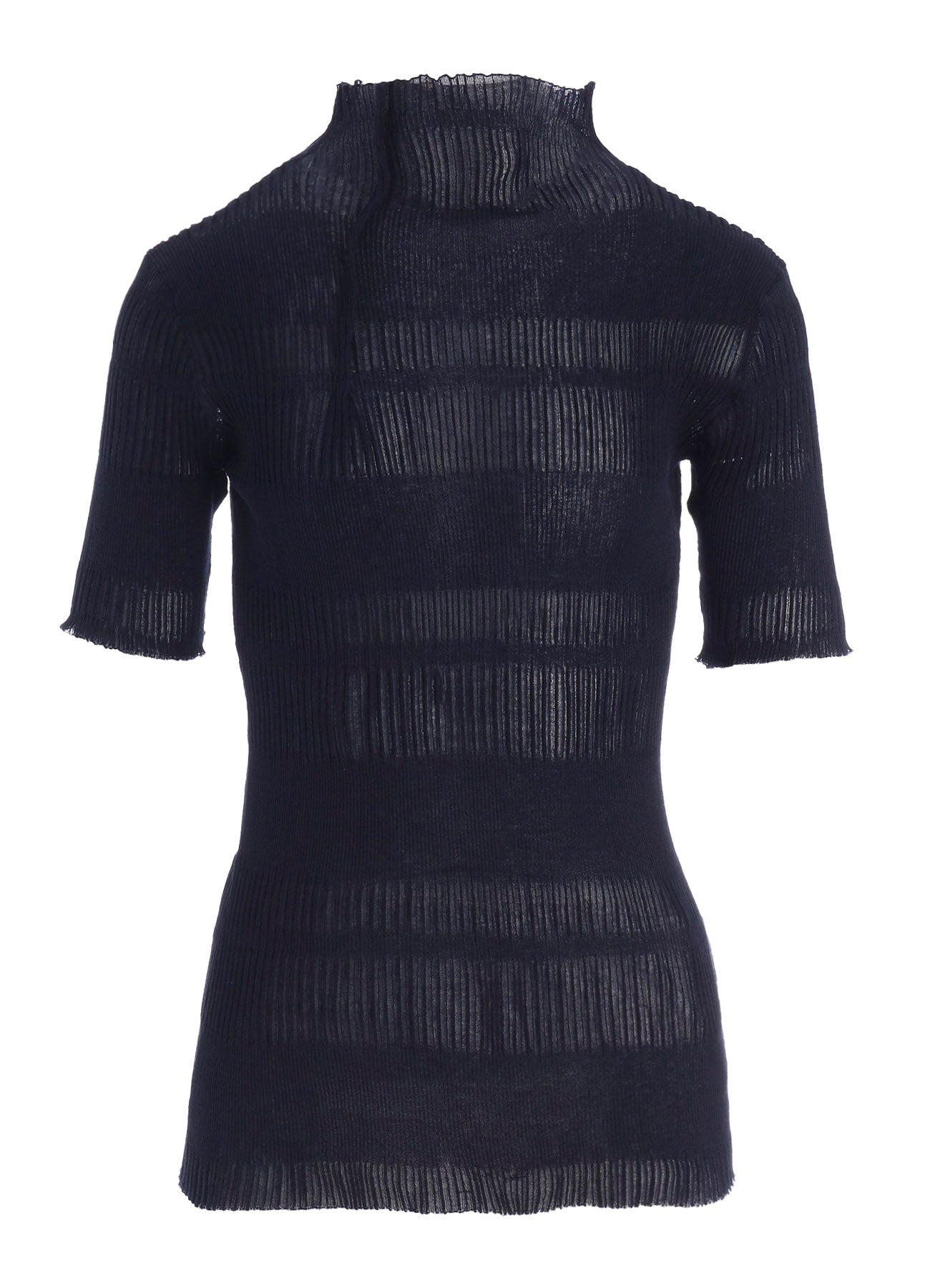 This pleat-design knit offers a beautiful, moderate fit, blending organic cotton with recycled polyester for a firm-textured yarn. Ideal for inner wear, it has a smooth feel. Note: Model images use sample items; product sizes may differ. Check SIZE INFO for details.