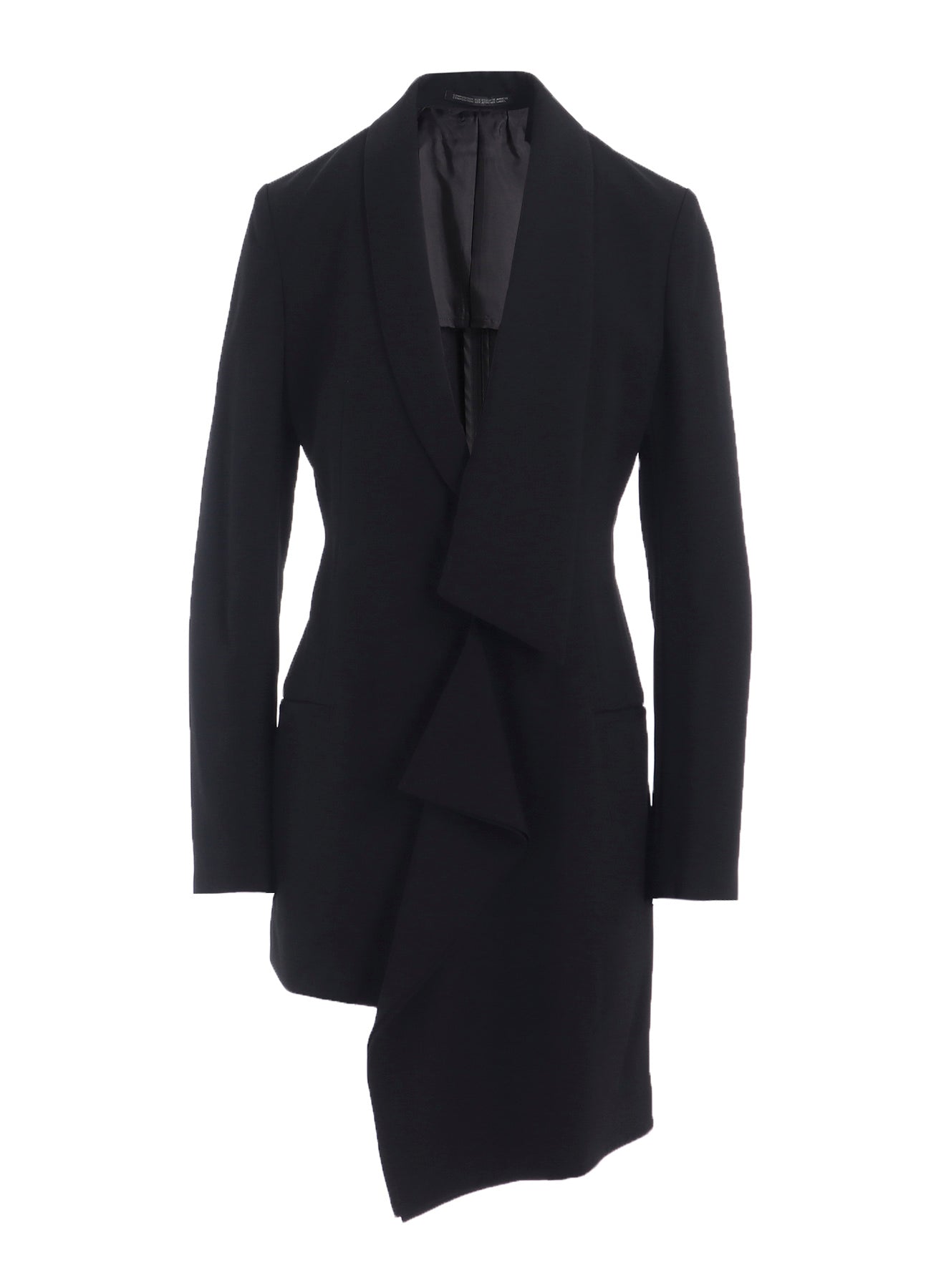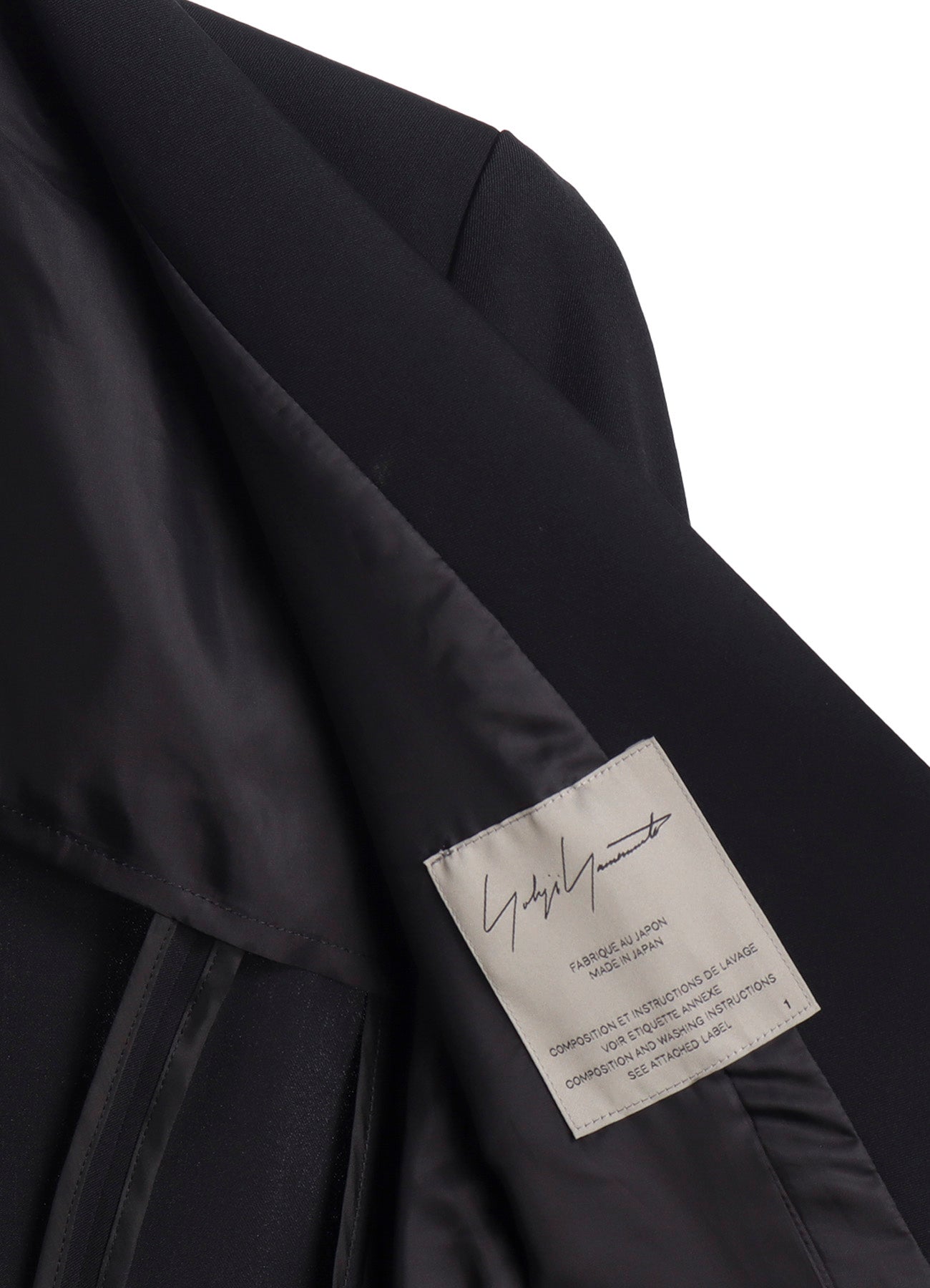 Eine einzigartige Jacke aus Yohji Yamamoto's charakteristischem Stoff, zerknittertem Gabardine, mit einem drapierten Vorderteil. Sie bietet Eleganz und Vielseitigkeit für diverse Anlässe. - Verwendet zerknittertes Gabardine für ein edles Aussehen - Elegantes Vorderteil mit Drapierung - Vielseitiges Design für verschiedene Gelegenheiten