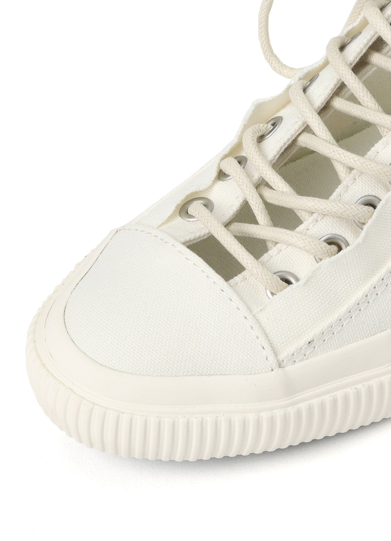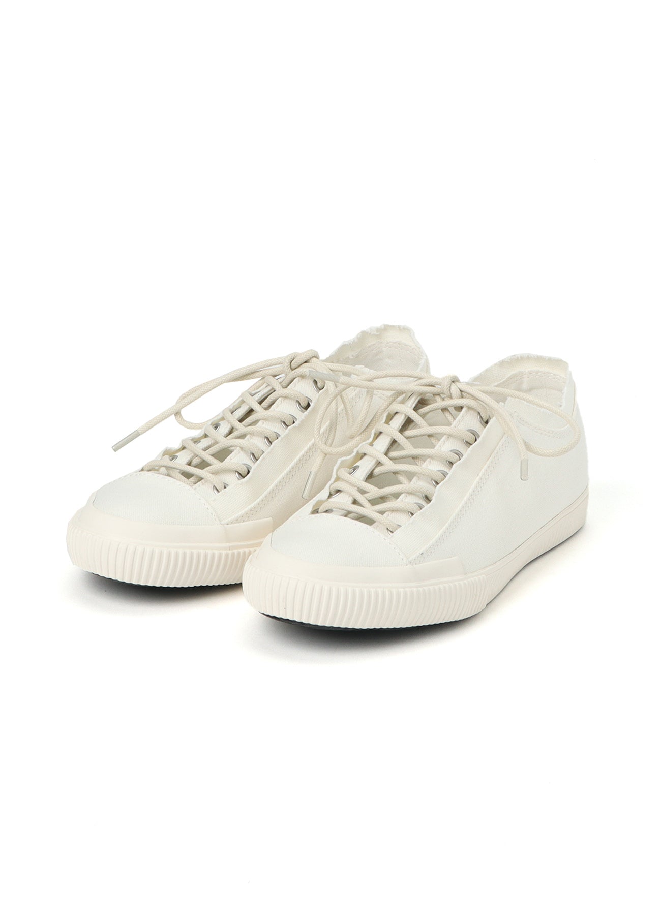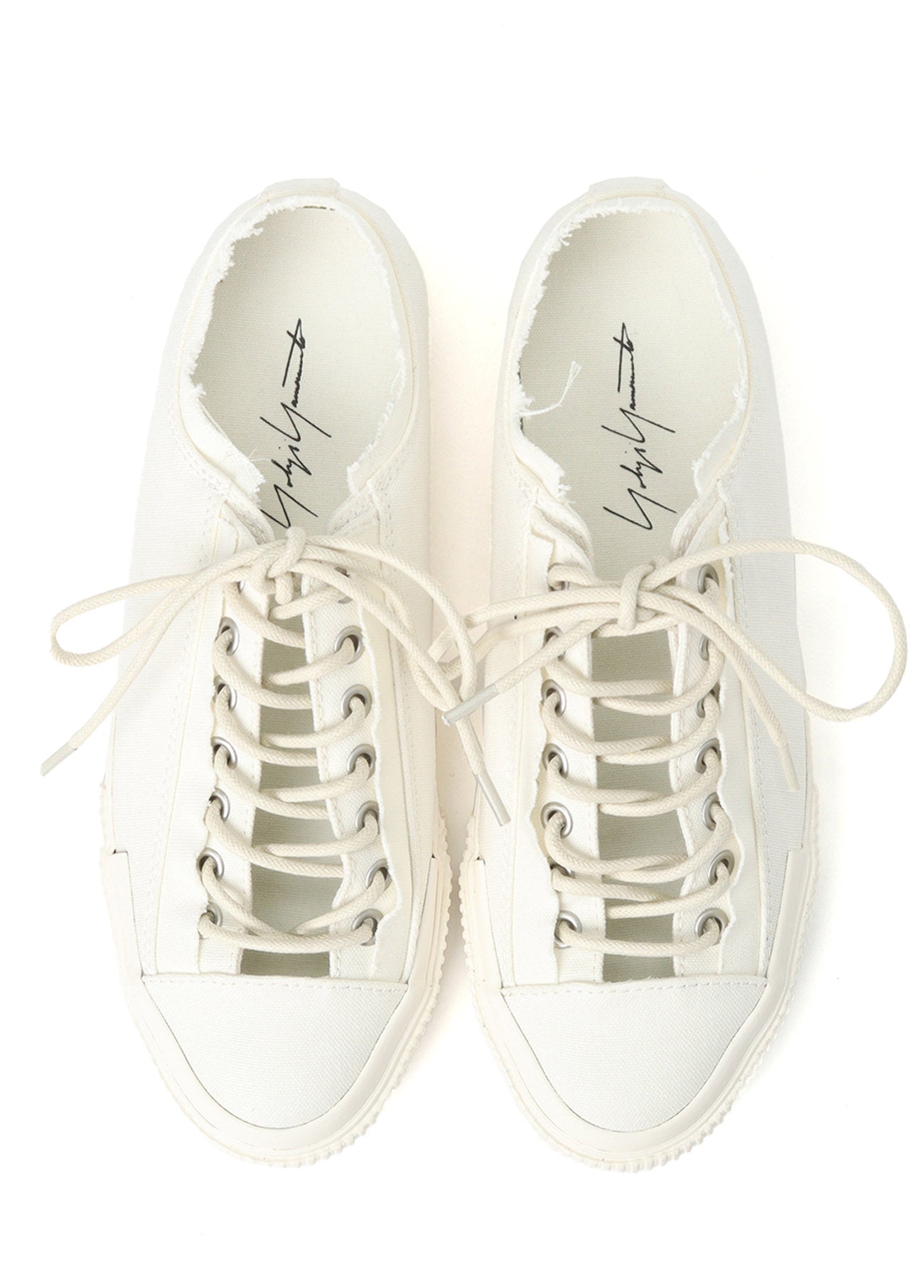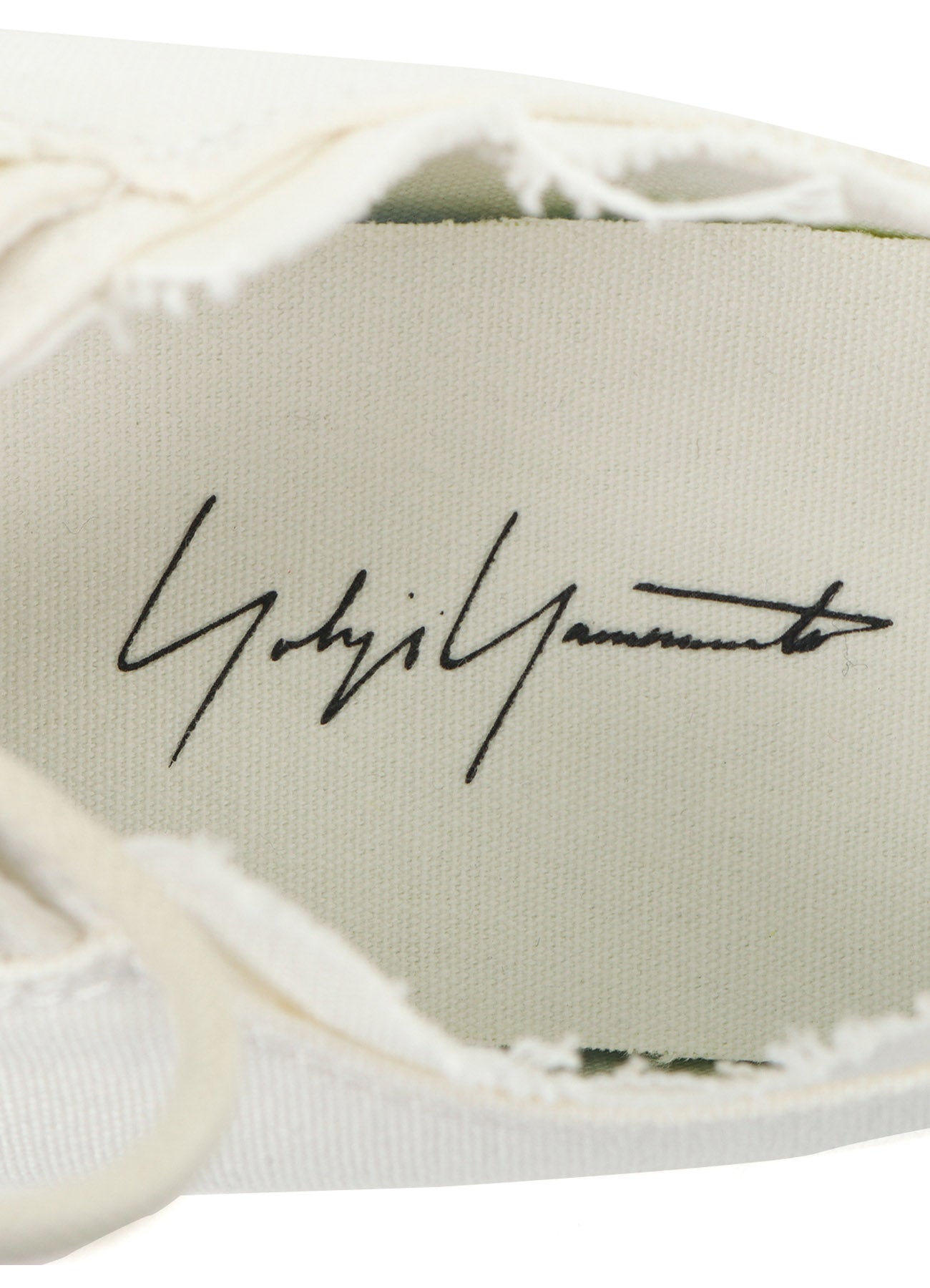 Dieses Produkt ist ein Paar niedrig geschnittener Sneakers aus Baumwoll-Canvas. Sie sind so gestaltet, dass sie einen leichten Look erzeugen, und verfügen über unvollendete Teile und keine Zungen, wodurch die nackten Füße des Trägers sichtbar sind. Diese Sneakers verleihen Ihrem Outfit eine einzigartige, luftige Ausstrahlung.