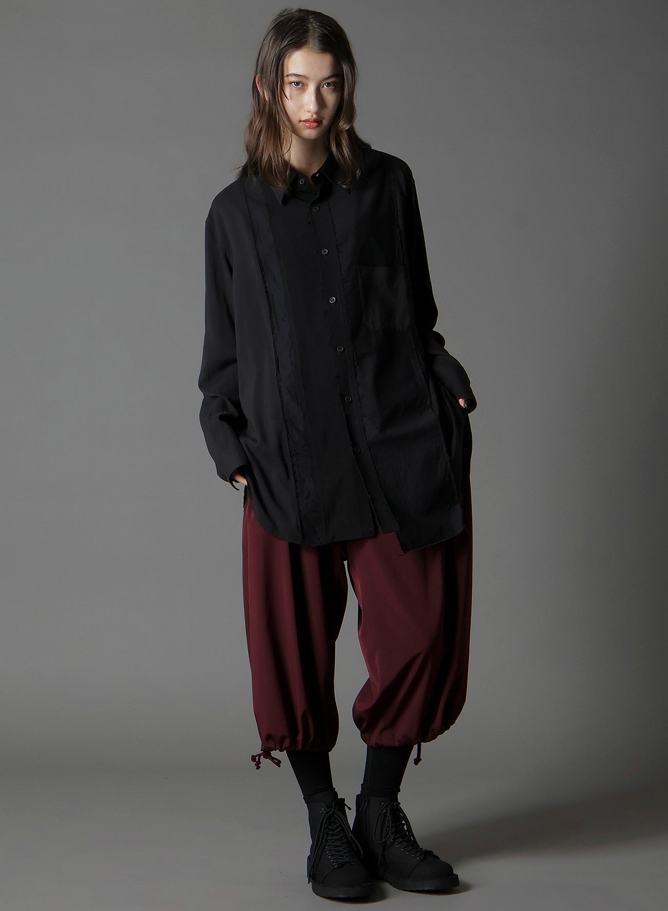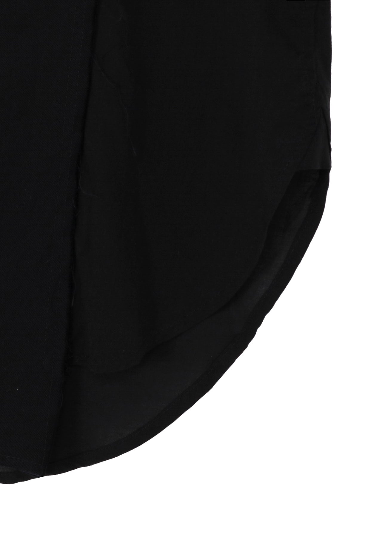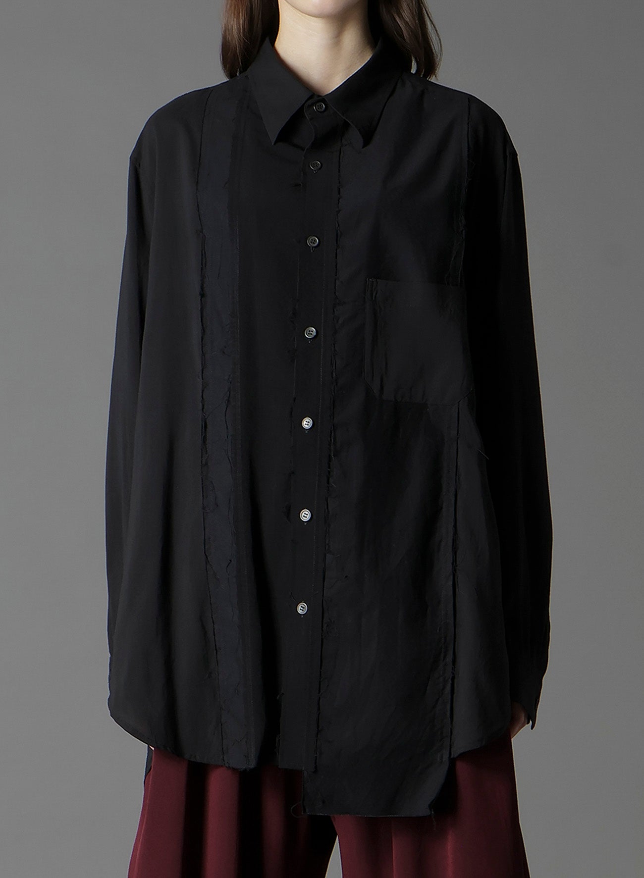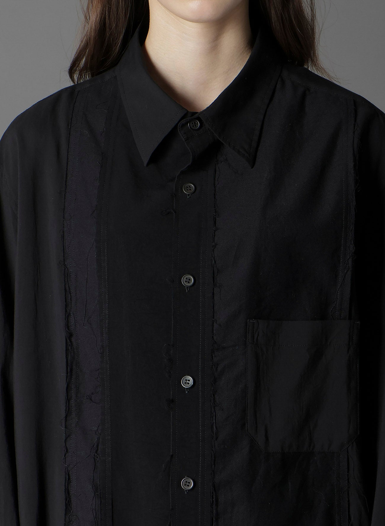 SWITCHING MATERIAL FRONT PANAL LONG BLACK SHIRT