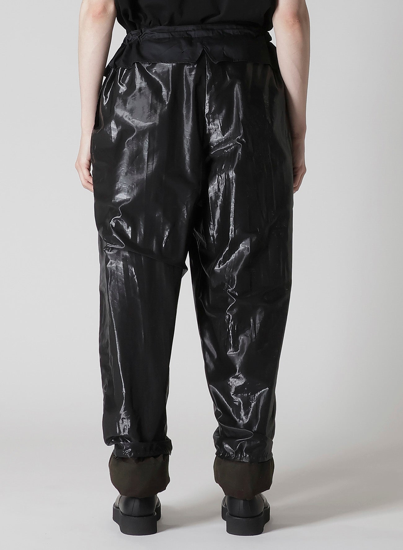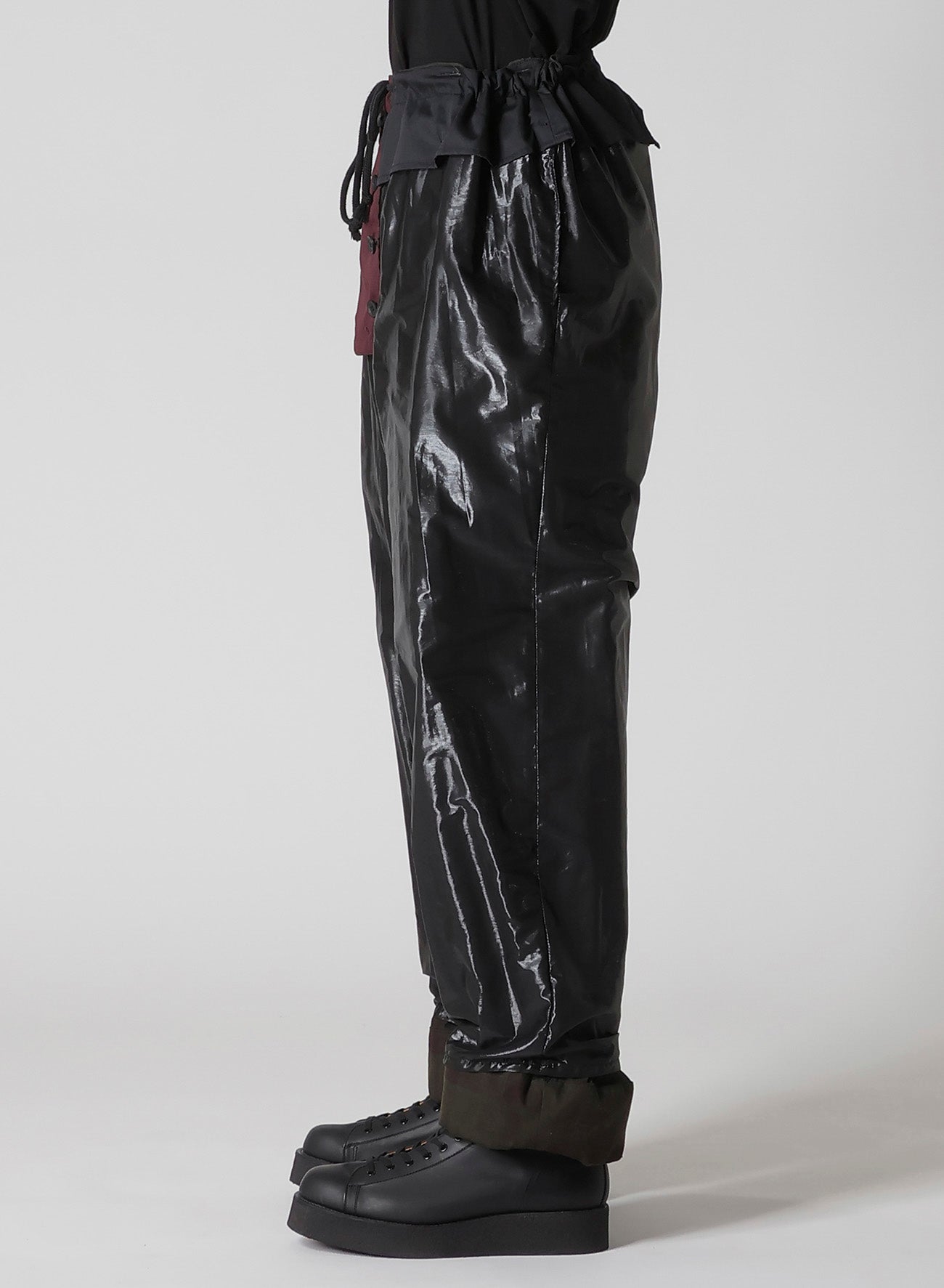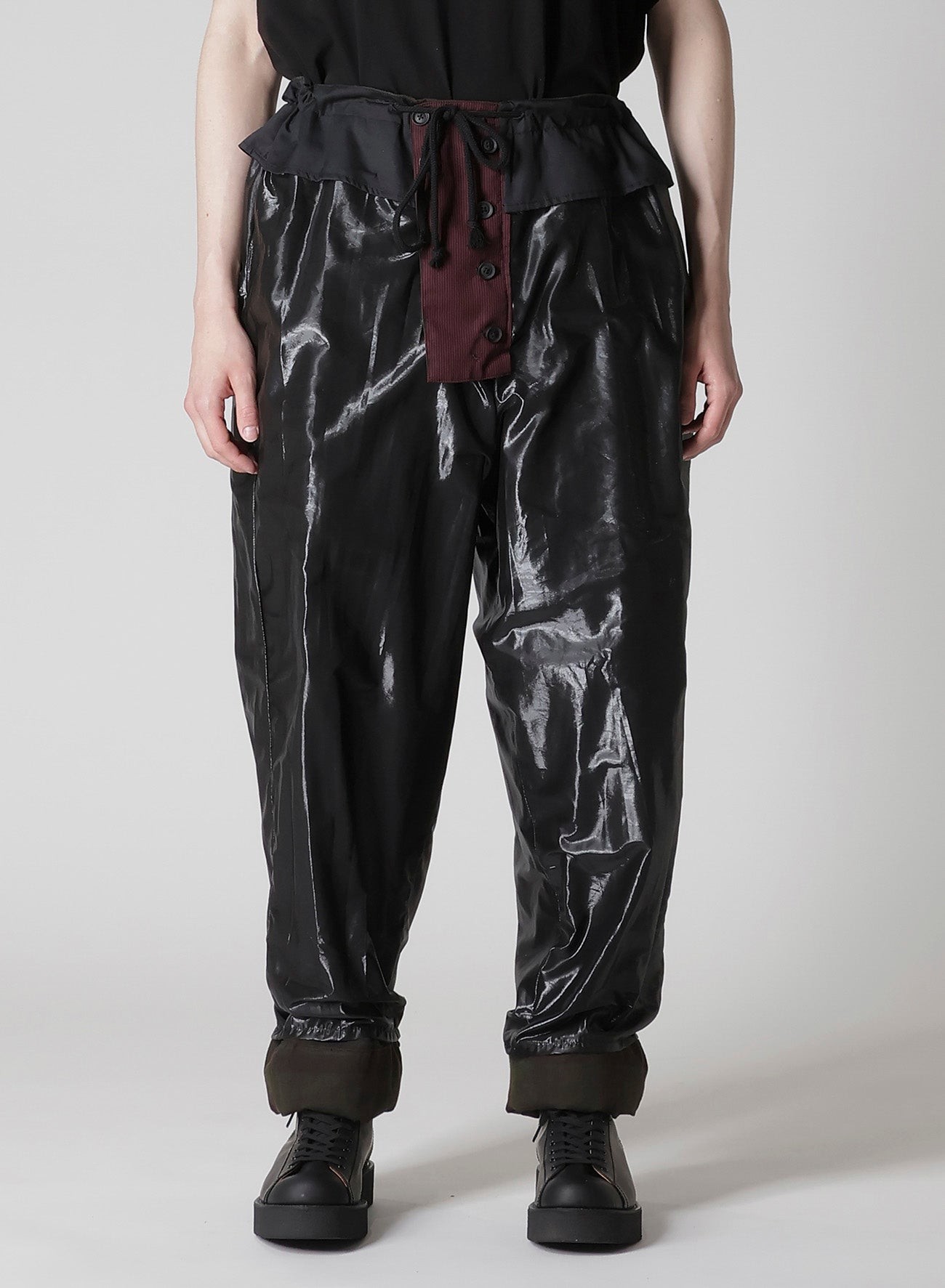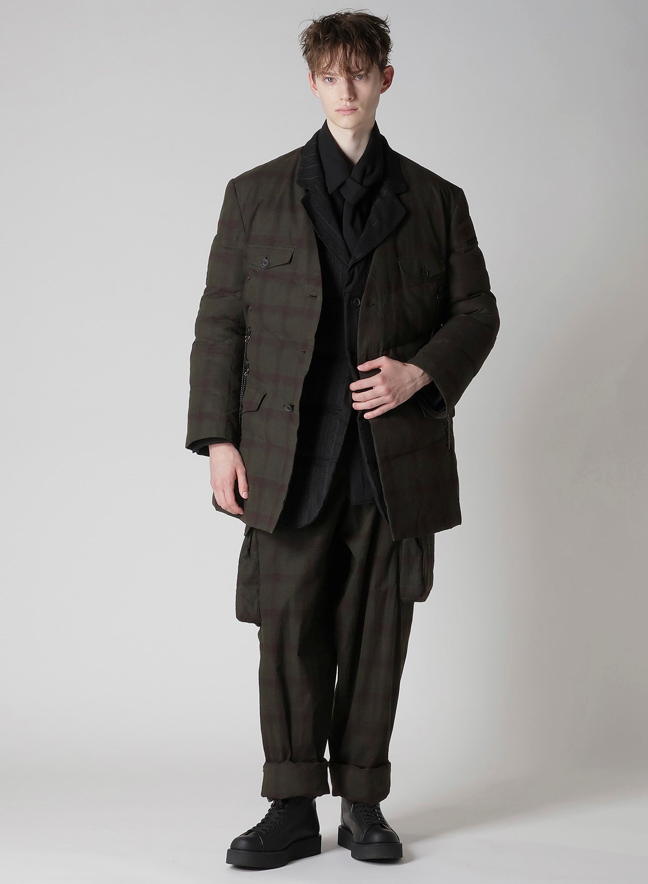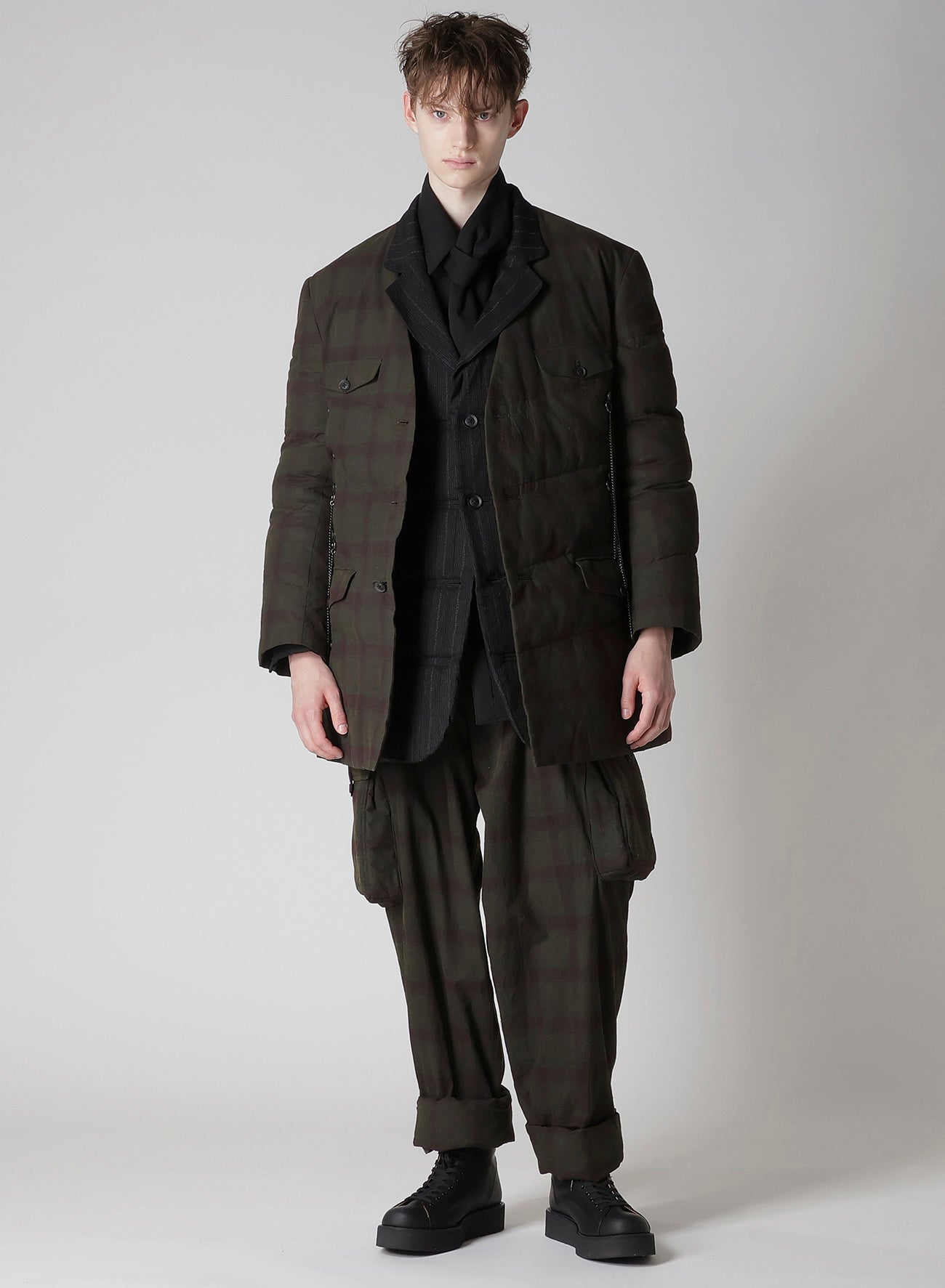 Gepolsterte Hose aus garngefärbtem Checkstoff mit Ink-Dye-Behandlung. Kett- und Schussfäden bestehen aus traditionellen garngefärbten Baumwollfäden aus Madras. Das Madras-Karomuster mit indischen Farben wird beidseitig im japanischen Sanyo- Gebiet mit Tinte beschichtet, was eine weiche Textur mit einzigartiger Ästhetik verbindet.