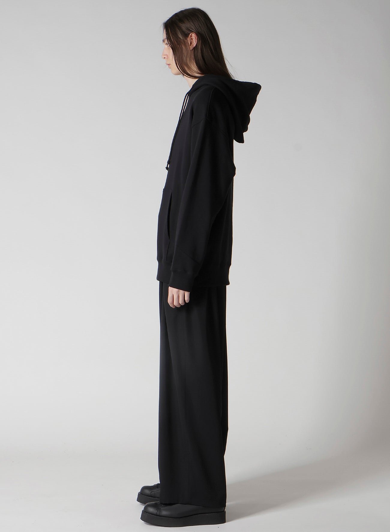 This fleece fabric hoodie features signature embroidery on the hood, making it a striking piece. The simple design ensures it easily integrates into any outfit. Available in XS, M, and XL sizes, it suits all genders.