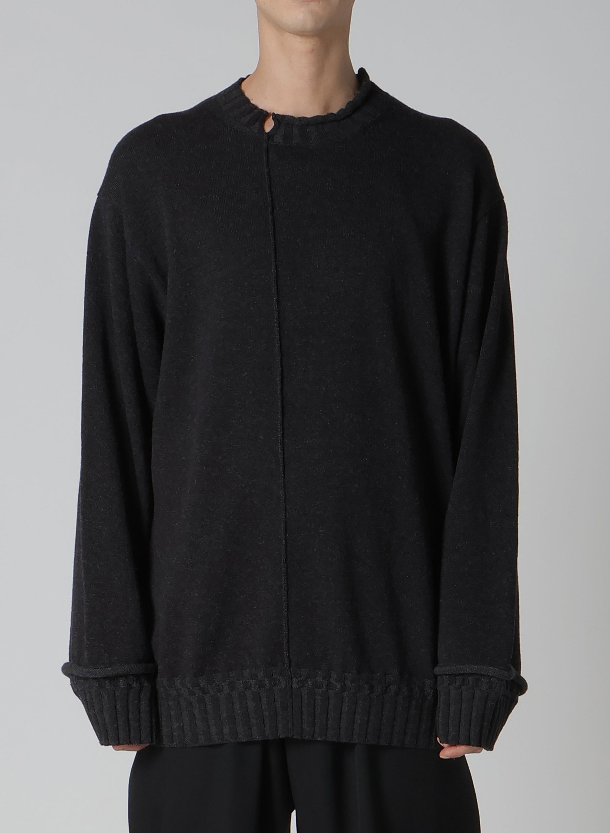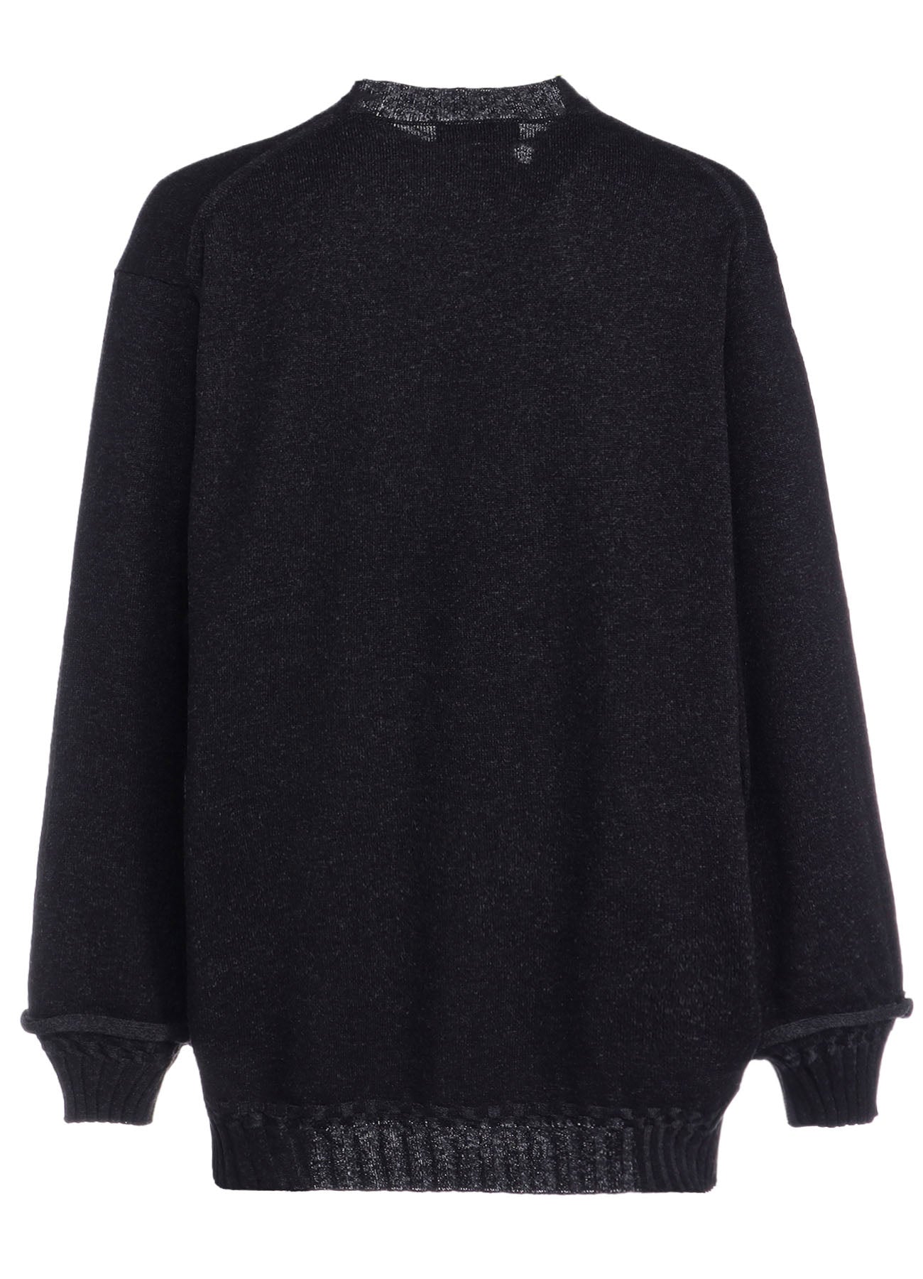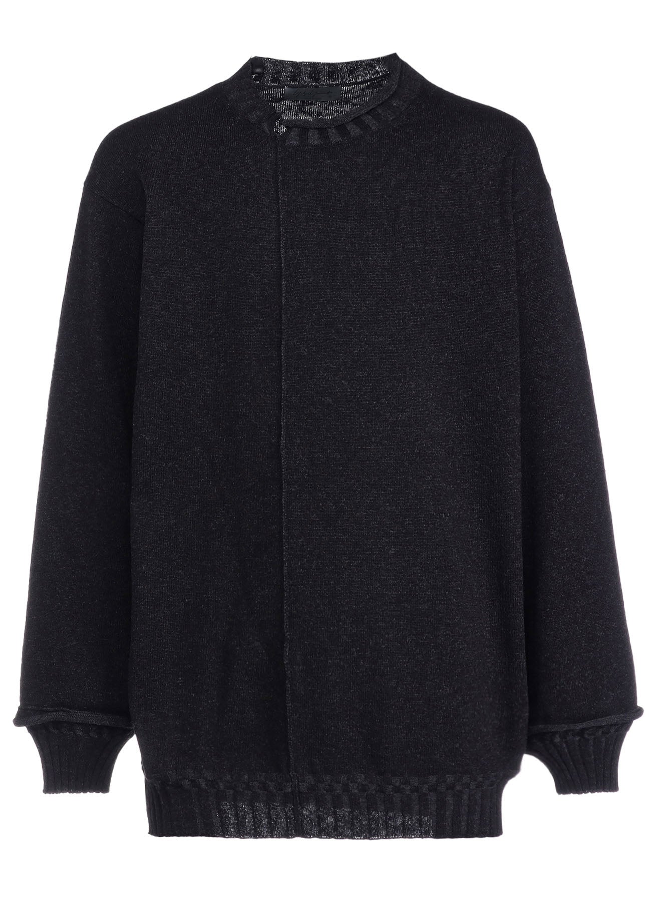 Dieses Rundhalsstrickstück verwendet australische Gewinner als Hauptmaterial. Es zeichnet sich durch ein einzigartiges Kombinationsdesign aus, das zwei Fäden Wolle nutzt, um ein kompliziertes strukturiertes Muster zu schaffen. Die Außenseite zeigt auffällige Wolle, die dem Strickstück ein markantes, stark strukturiertes Aussehen verleiht.