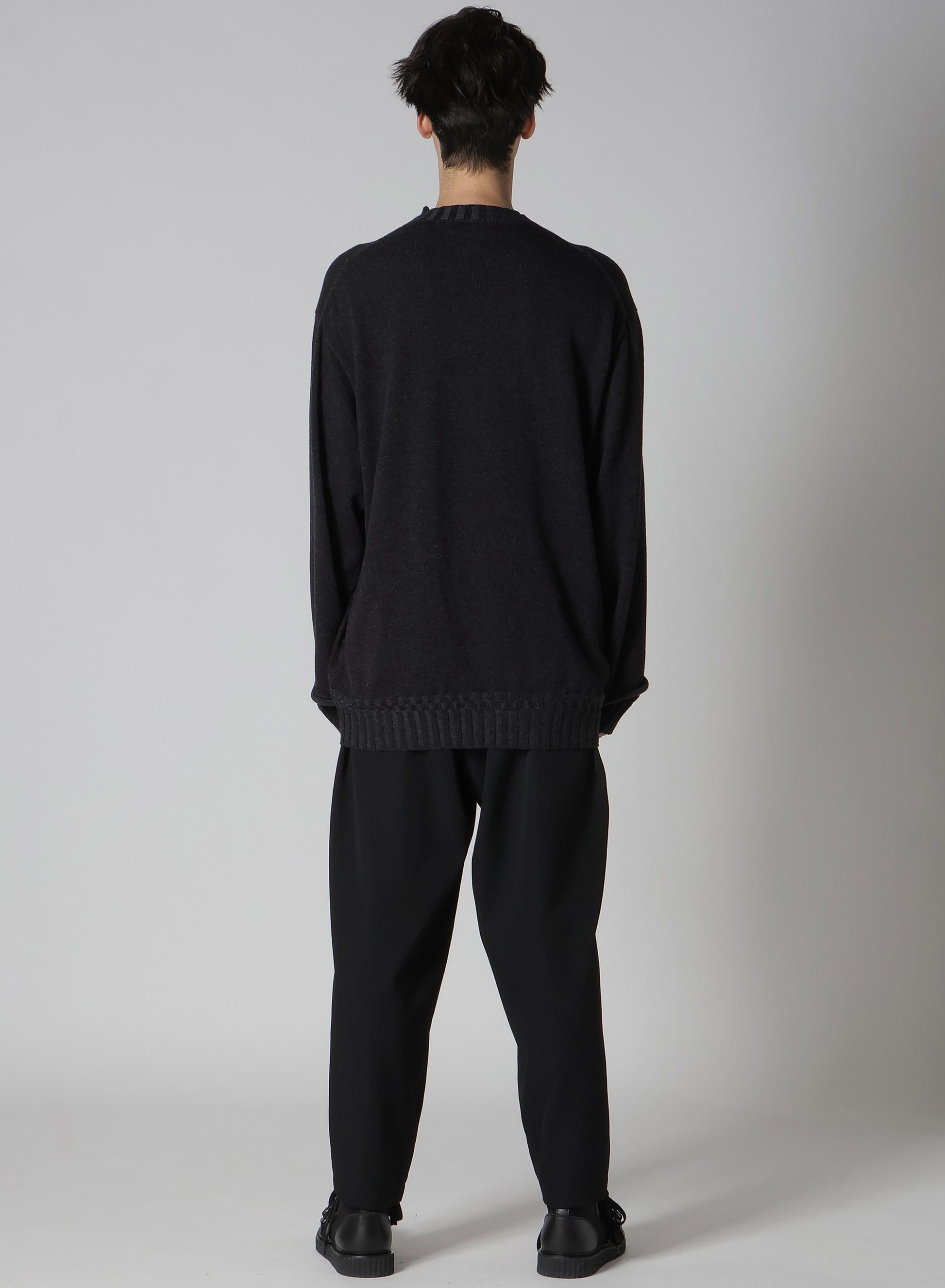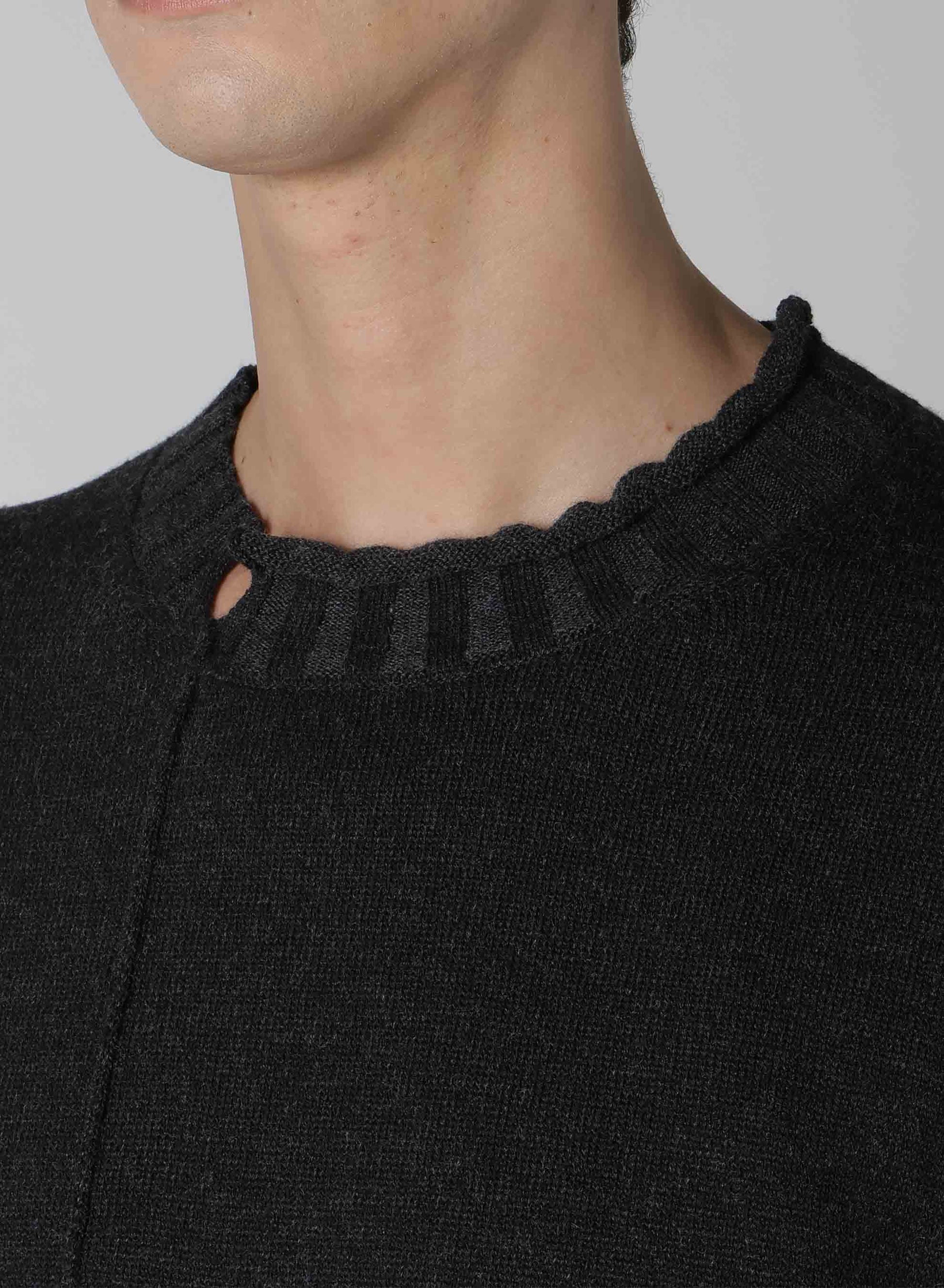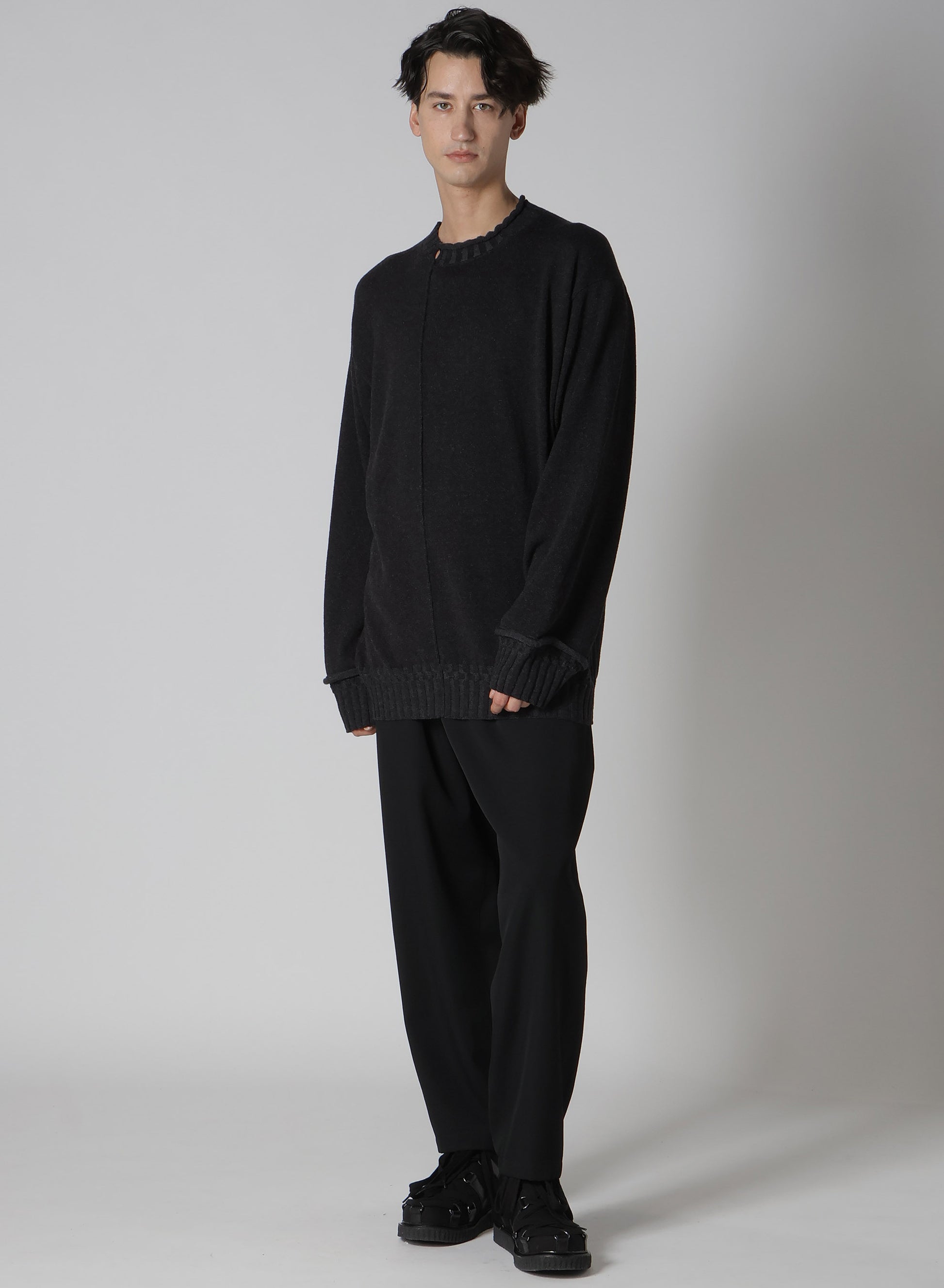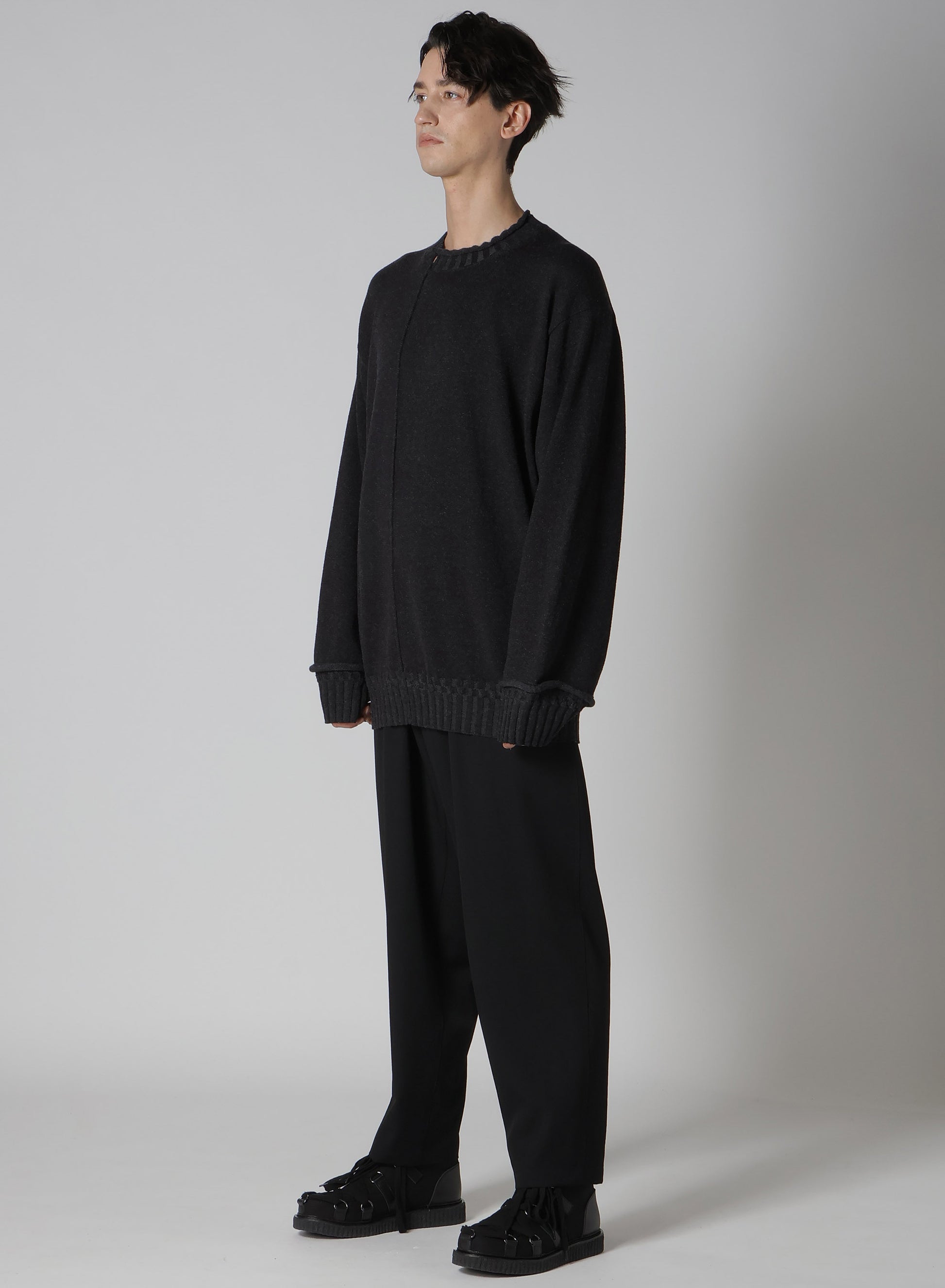 Dieses Rundhalsstrickstück verwendet australische Gewinner als Hauptmaterial. Es zeichnet sich durch ein einzigartiges Kombinationsdesign aus, das zwei Fäden Wolle nutzt, um ein kompliziertes strukturiertes Muster zu schaffen. Die Außenseite zeigt auffällige Wolle, die dem Strickstück ein markantes, stark strukturiertes Aussehen verleiht.