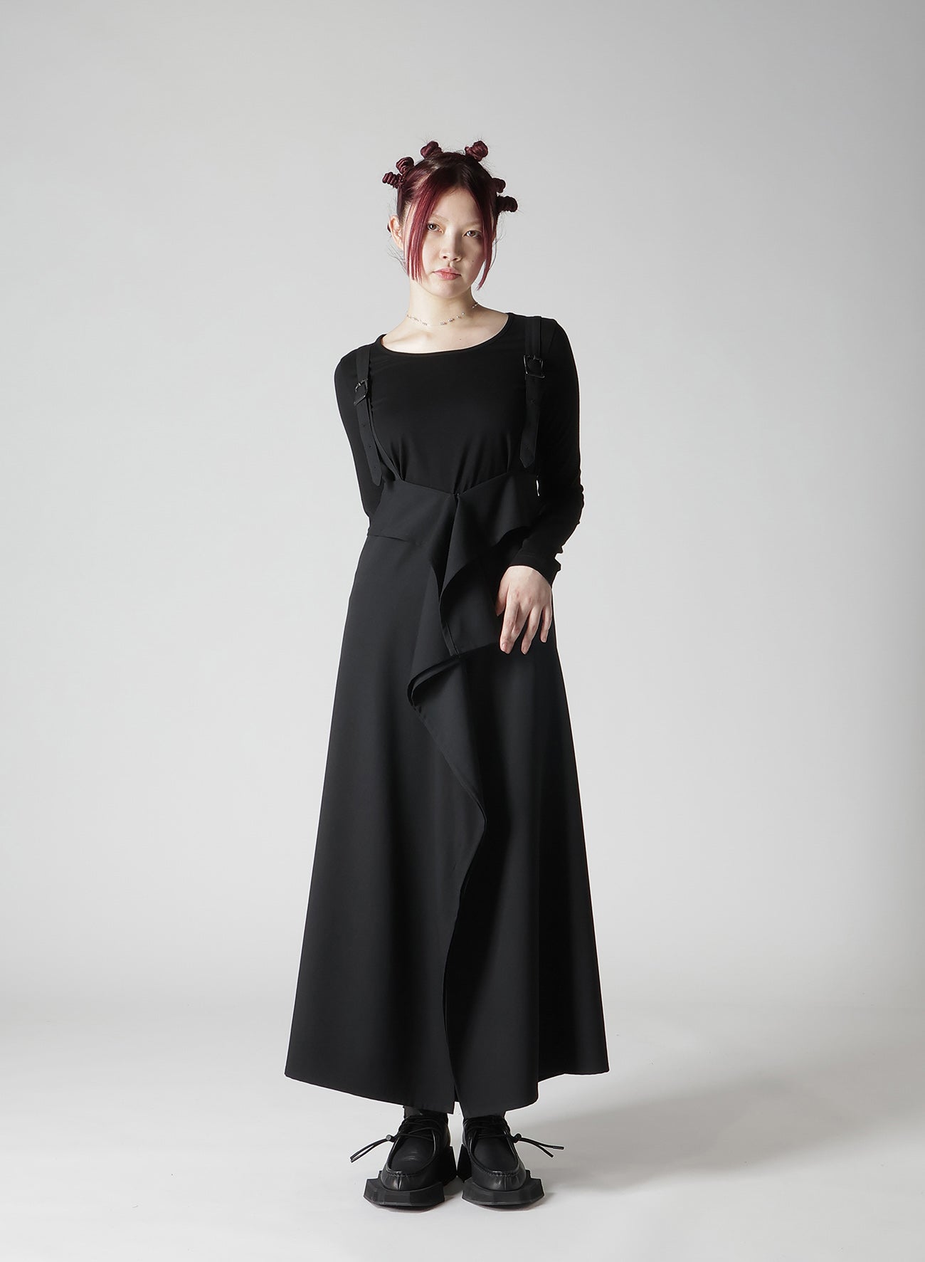 WOOL GABARDINE SQUARED SUSPENDER SKIRT