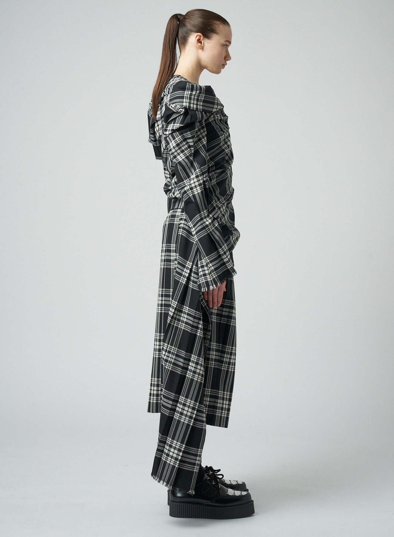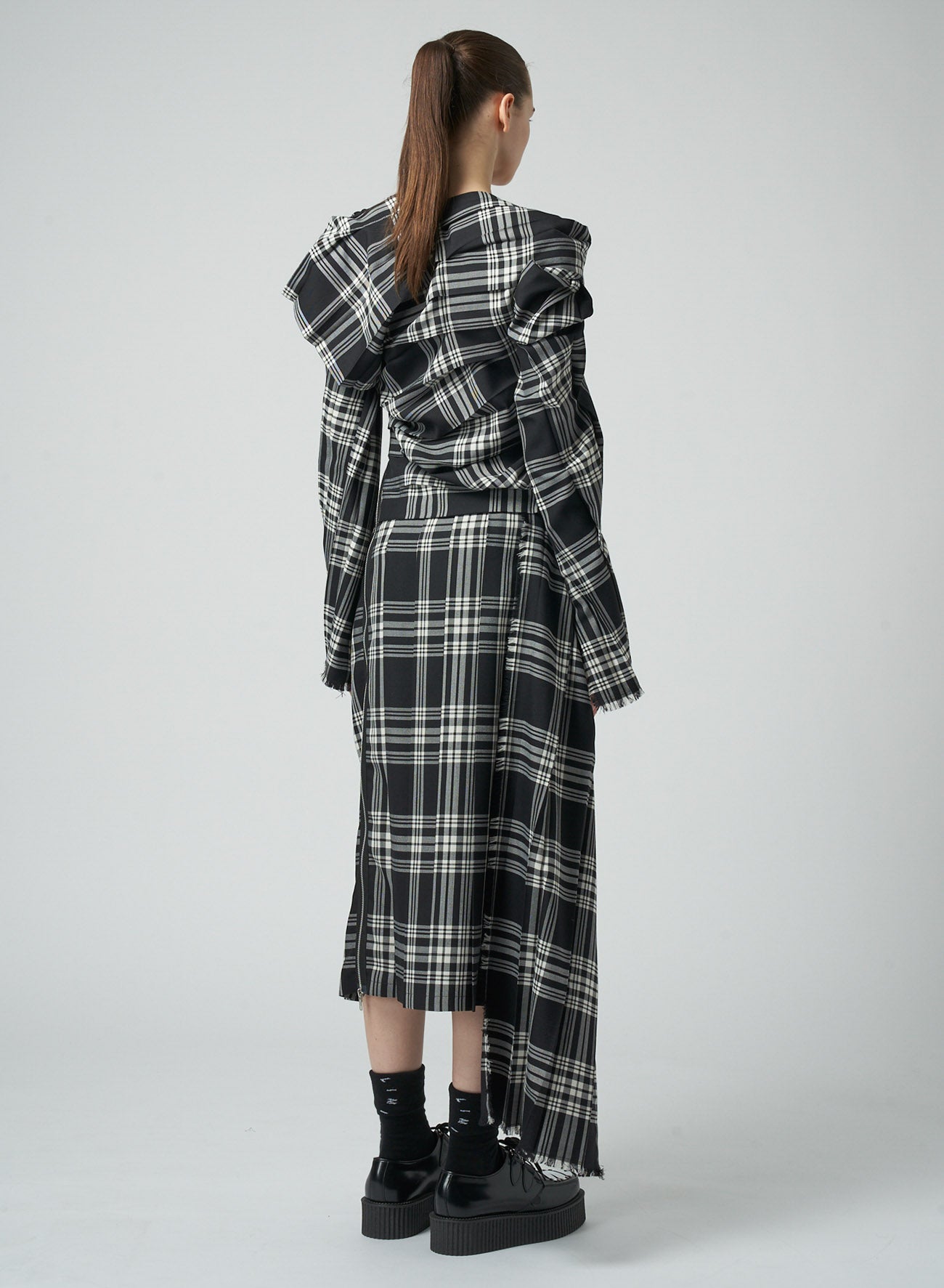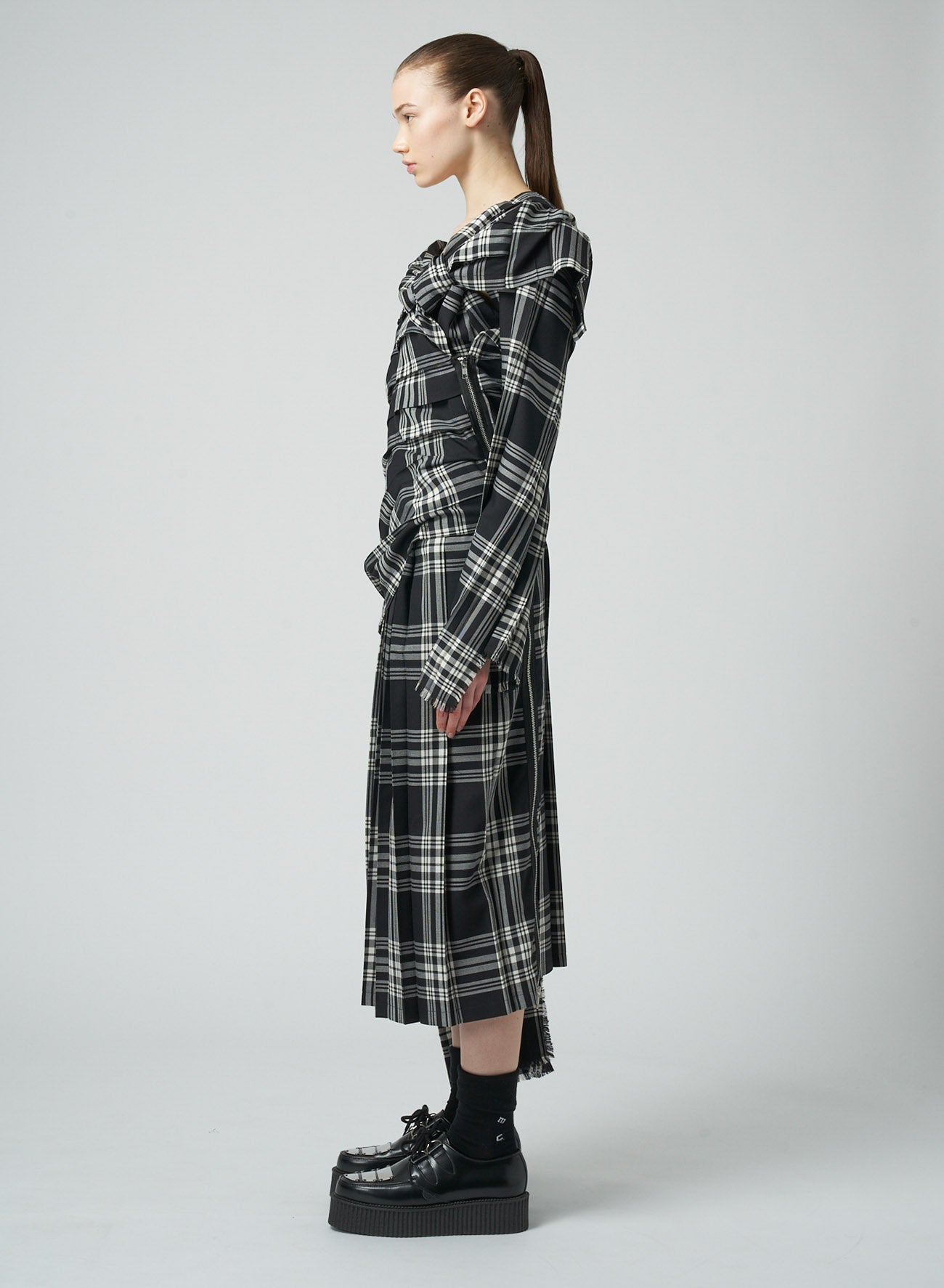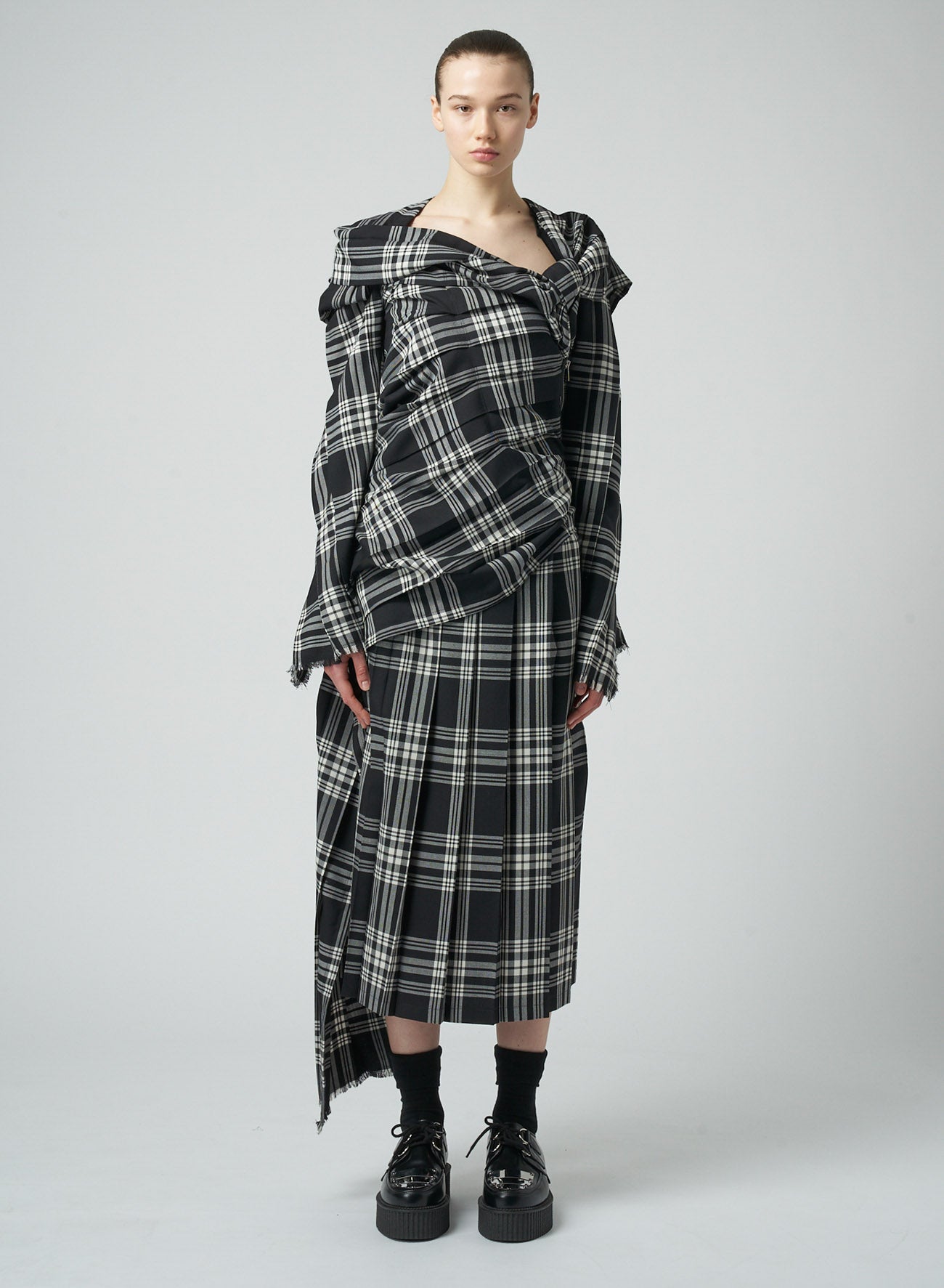 Dieser Premium-Karostoff vereint Wolle und einen hohen Polyesteranteil, was zu einem Material führt, das glänzend, leicht und flexibel ist. Verstärkt durch die thermoplastischen Eigenschaften von Polyester bleiben die Falten bei regelmäßigem Tragen intakt, können jedoch bei Hitzeeinwirkung verblassen. Die geschnittenen Kanten erzeugen ein natürliches Ausfransen, das jedem Kleidungsstück ein einzigartiges Aussehen verleiht.