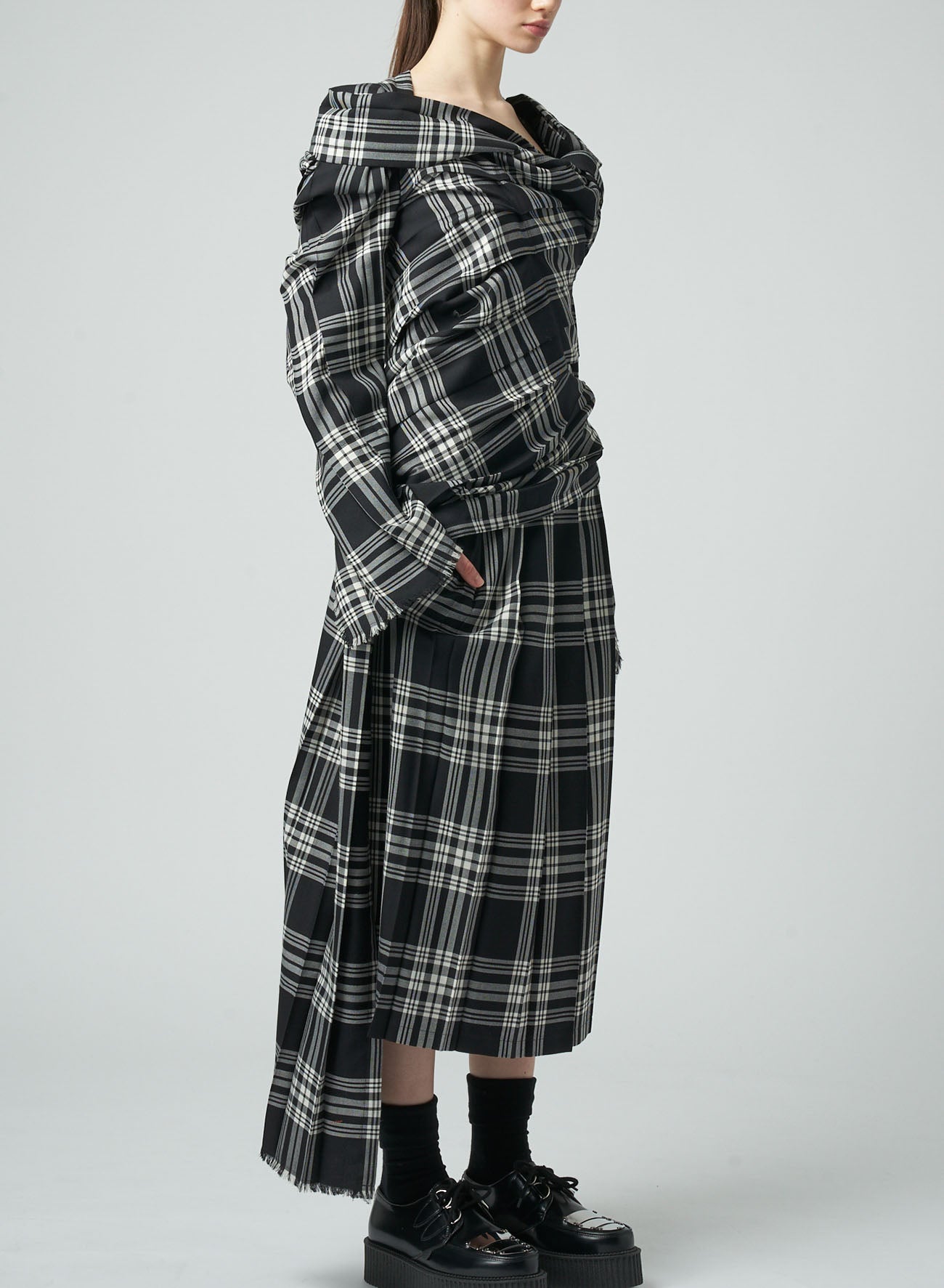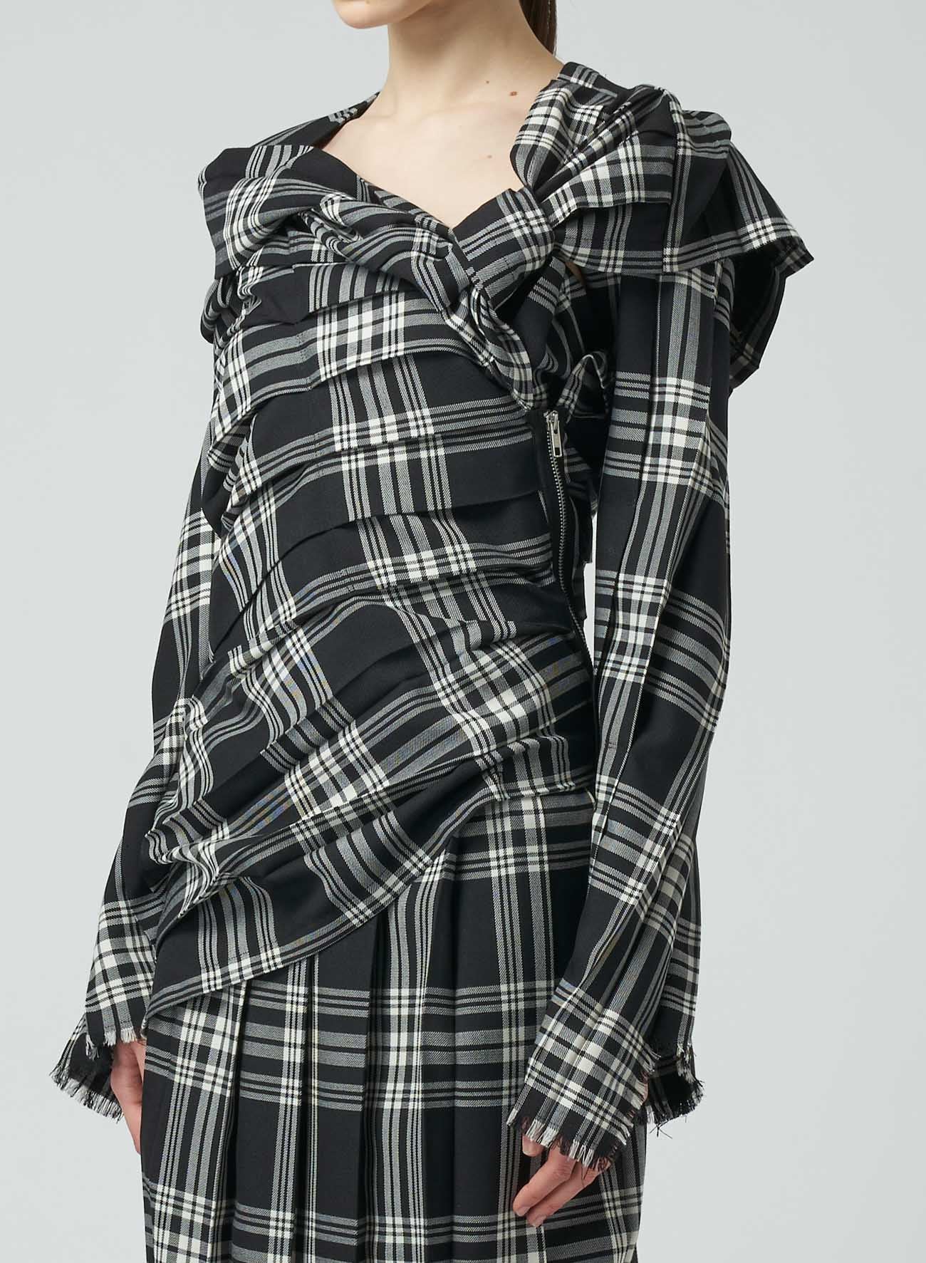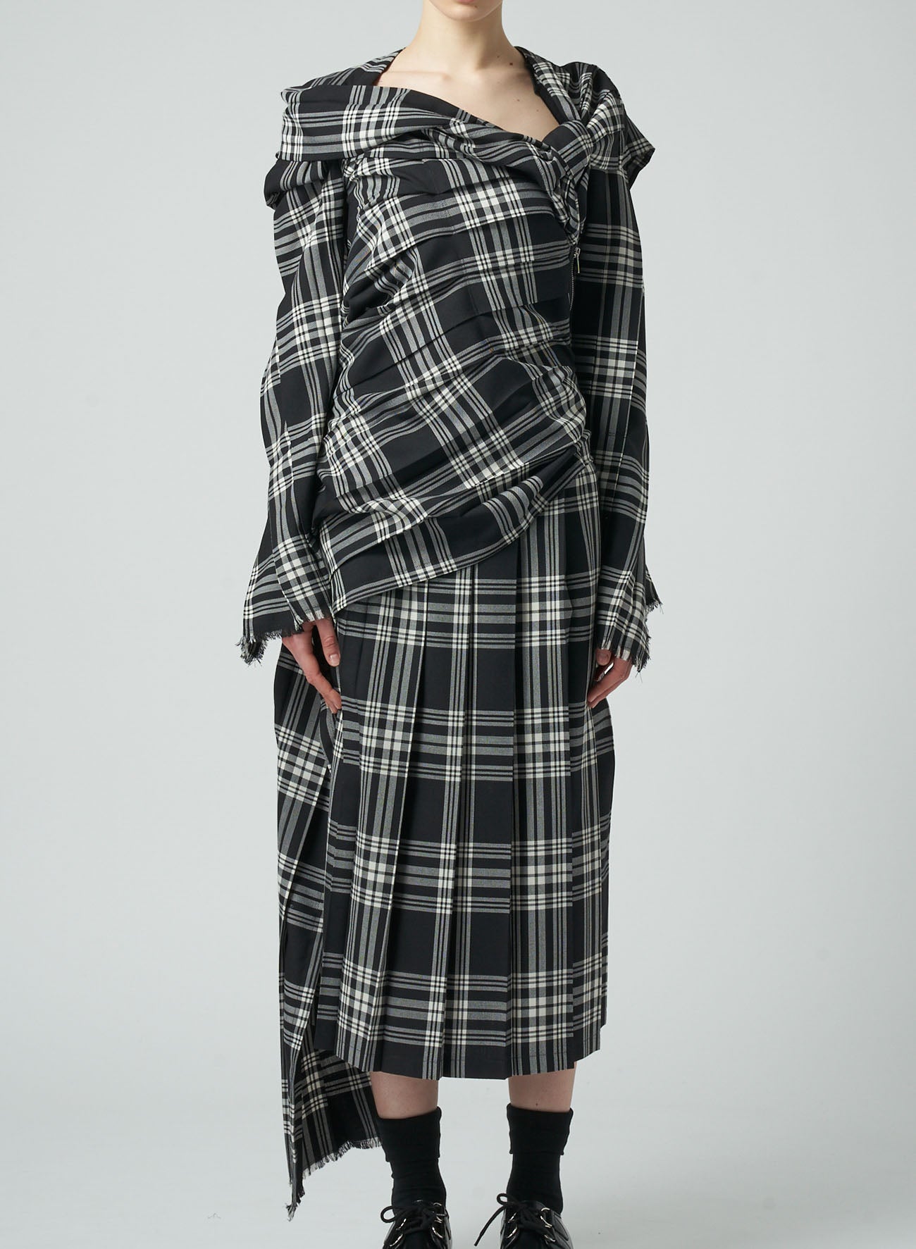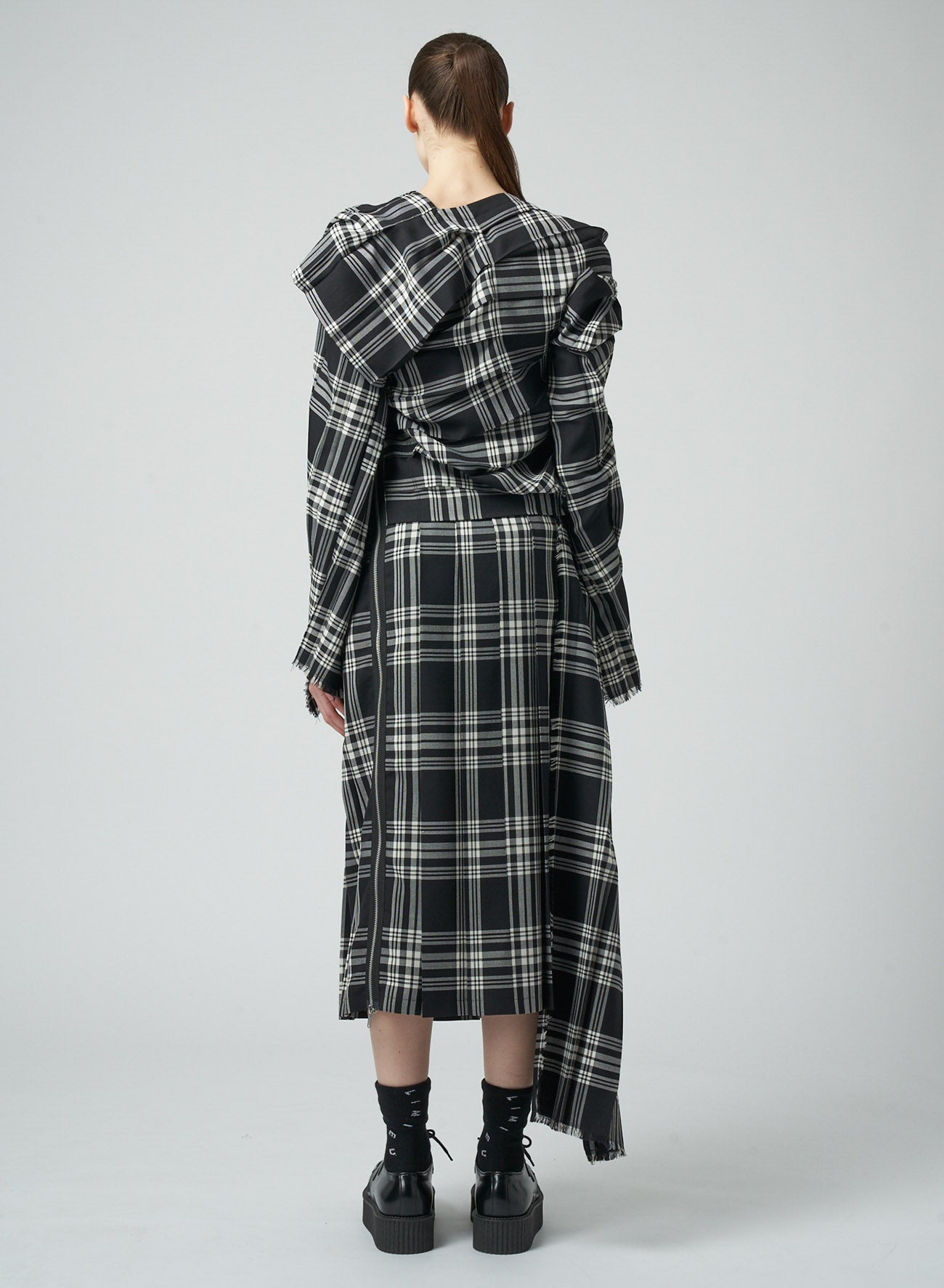 Dieser Premium-Karostoff vereint Wolle und einen hohen Polyesteranteil, was zu einem Material führt, das glänzend, leicht und flexibel ist. Verstärkt durch die thermoplastischen Eigenschaften von Polyester bleiben die Falten bei regelmäßigem Tragen intakt, können jedoch bei Hitzeeinwirkung verblassen. Die geschnittenen Kanten erzeugen ein natürliches Ausfransen, das jedem Kleidungsstück ein einzigartiges Aussehen verleiht.