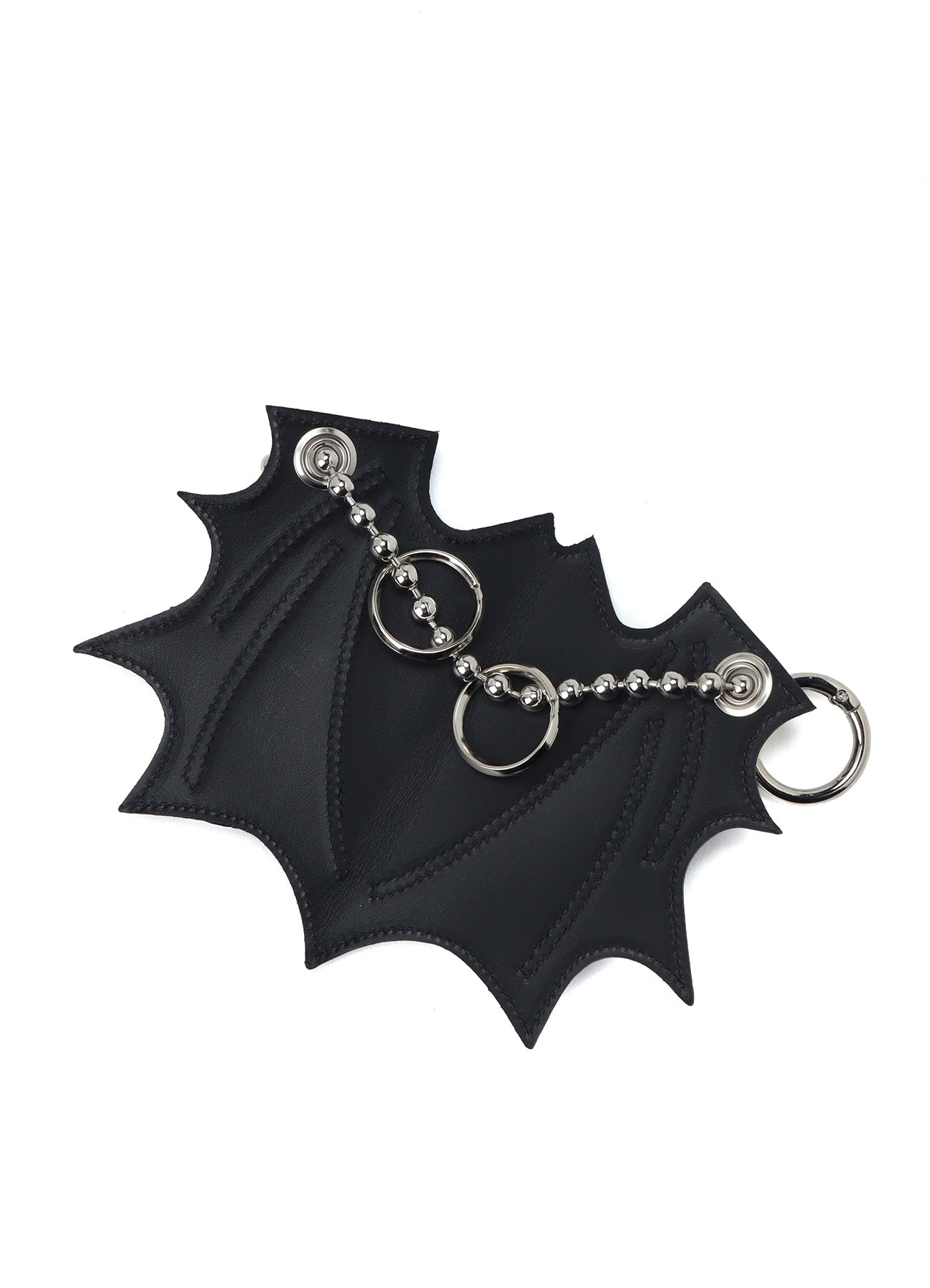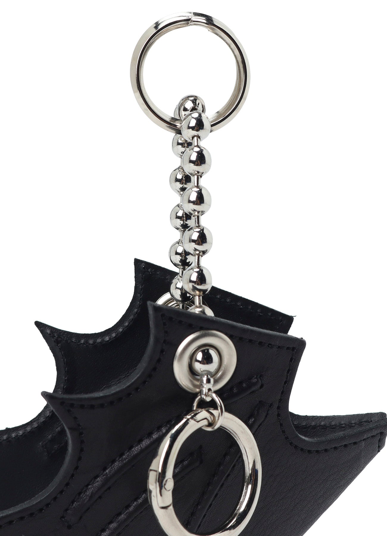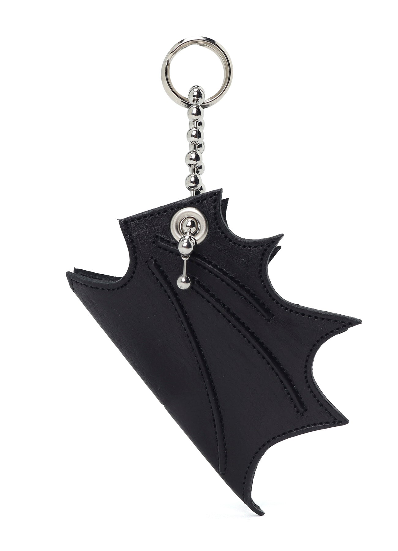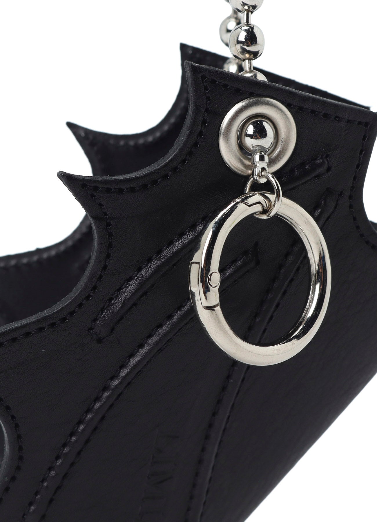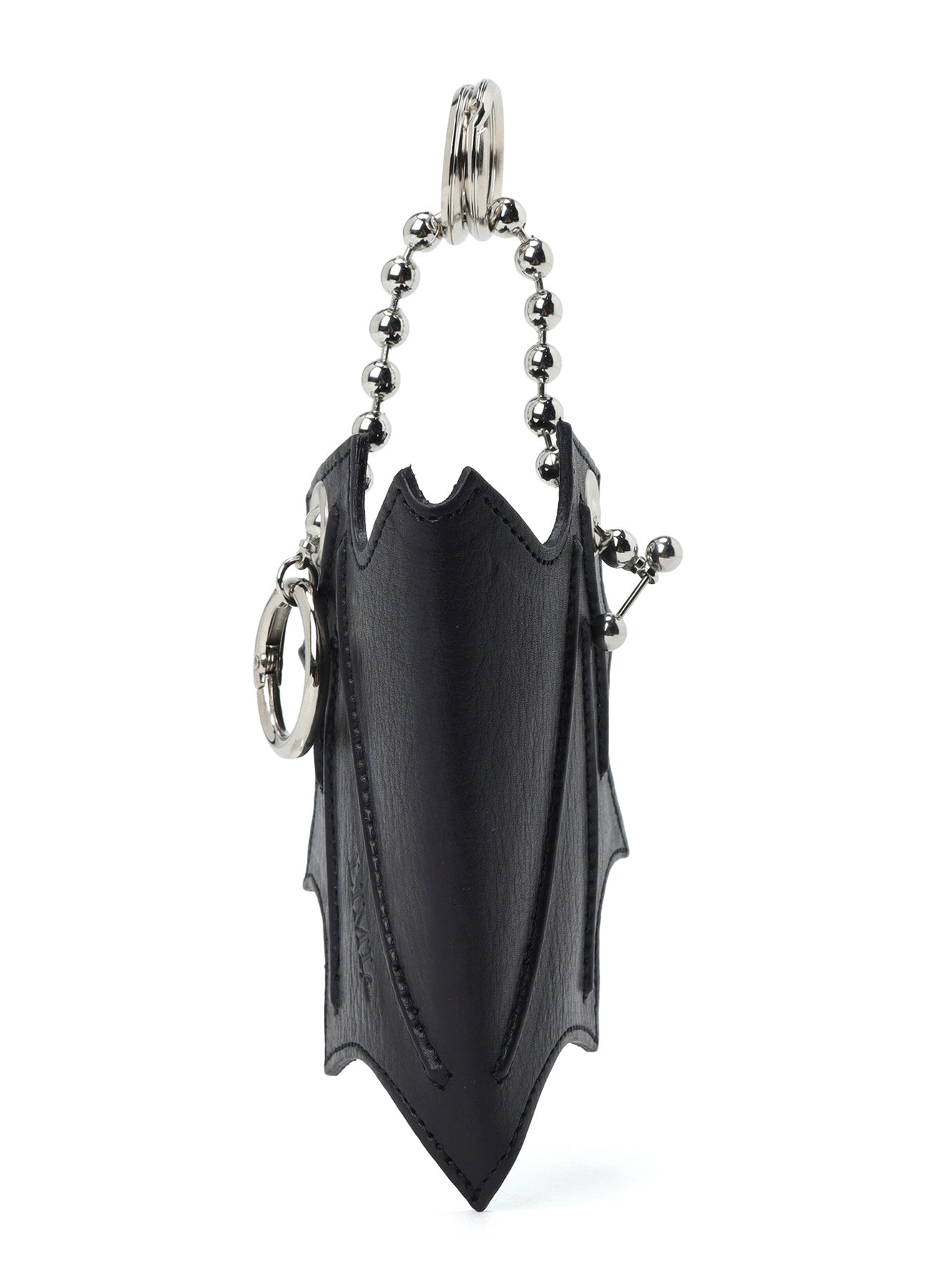 Gefertigt aus pflanzlich gegerbtem Leder, bietet dieses Stück eine geschmeidige Textur und natürlichen Glanz. Der Hauptteil ist von Fledermausflügeln inspiriert und über eine Kette befestigt. Innen gibt es einen Doppelring zur sicheren Aufbewahrung von Schlüsseln.