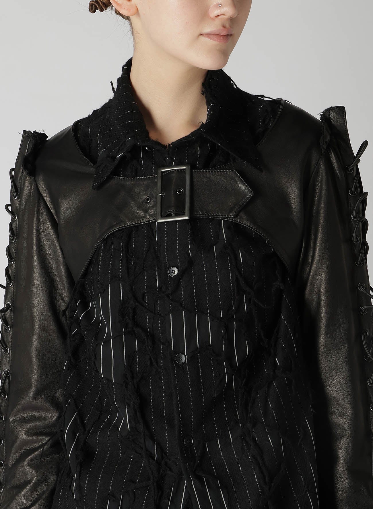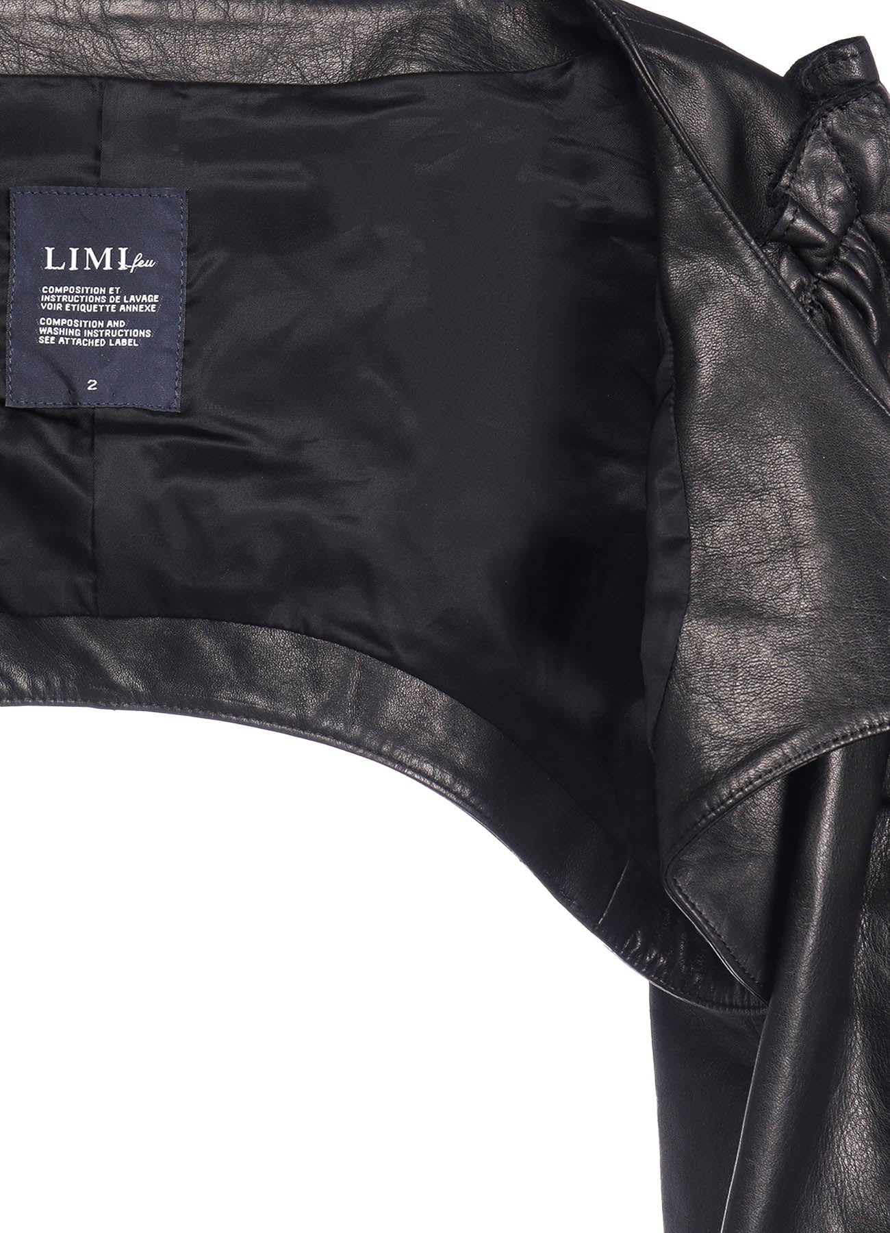 Diese Premium-Jacke von LIMI feu strahlt Eleganz aus, gefertigt aus glänzendem, weichem und angenehmem Rindsleder. Hervorragende Materialqualität, außergewöhnliches Design, Balance, Silhouette und minutiöse Details zeichnen sie aus. Erwarten Sie einzigartige Ausdrucksformen, während Sie sie im Laufe der Zeit tragen, trotz unvermeidlicher kleiner Merkmale des natürlichen Leders.