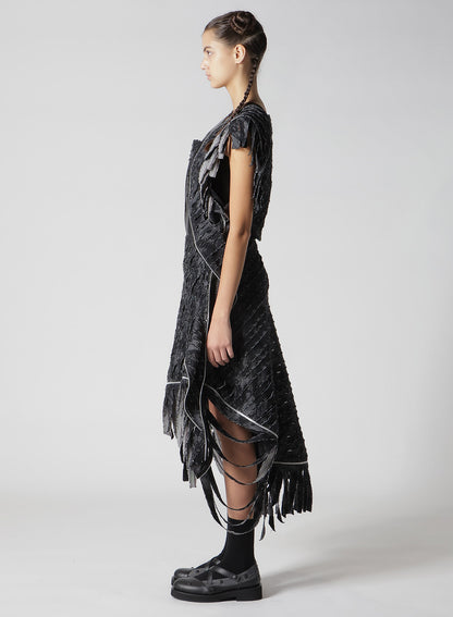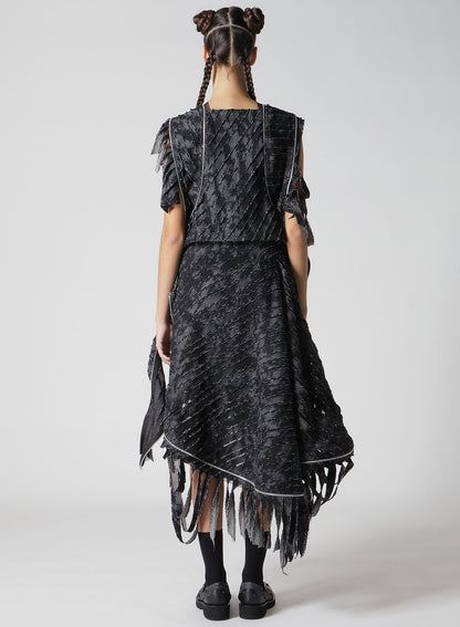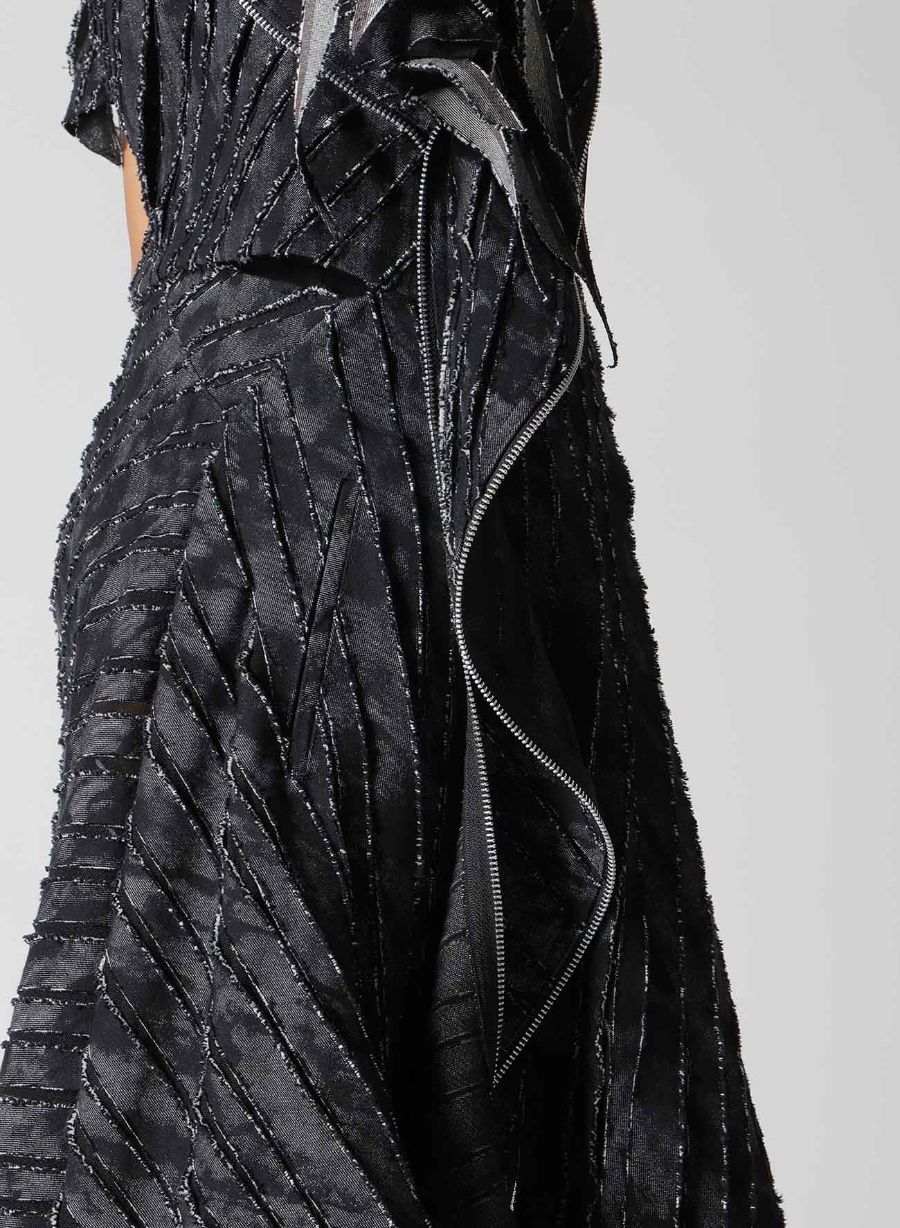 - Einzigartiger Denim-Druck auf schwarzem Hintergrund, kombiniert mit Tüll