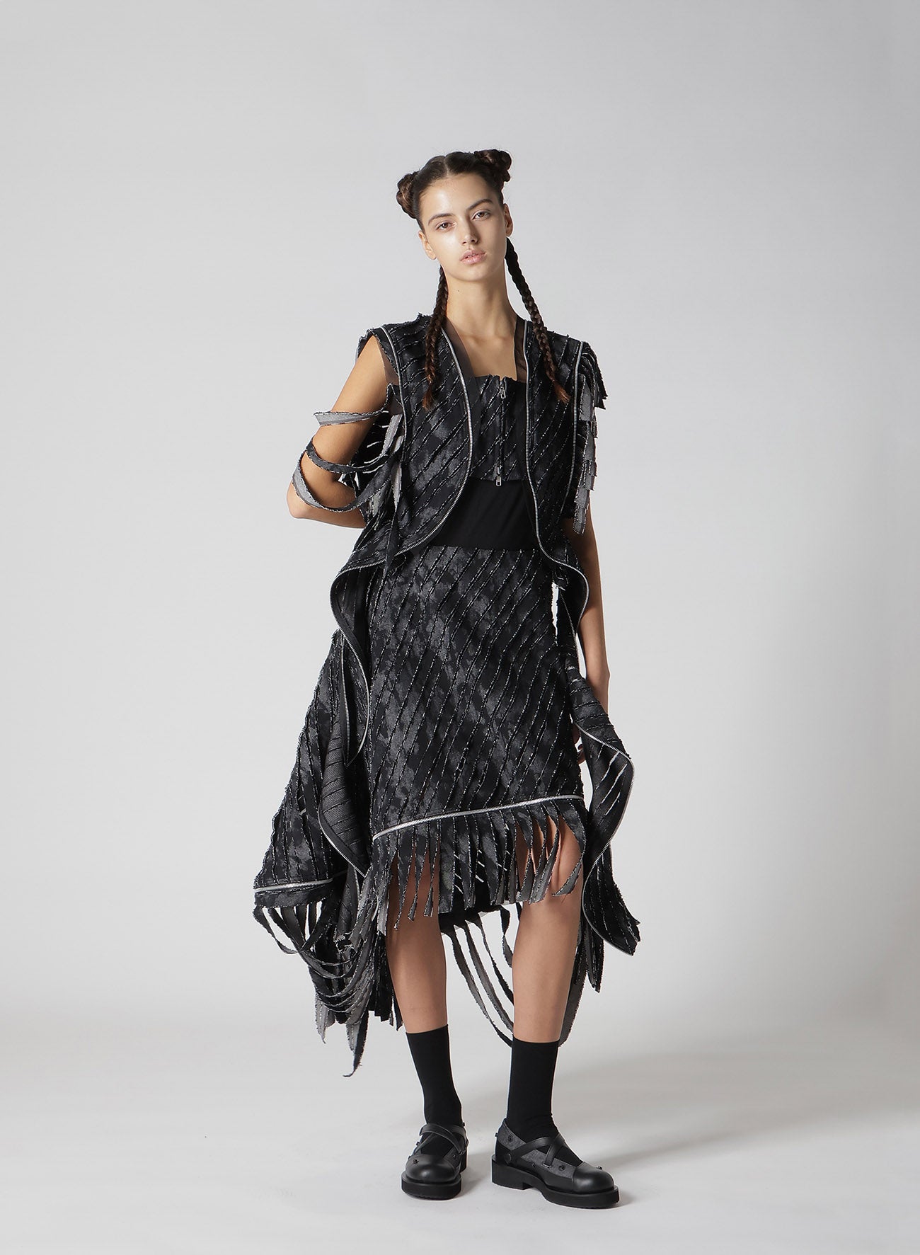 - Mit Reißverschluss für einen kühnen, punk-inspirierten Stil versehen