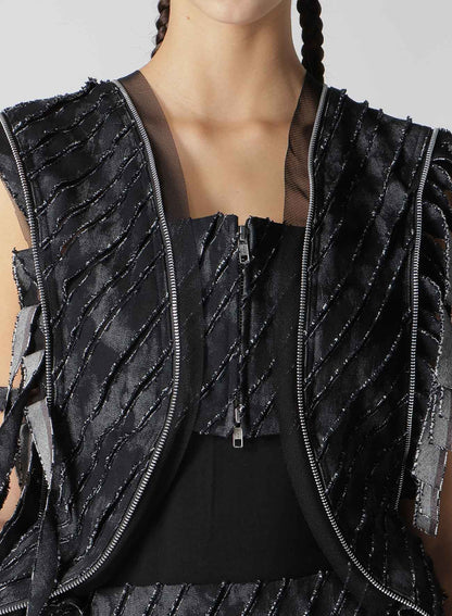 DENIM WITH SLASH DETAIL SPIRAL ZIP JACKET