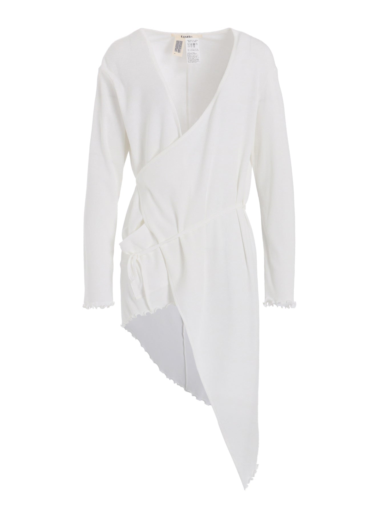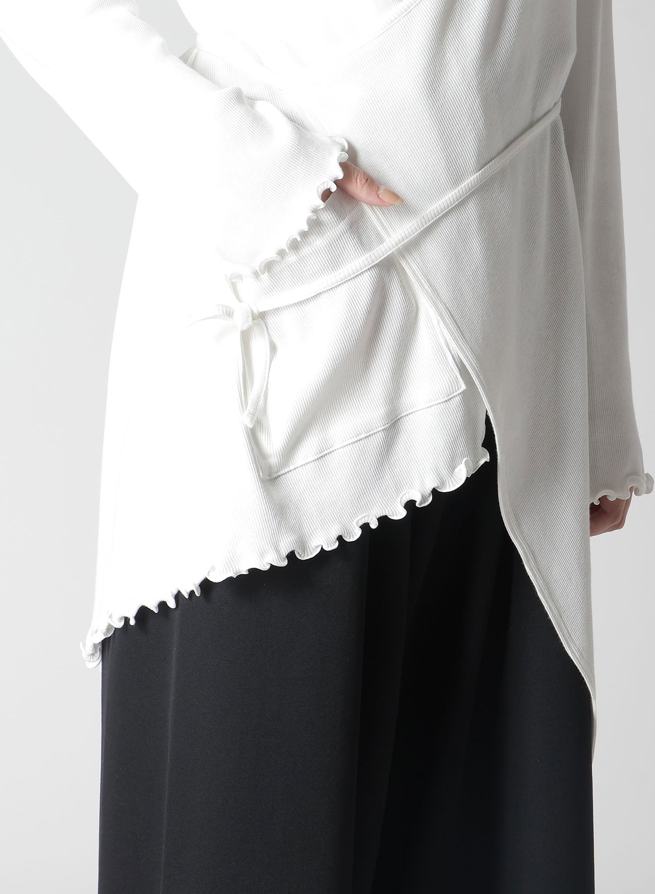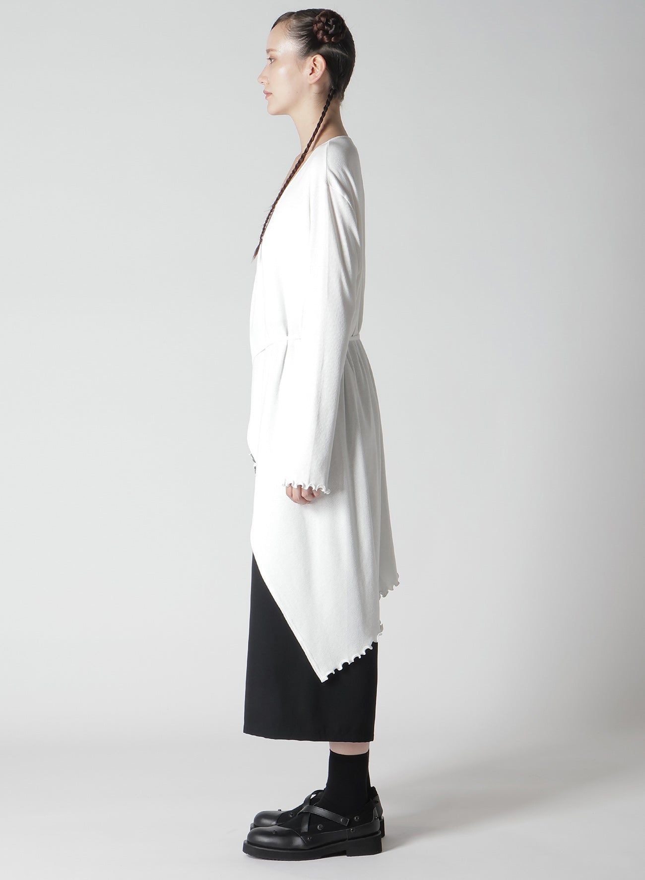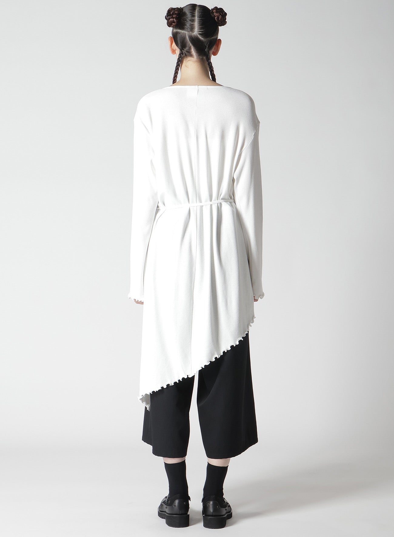 Dieser Cardigan kombiniert Baumwolle und Rayon für eine weiche, angenehme Textur und eine natürliche Passform, die den Komfort verbessert. Das asymmetrische Design bietet, obwohl einfach, einen dynamischen Ausdruck aus verschiedenen Blickwinkeln und ermöglicht eine effektive Temperaturregulation.