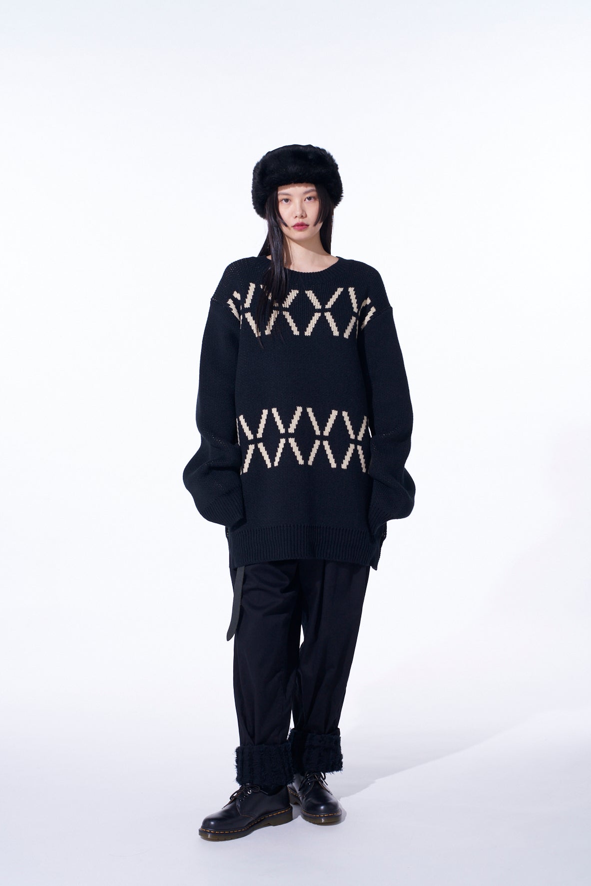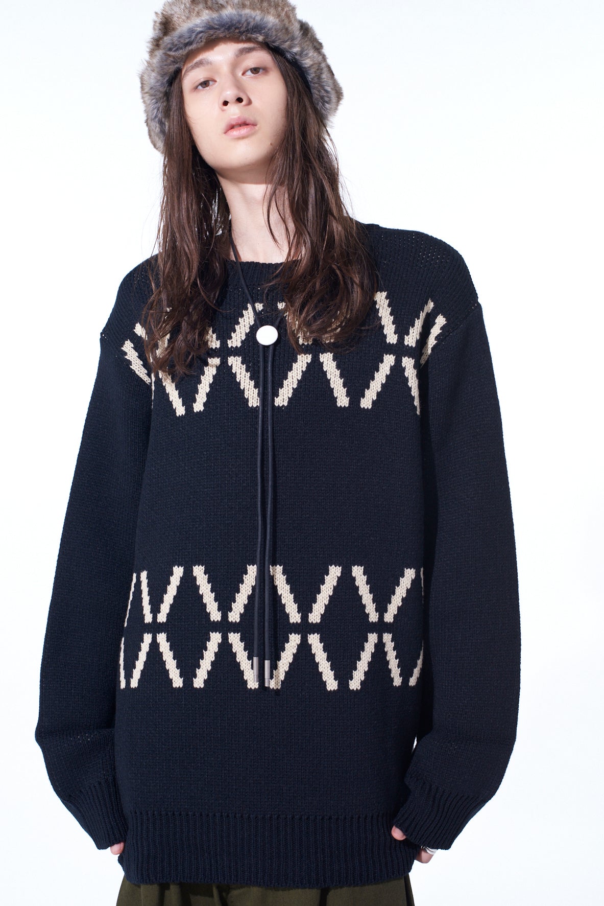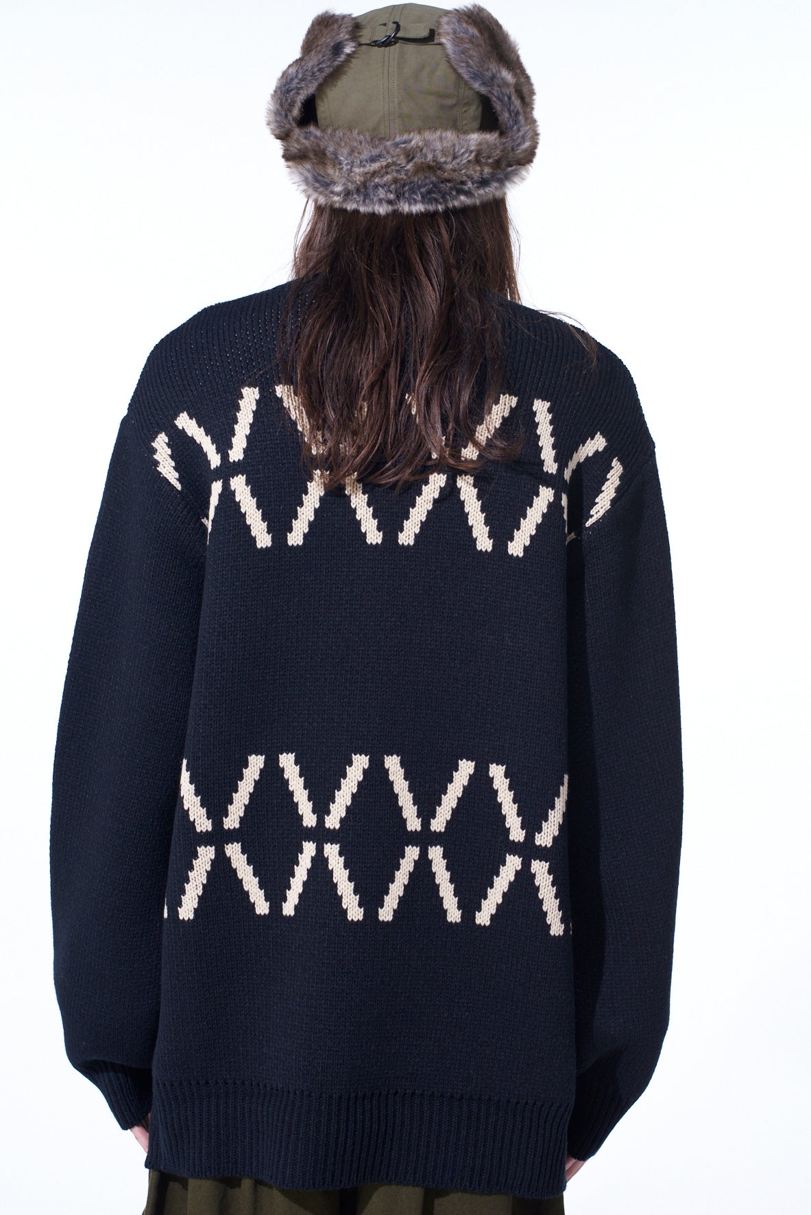 BULKY WOOL BIRDS EYE REVERSIBLE PULLOVER
