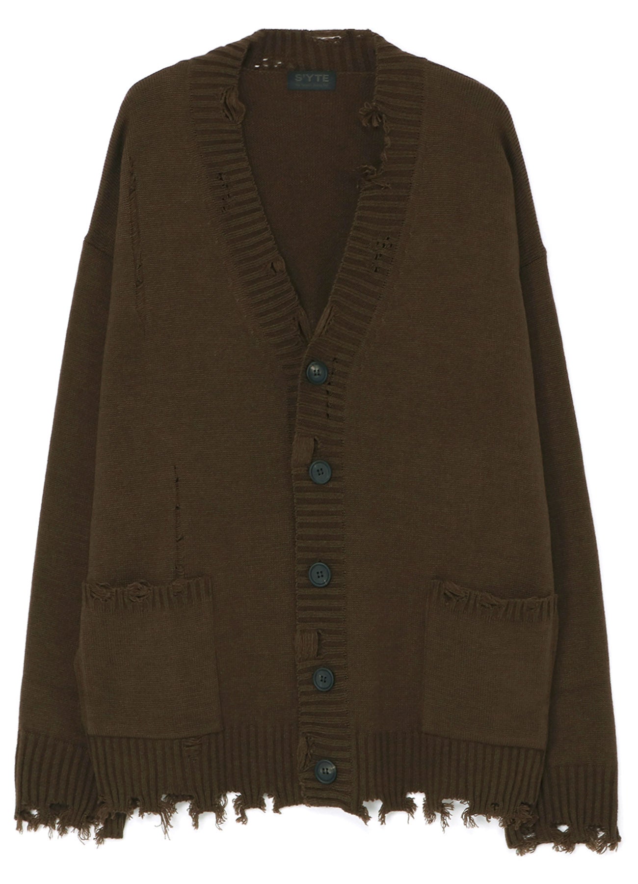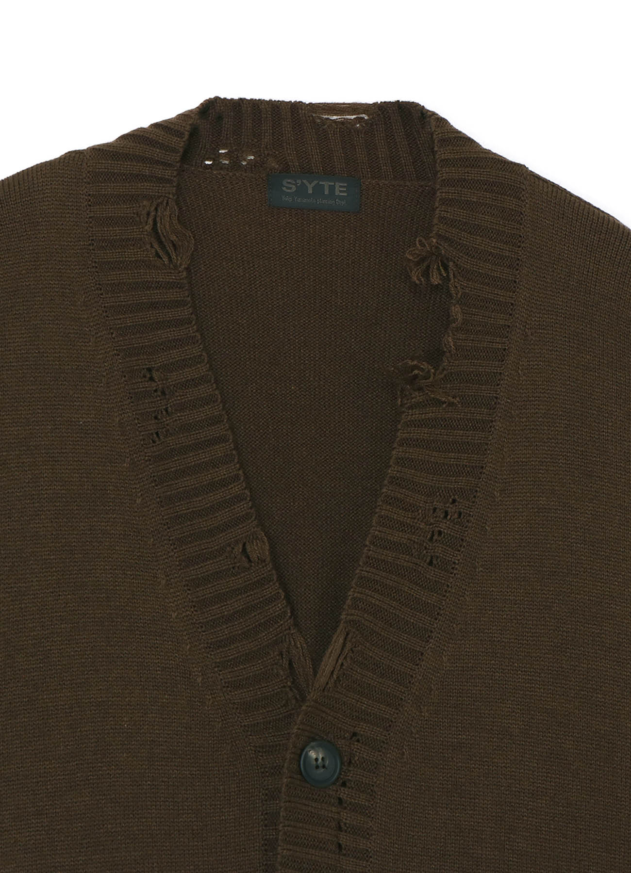 7G BULKY WOOL DAMAGE V-NECK CARDIGAN