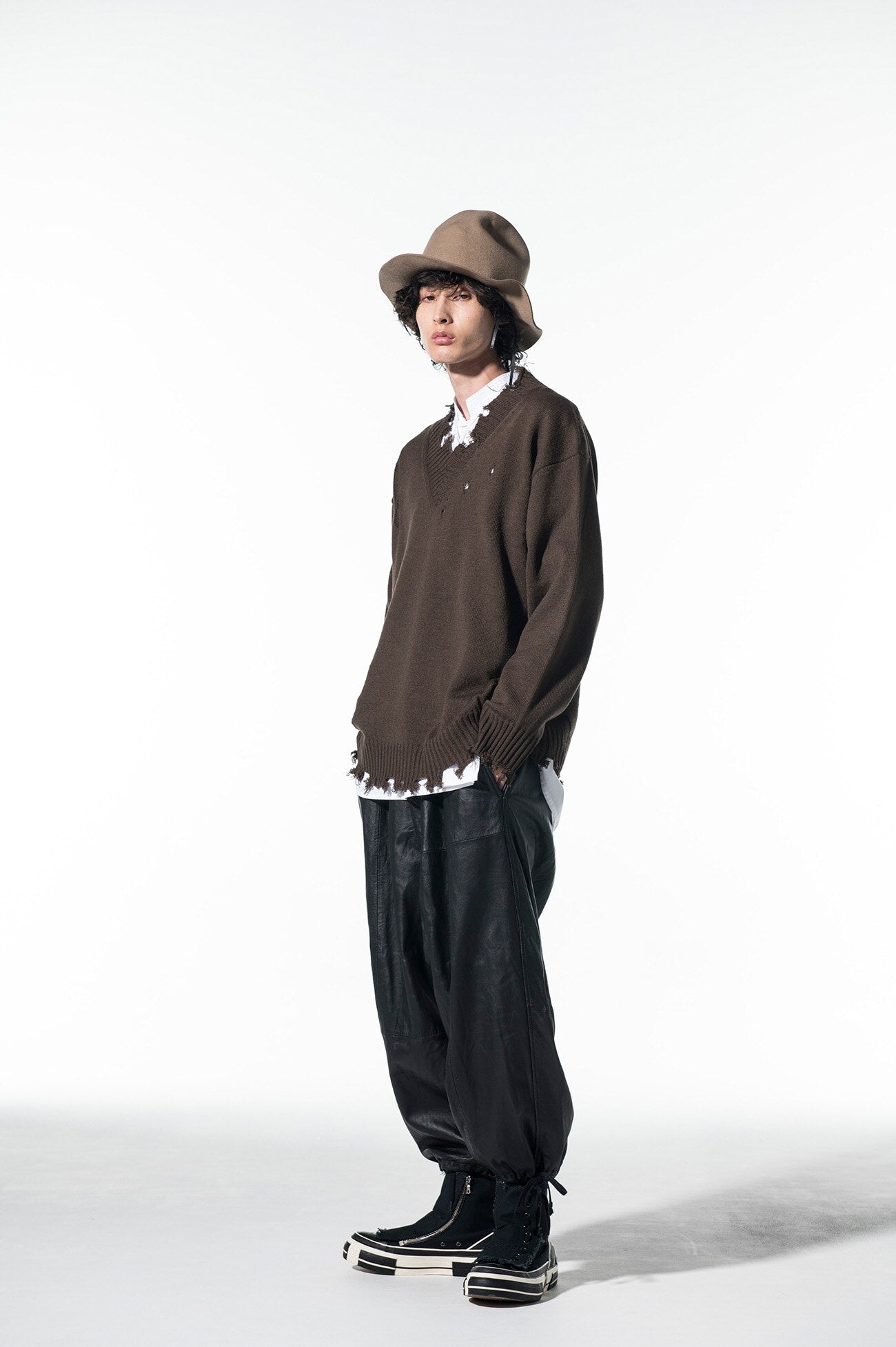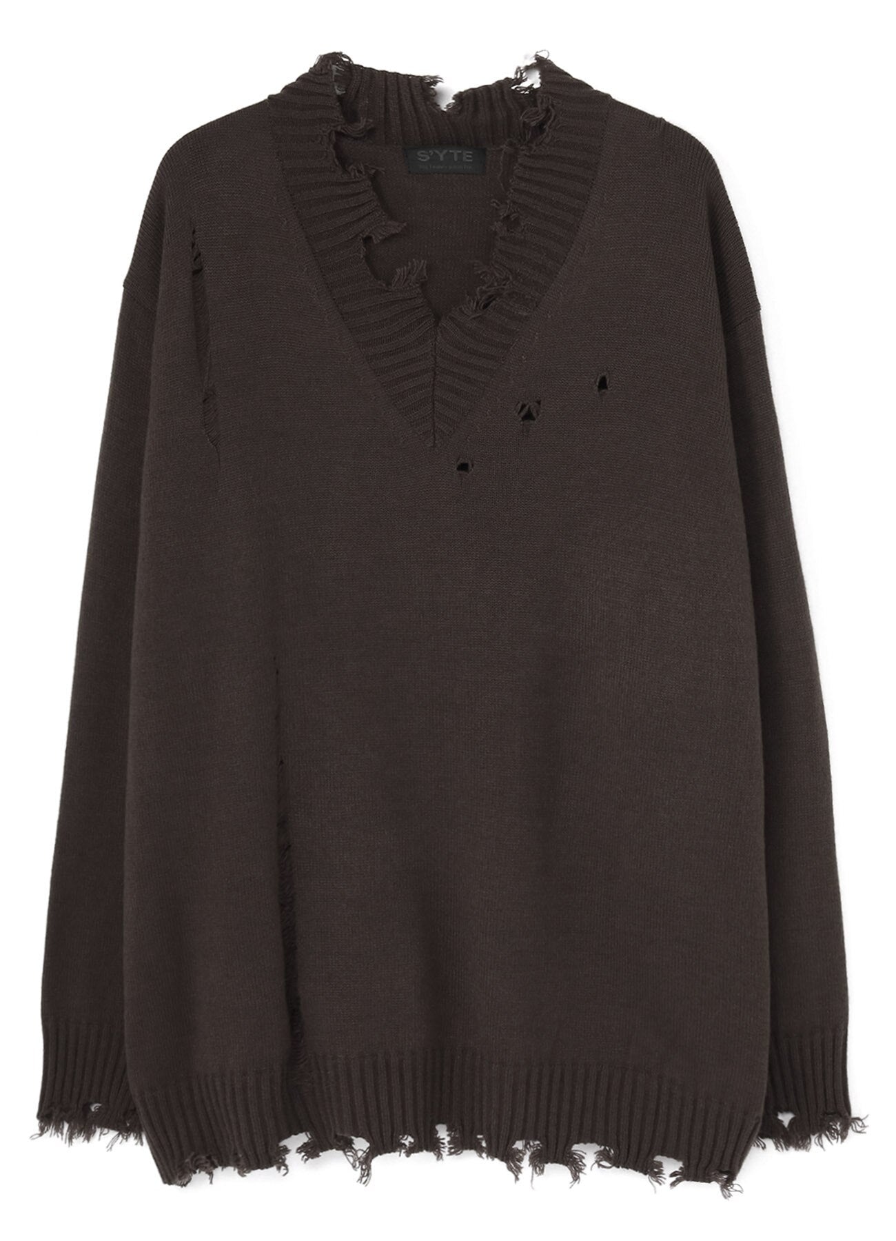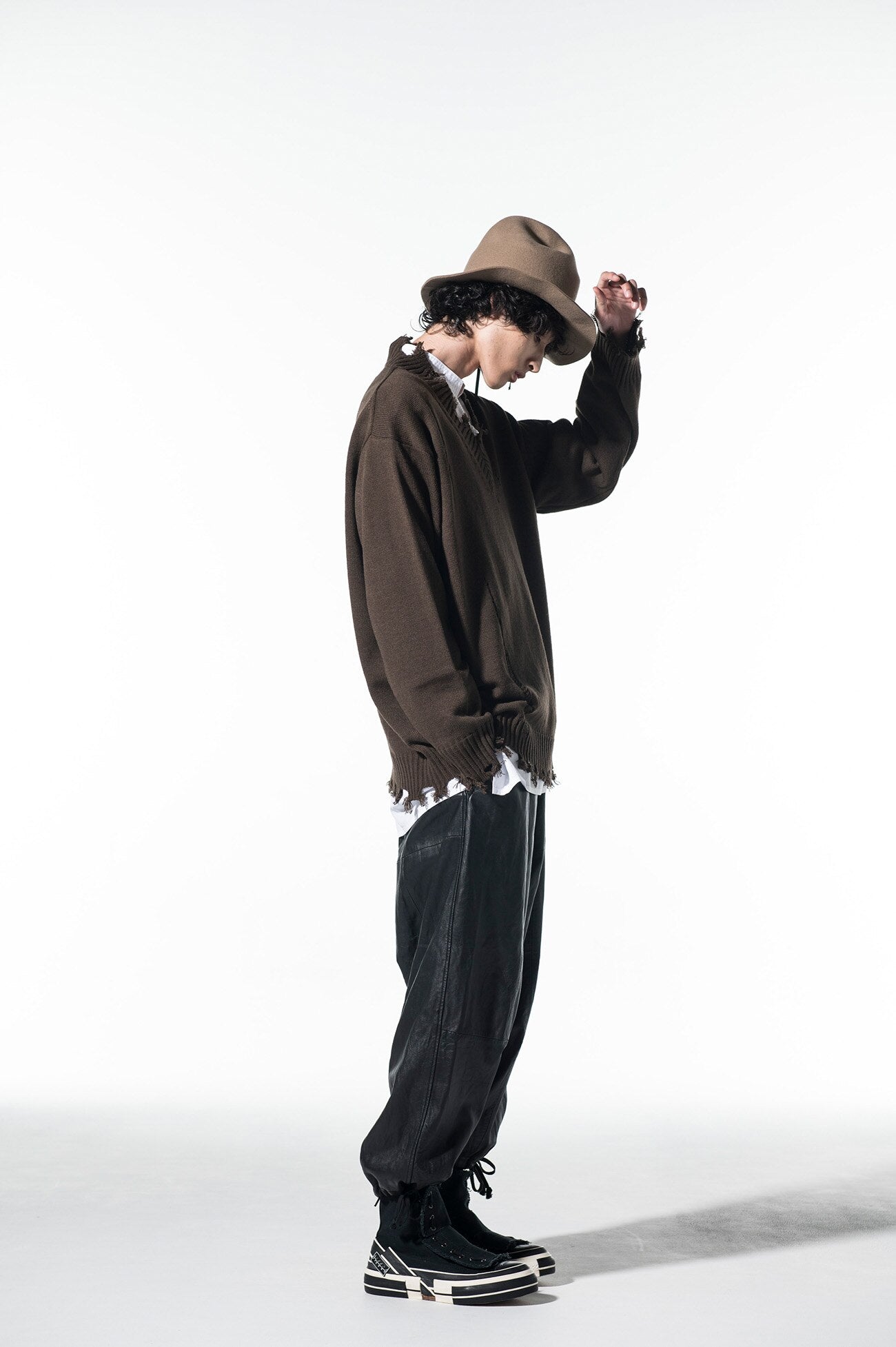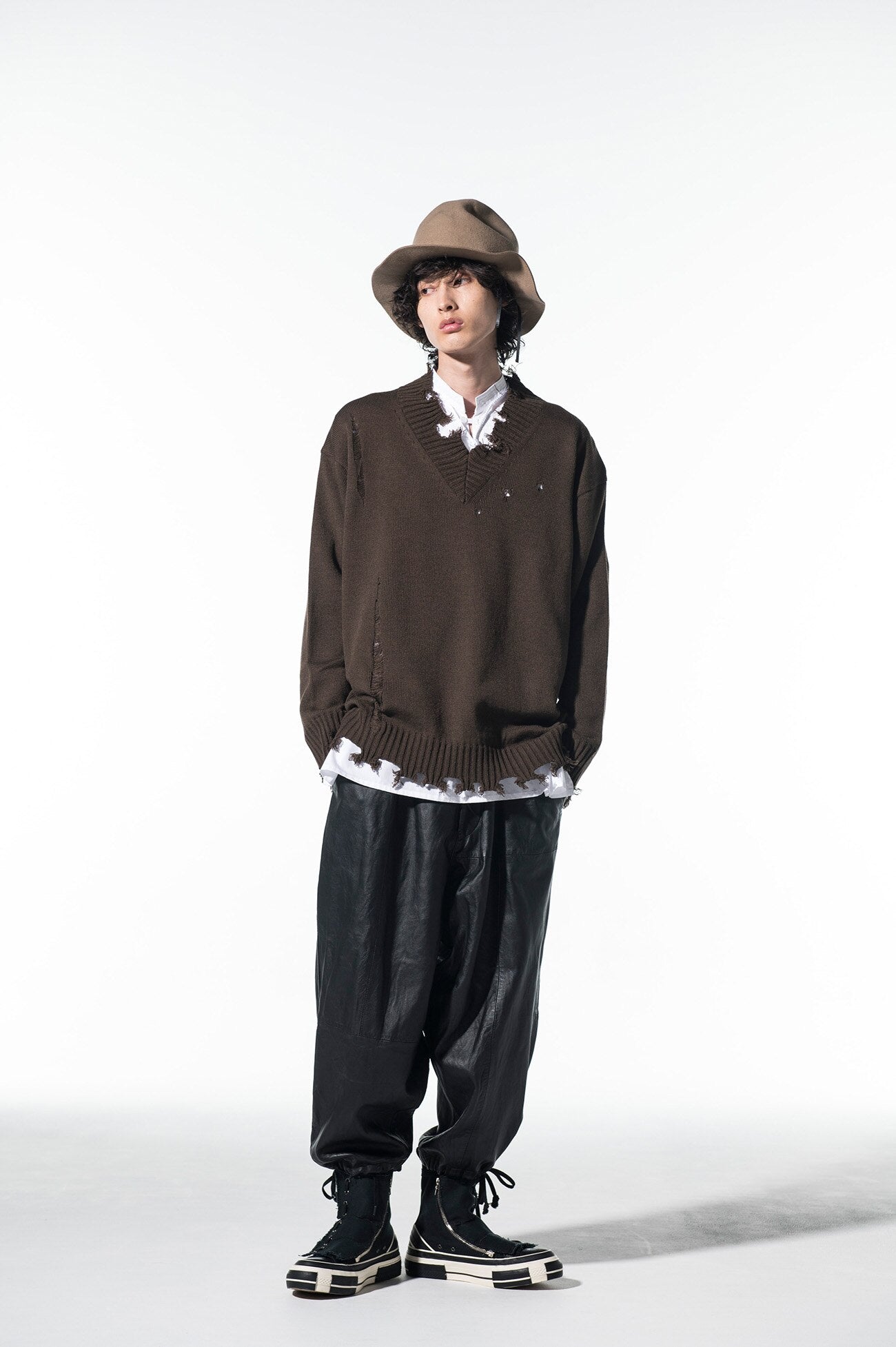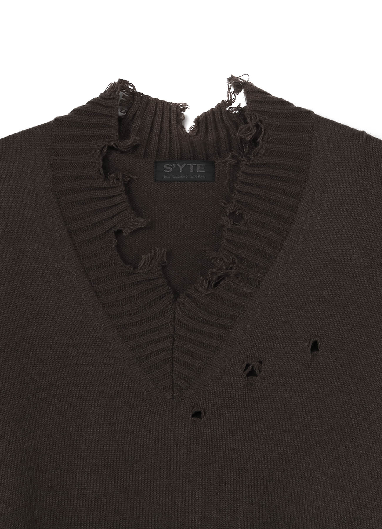 7G BULKY WOOL DAMAGE V NECK PULLOVER