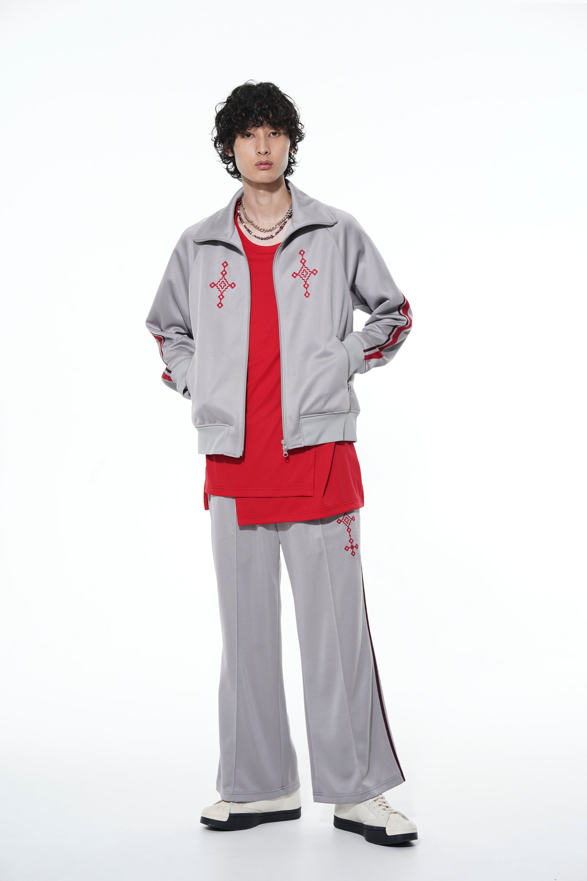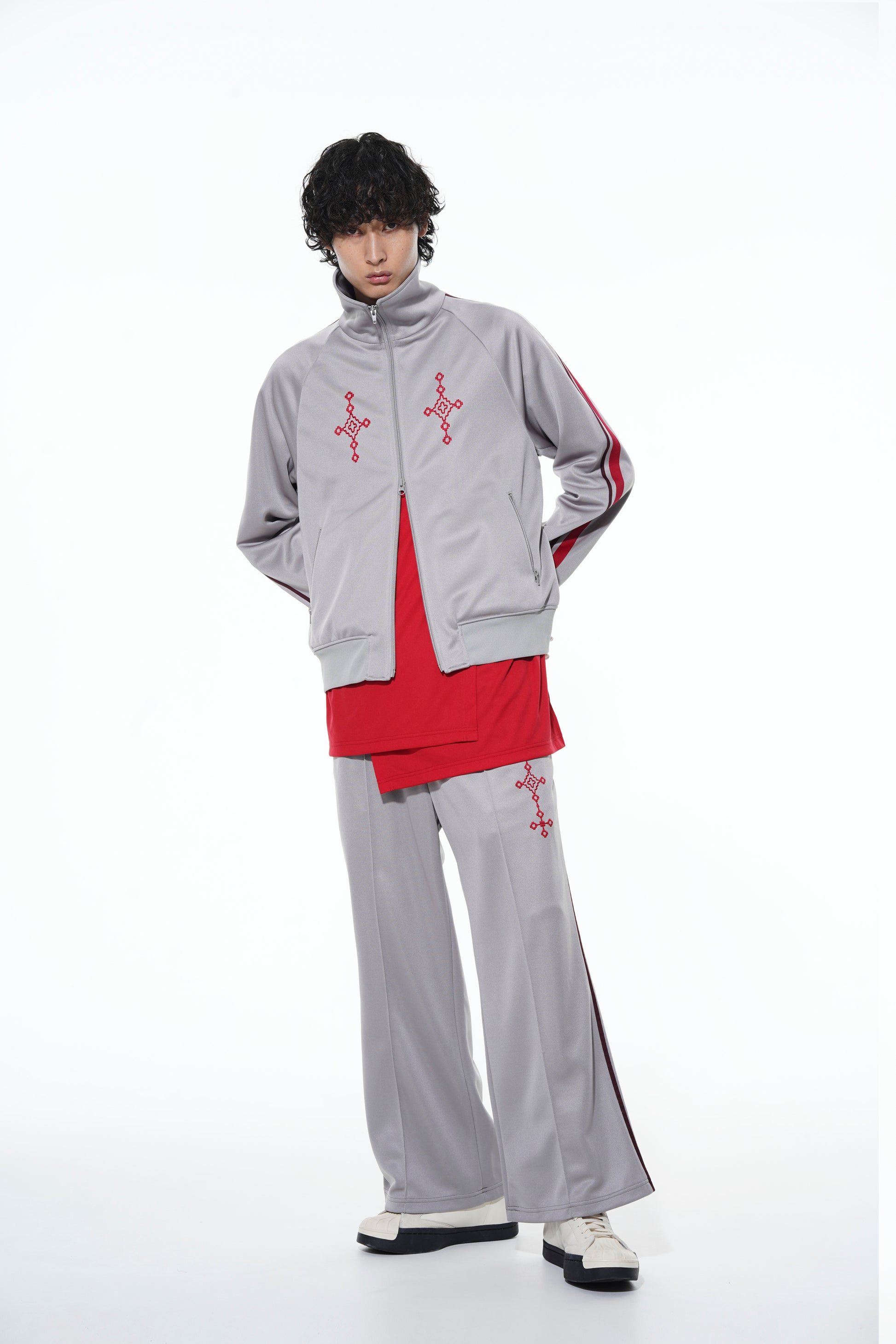 Genießen Sie einen von den 90ern inspirierten Look mit diesen Trackpants in ausgestellter Silhouette, die spacelike Gray x Red und klassische Yohji Yamamoto Black x Yellow Farboptionen bieten. Einzigartige geometrische Muster verbinden Sport- und orientalische Elemente. Kombinieren Sie sie mit verschiedenen Oberteilen für einen von YY inspirierten Trainingsanzug-Stil. Hergestellt aus pflegeleichtem Polyester, perfekt für den ganzjährigen Gebrauch.