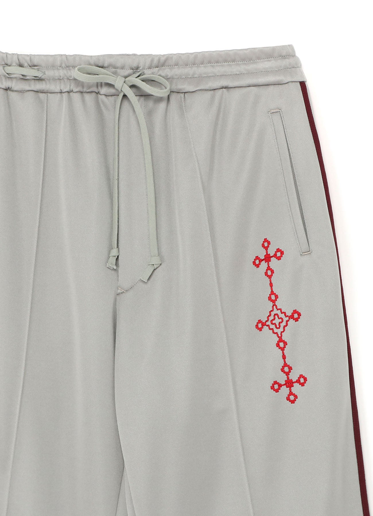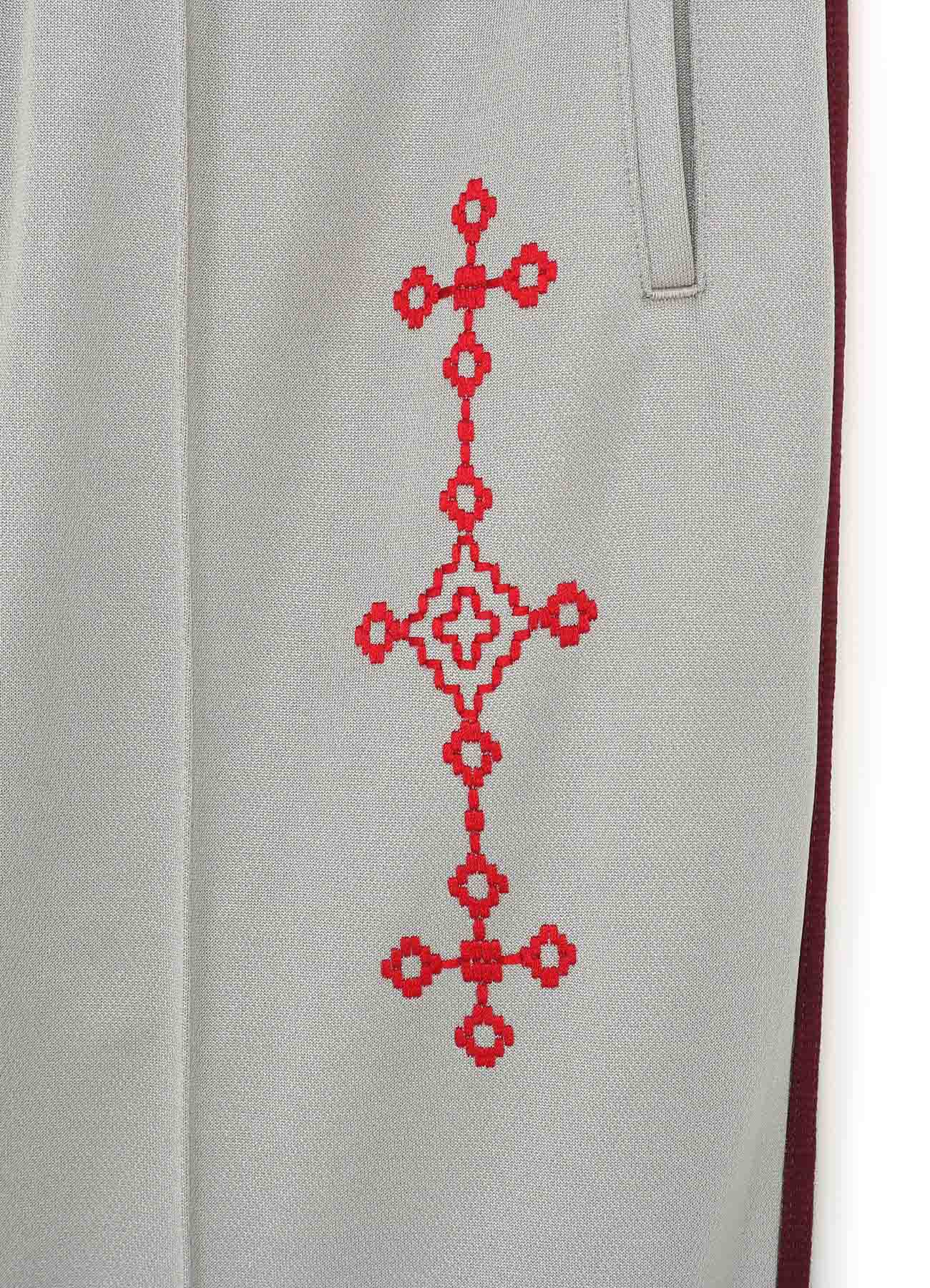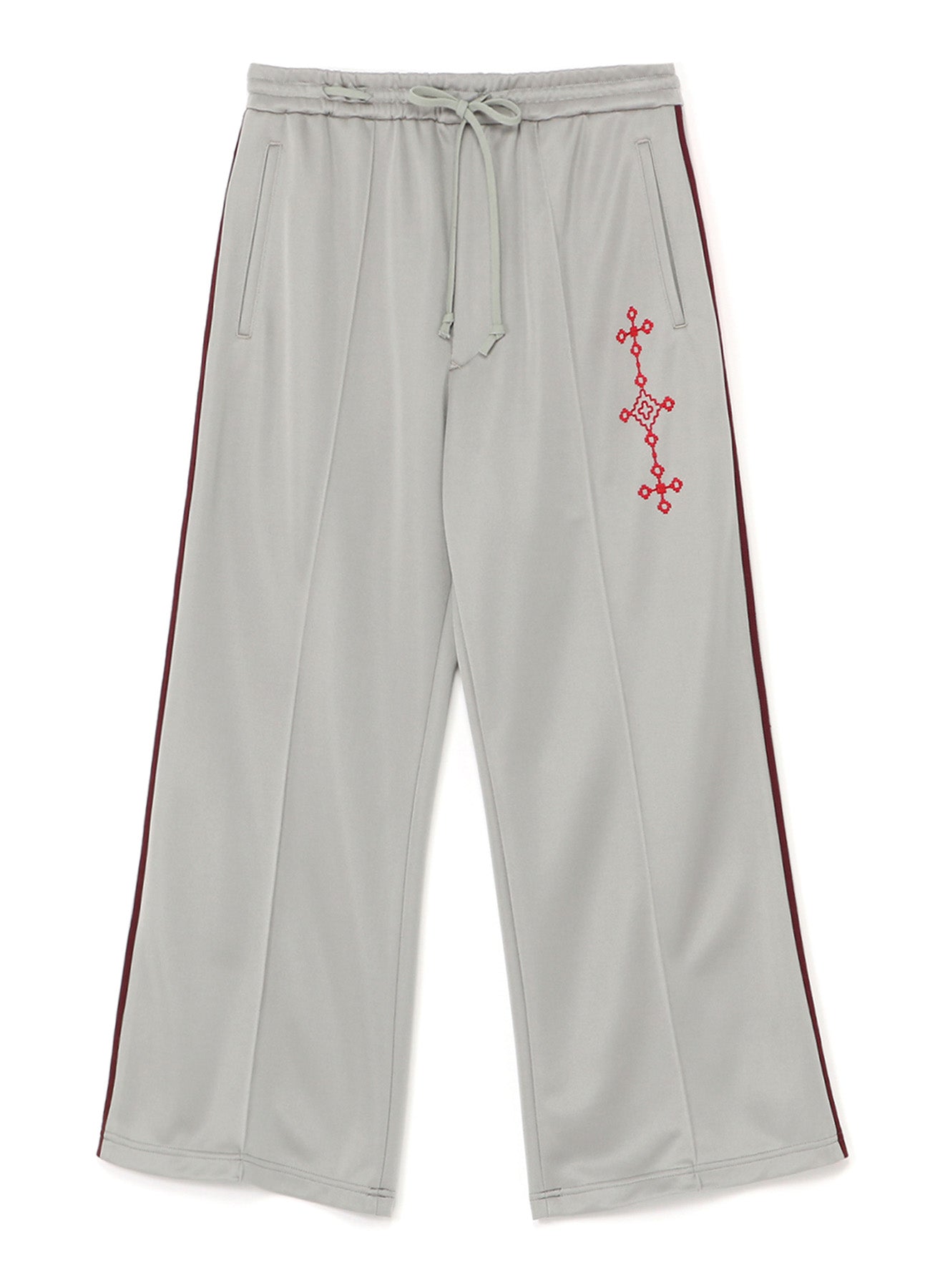 PE/SMOOTH JERSEY GEOMETRIC PATTERN EMBROIDERY SIDE TAPE LINE FLARE PANTS