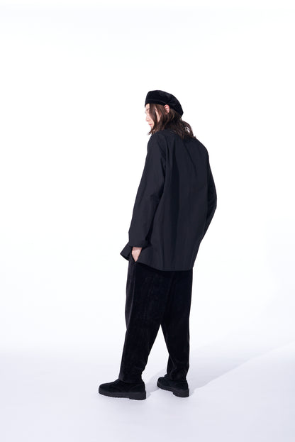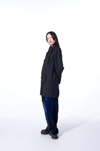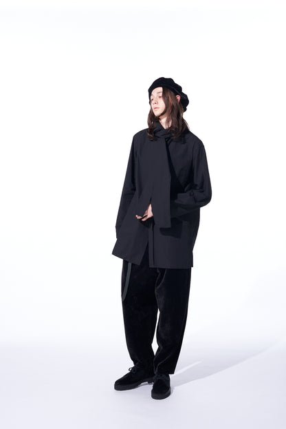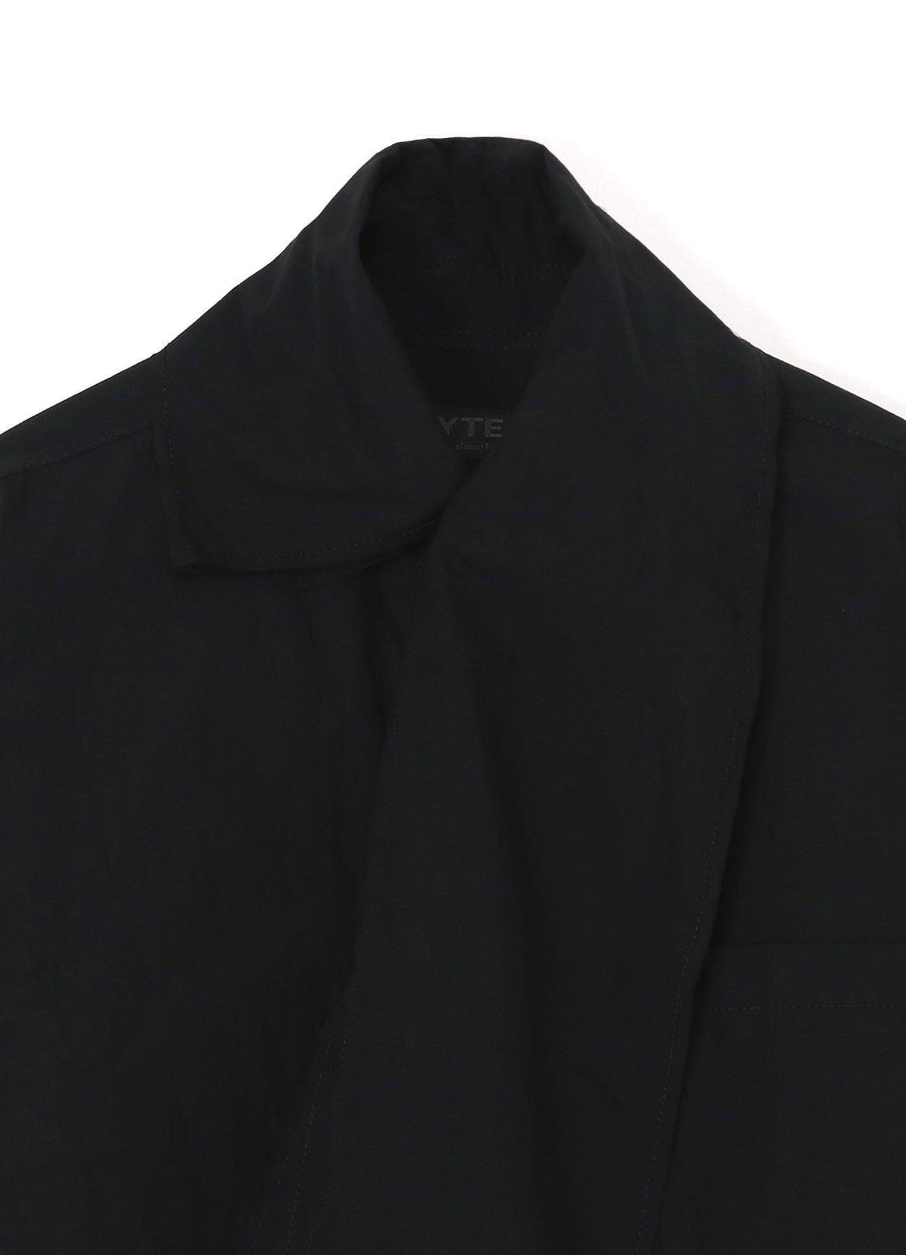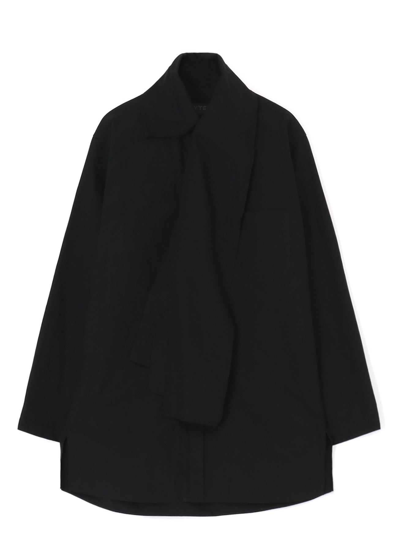 COTTON/LINEN WASHER TYPEWRITER ASYMMETRICAL STOLE COLLAR SHIRT