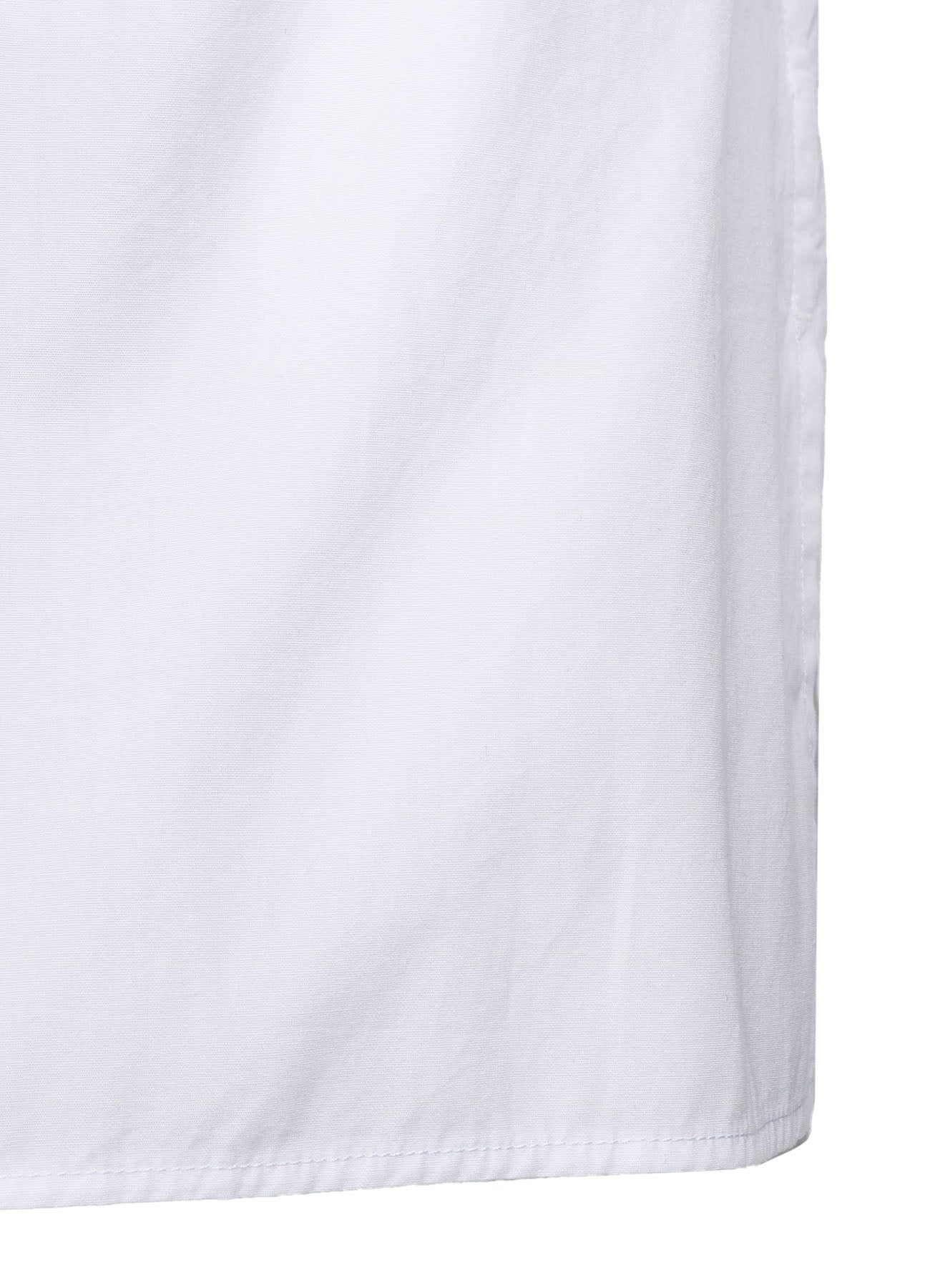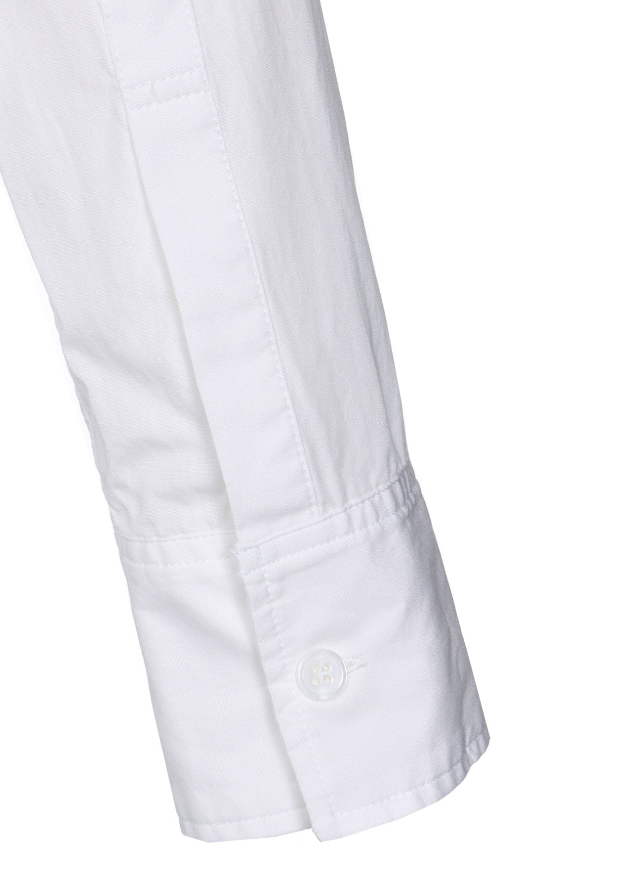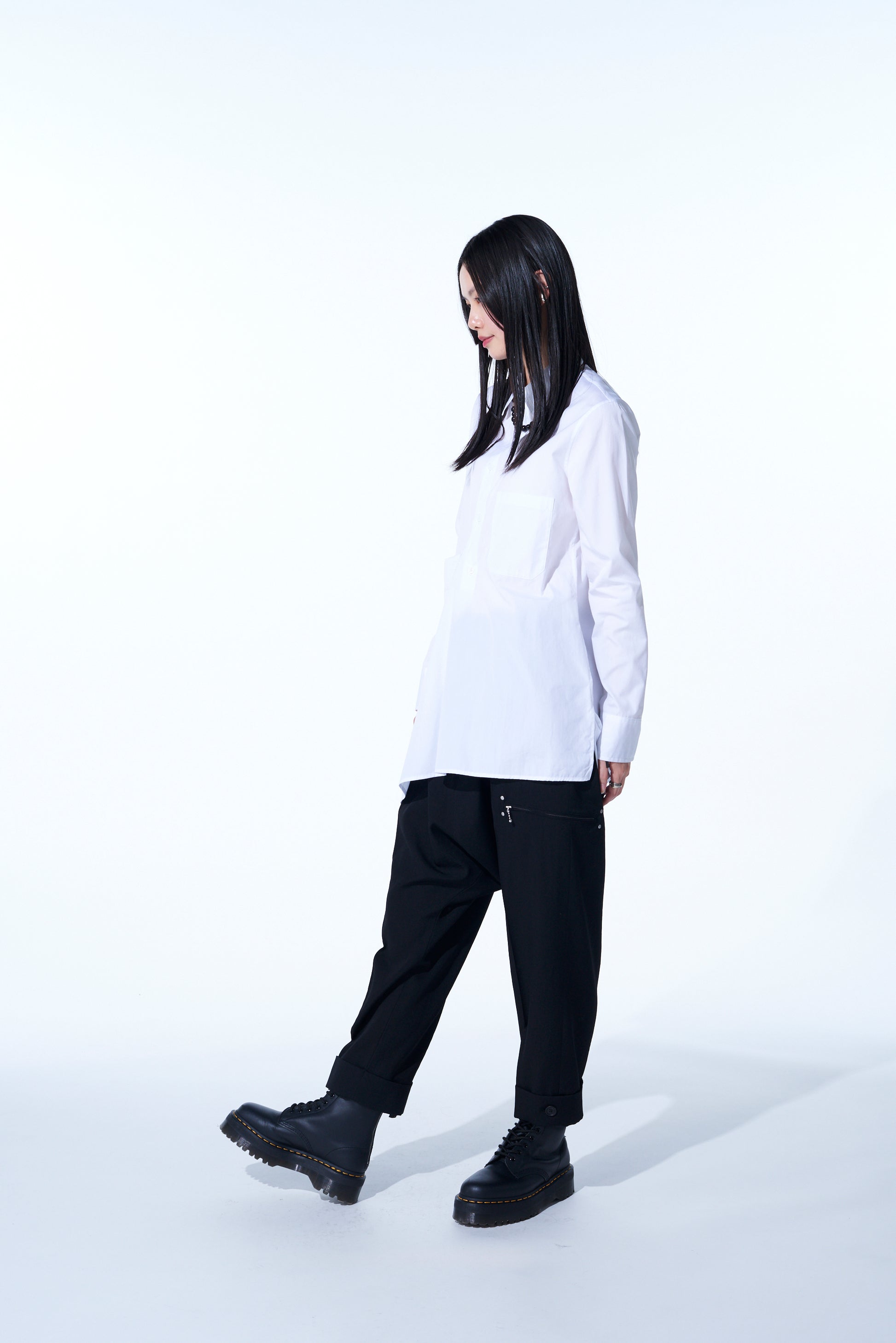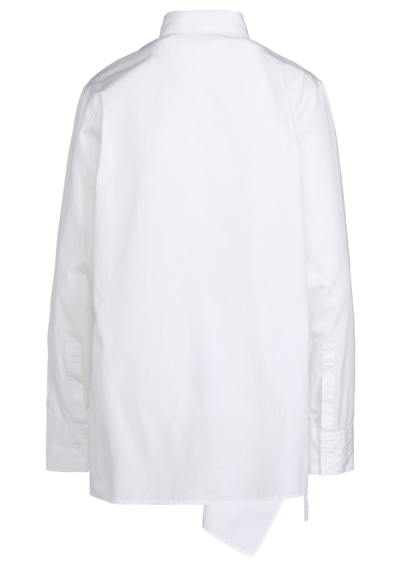 Ein kunstvoll gestaltetes Hemd, das verschiedene Frontstil-Anordnungen ermöglicht. Der rechte Seitenzug durch die linke Vorderblende erzeugt Drapierung am Saum. Das Damenschnittmuster bietet eine enge Passform an Schultern und Armen, mit einem ausgestellten Saum. Es hat eine moderate Länge, die für jeden Hosenstil geeignet ist, und besteht aus glänzendem Baumwoll-Broadcloth, das für jede Saison geeignet ist.