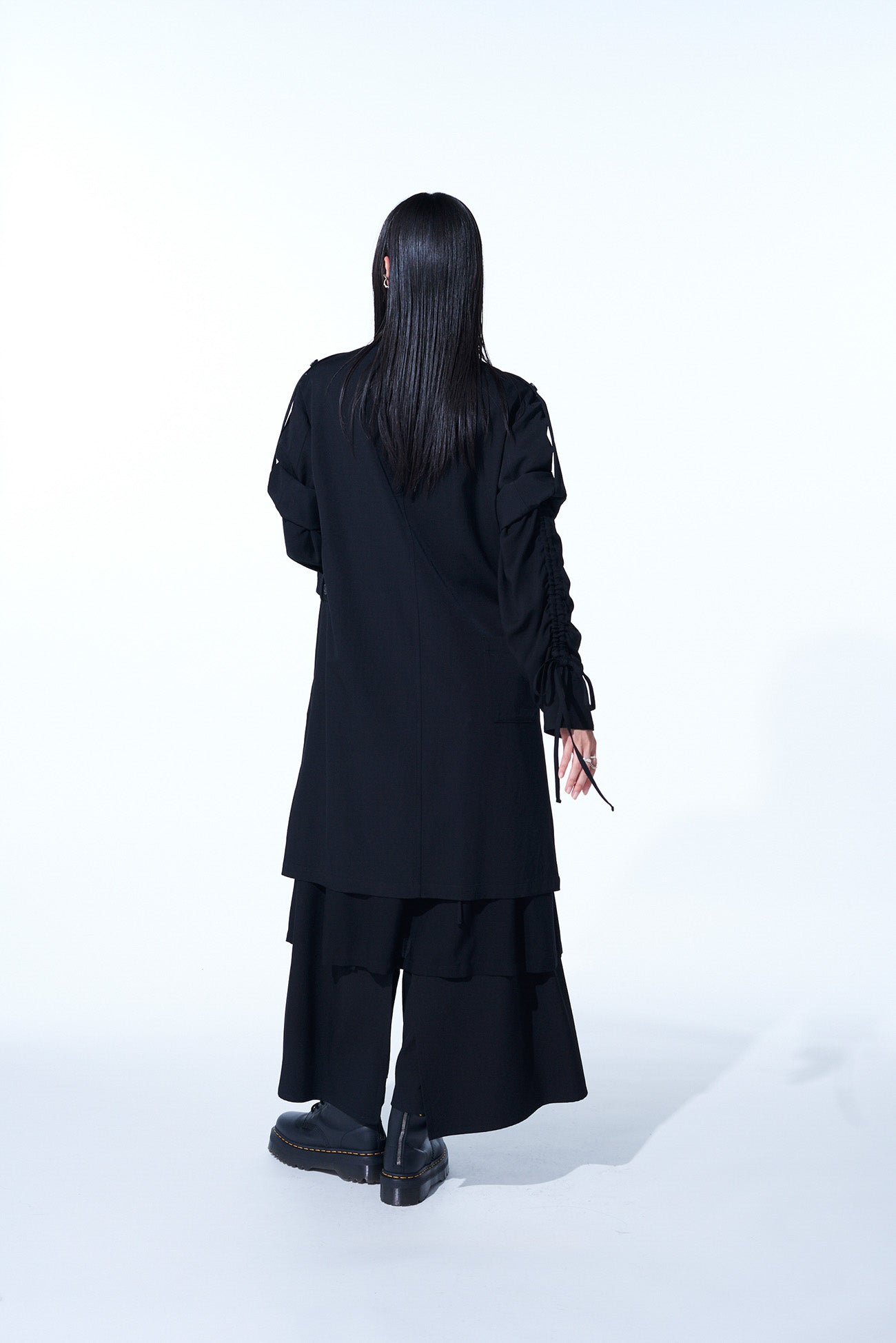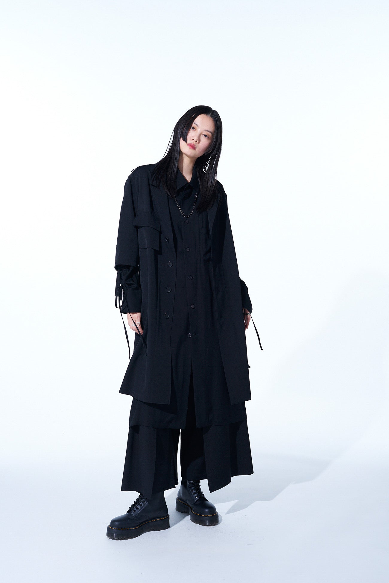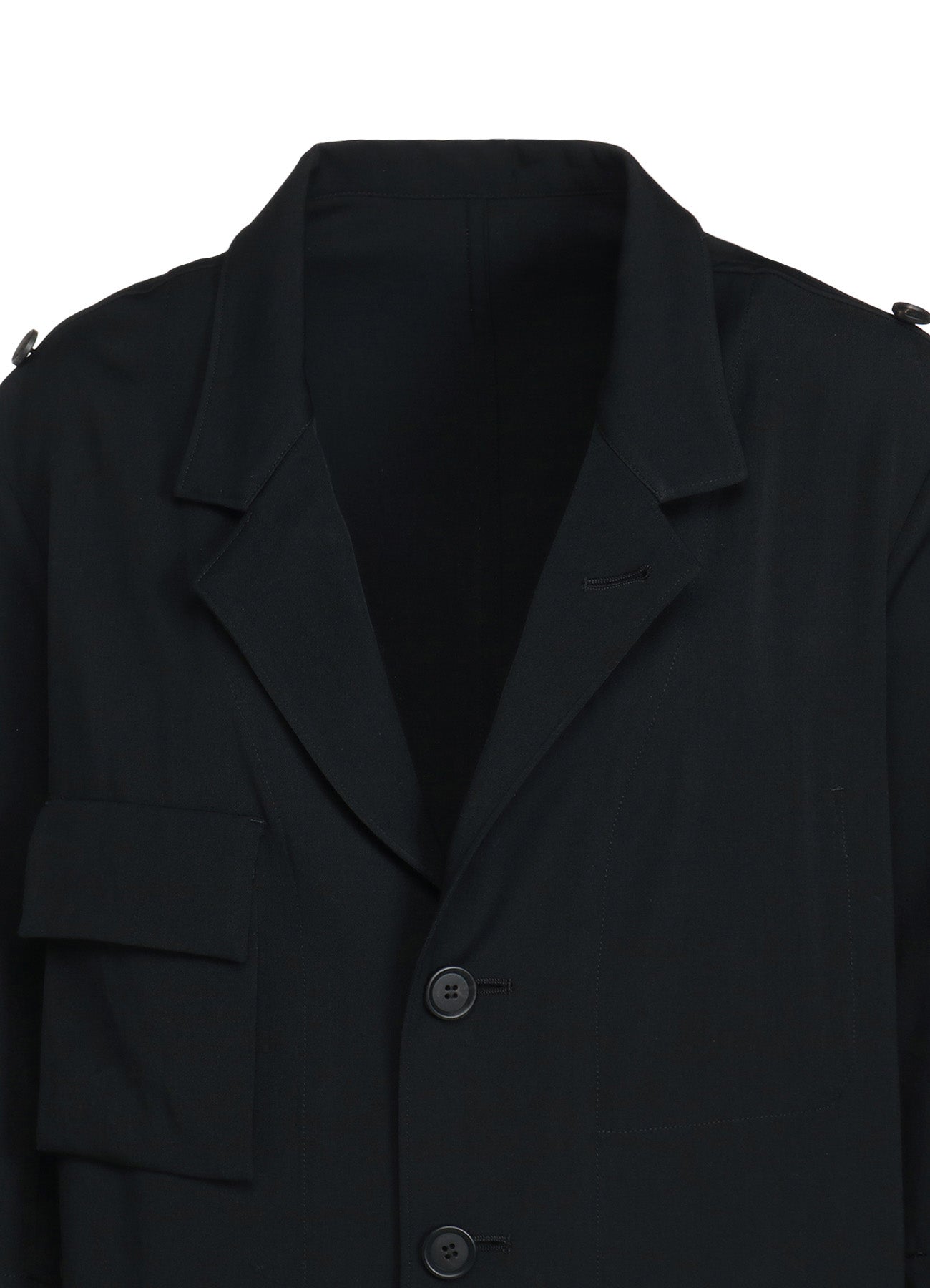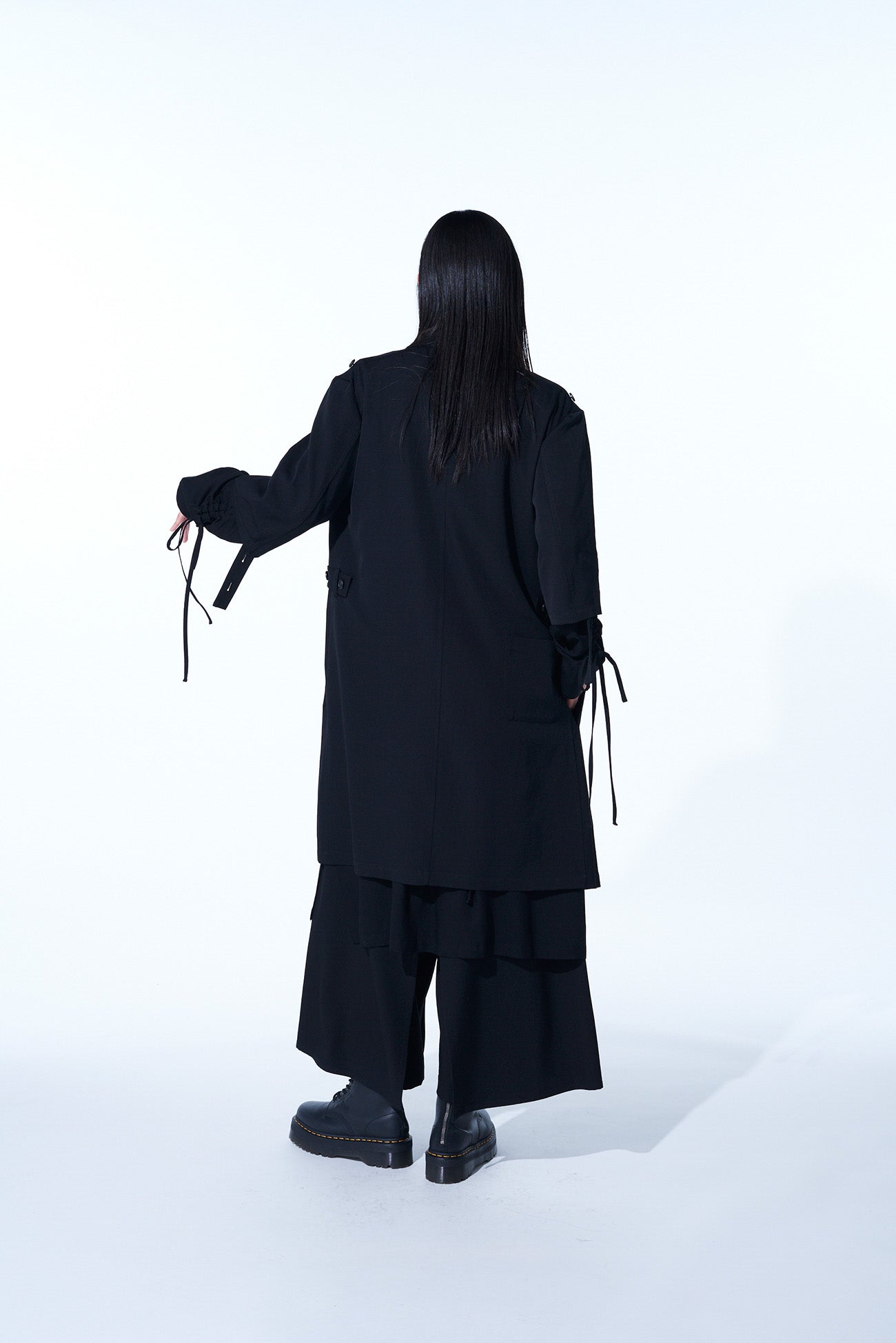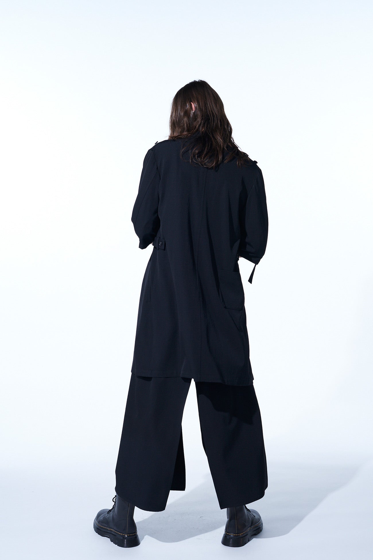 WASHER FINISHED WOOL GABARDINE LONG JACKET WITH TAPED SLEEVES