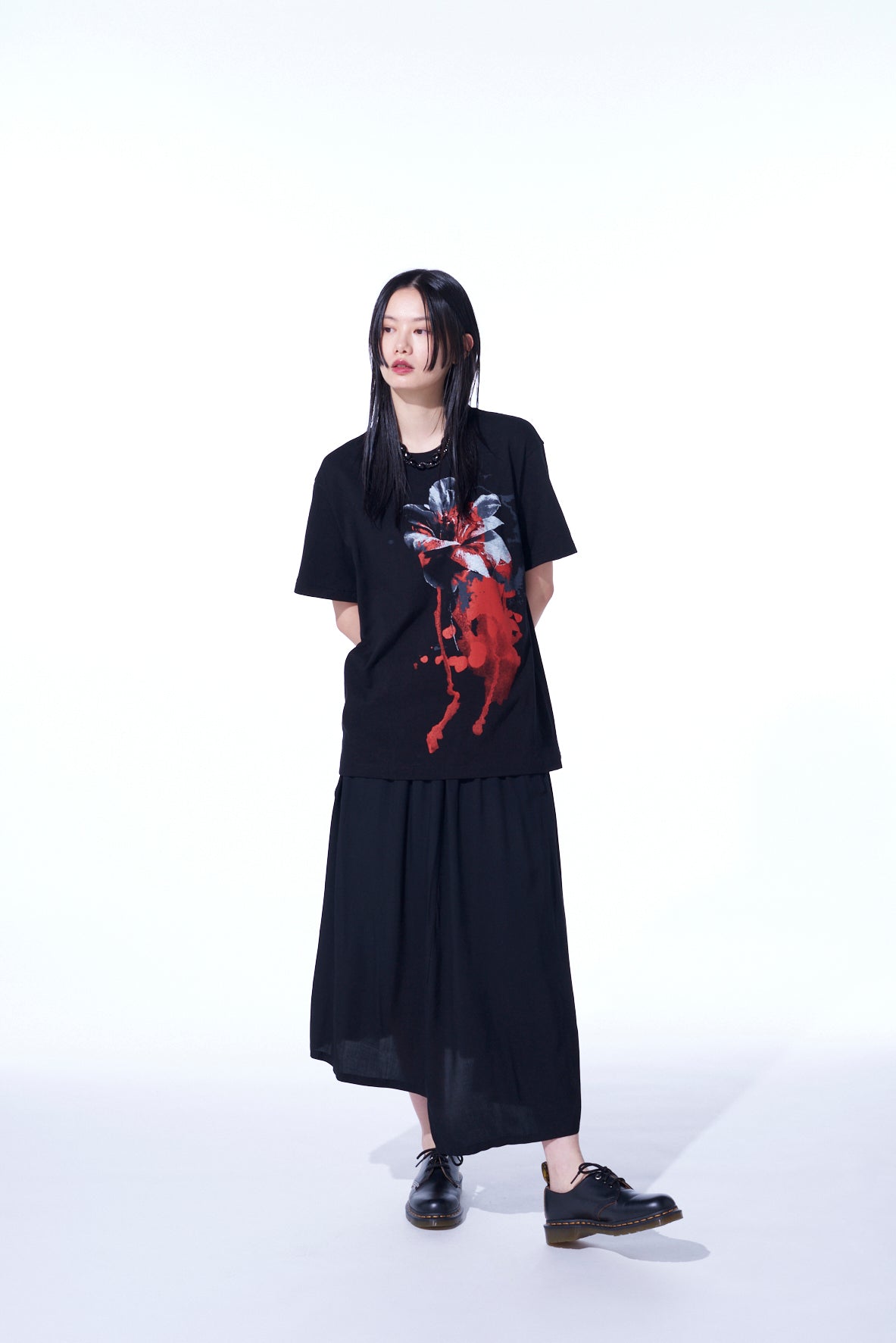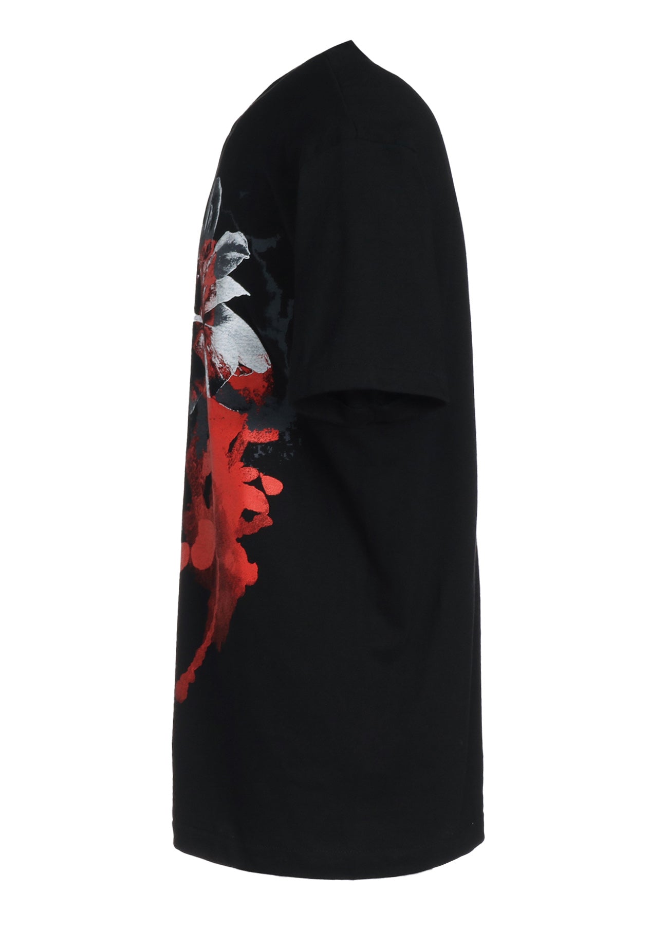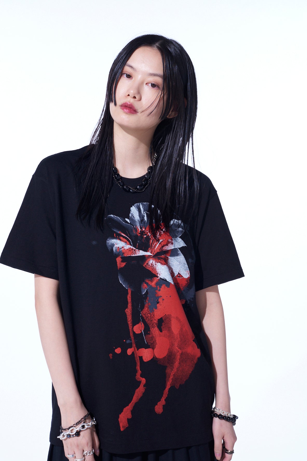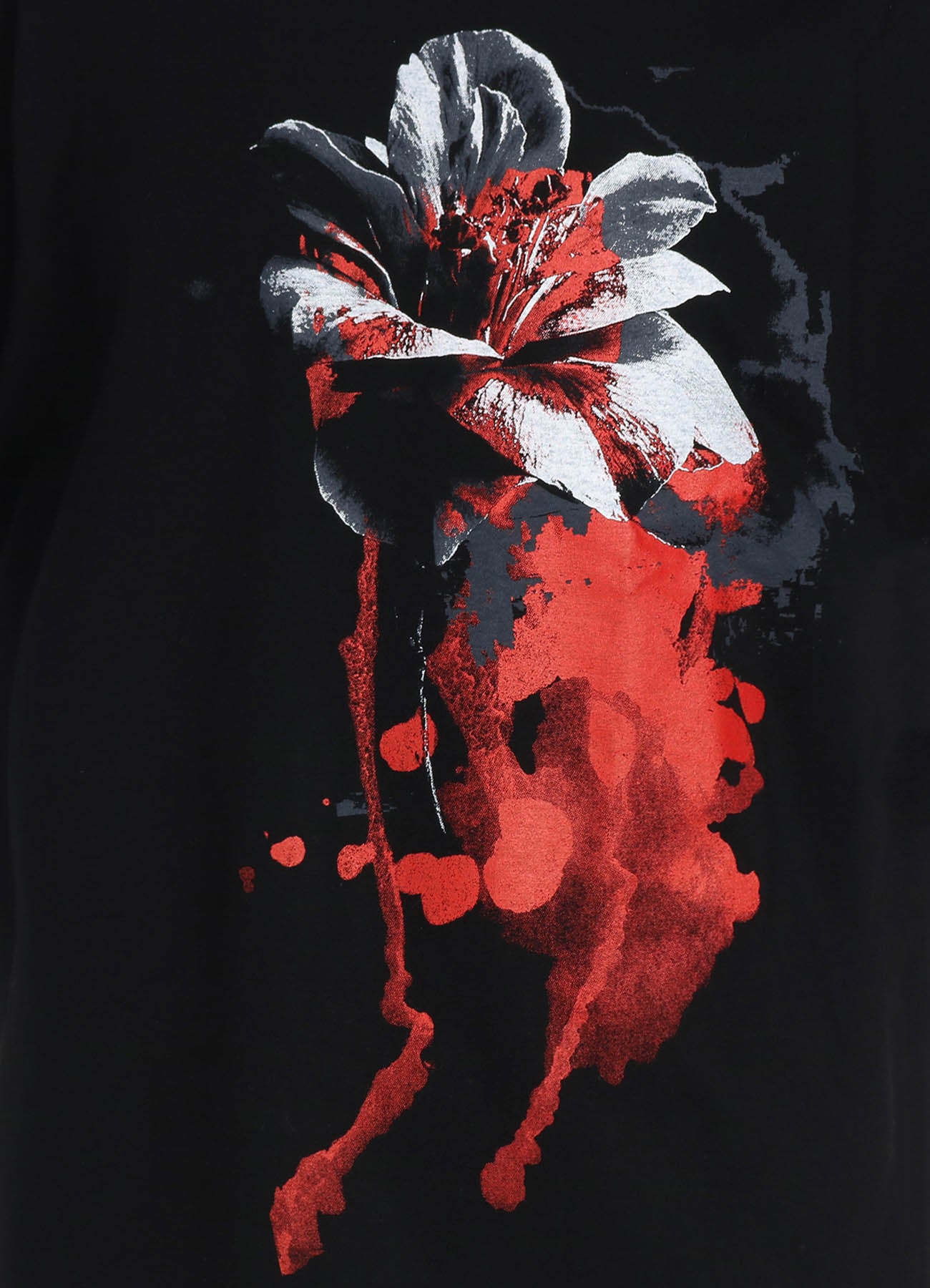 Eine Lilie ziert einen schwarzen Körper, strahlt Würde durch dynamische Komposition, Grautöne und lebhaftes Rot aus. Ideal als inneres oder eigenständiges Stück, sein grafisches Design verbessert jedes Outfit. Mit einem dezenten Logo im Nackenbereich verwendet es einen maßgeschneiderten Körper von Kume Sensin, der Komfort und Haltbarkeit gewährleistet.