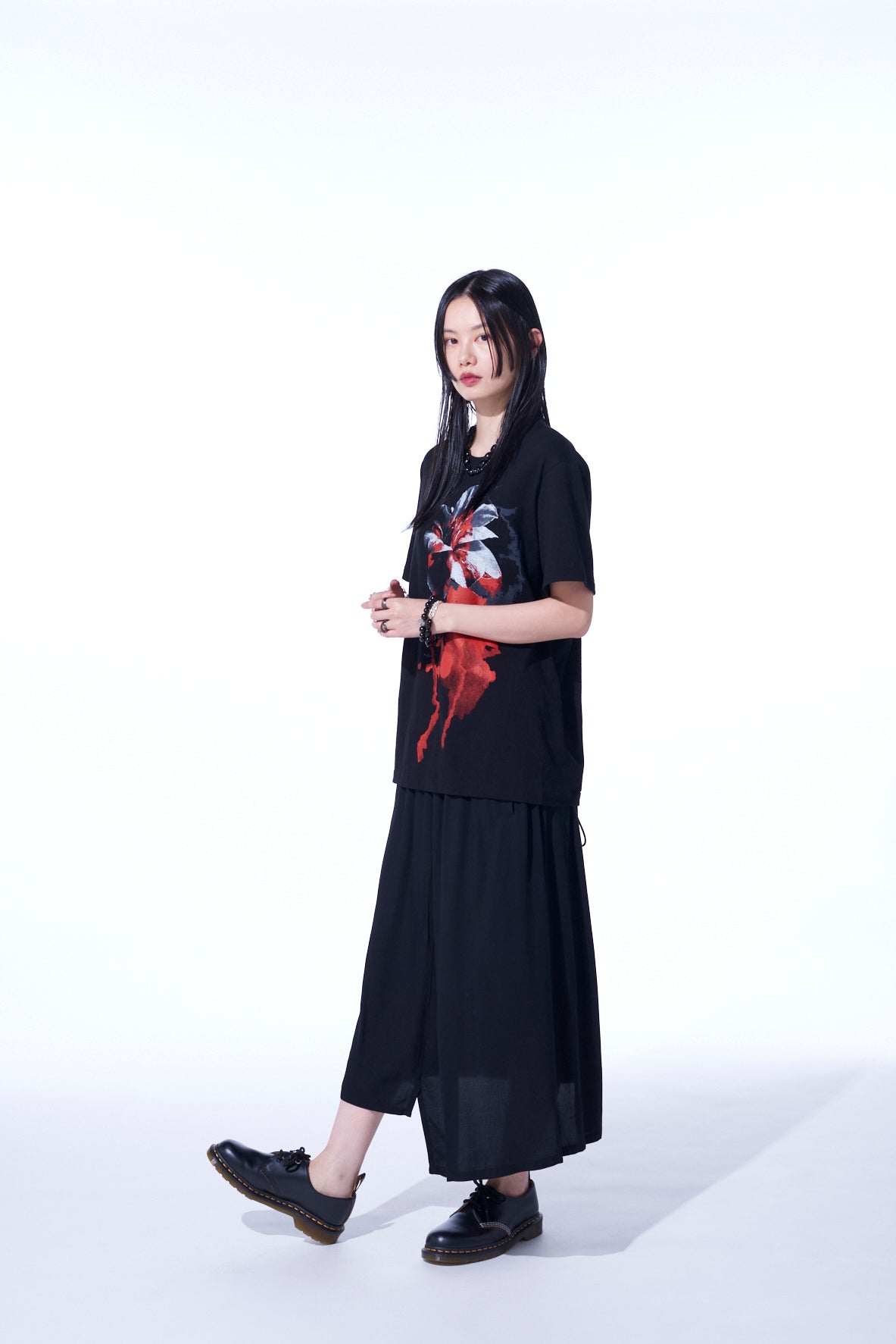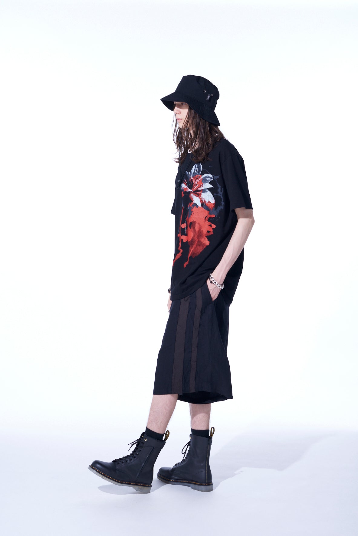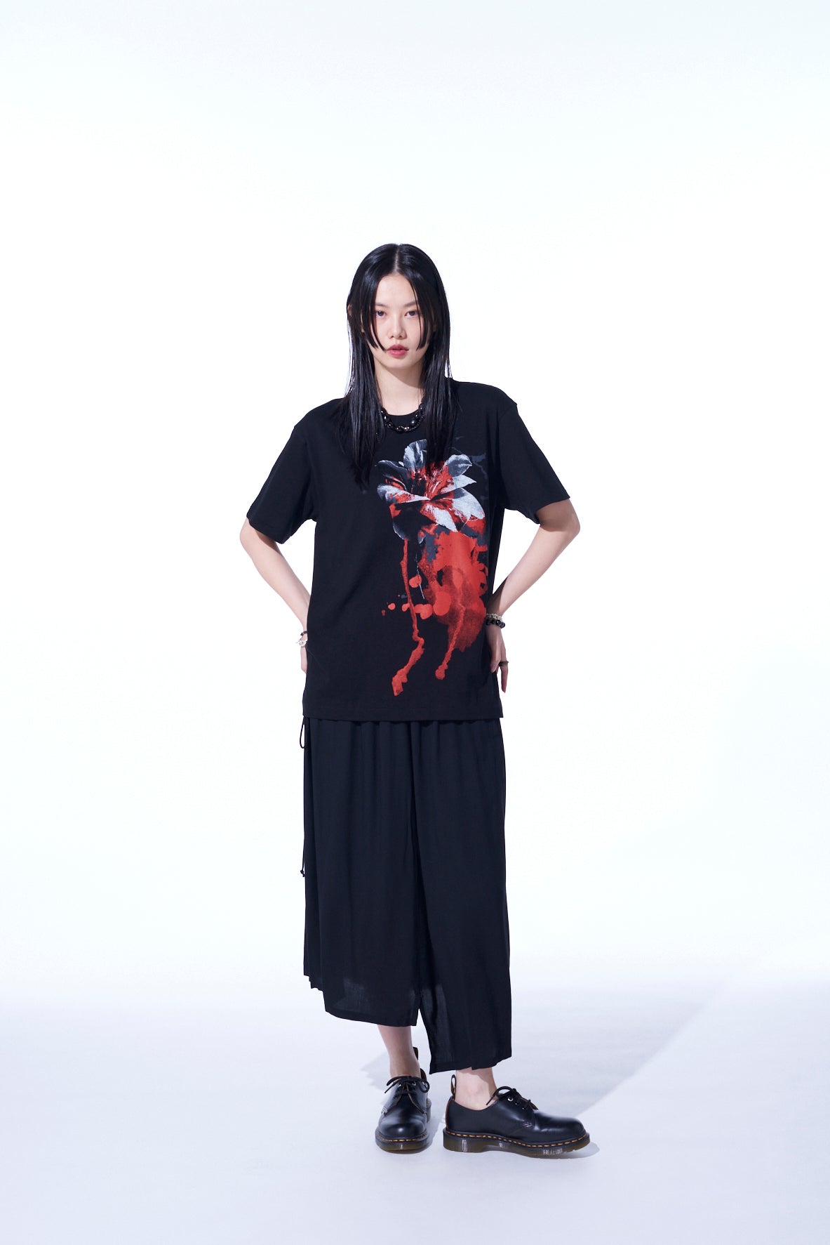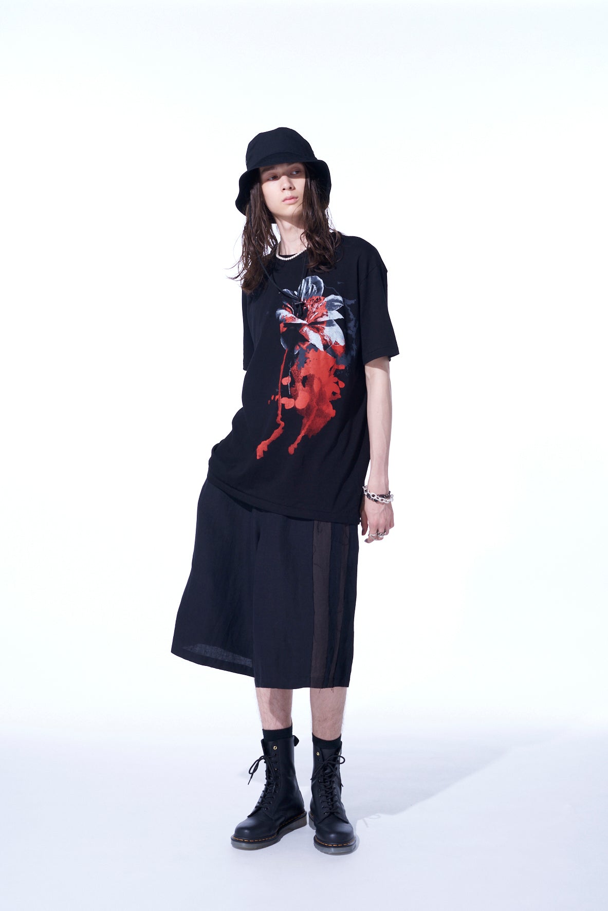 Eine Lilie ziert einen schwarzen Körper, strahlt Würde durch dynamische Komposition, Grautöne und lebhaftes Rot aus. Ideal als inneres oder eigenständiges Stück, sein grafisches Design verbessert jedes Outfit. Mit einem dezenten Logo im Nackenbereich verwendet es einen maßgeschneiderten Körper von Kume Sensin, der Komfort und Haltbarkeit gewährleistet.