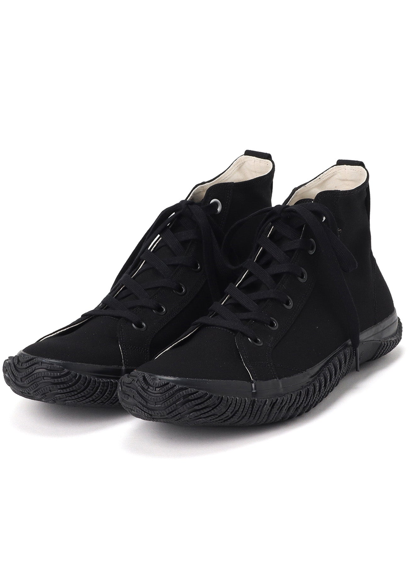 Diese Sneakers sind eine Zusammenarbeit mit der Marke "SPINGLE" und haben ein hochgeschnittenes Baumwoll-Canvas-Design. Die umlaufende Sohle bietet hervorragende Dämpfung, Haltbarkeit und Elastizität. Die schlichte Oberseite beinhaltet große, weit auseinander liegende Ösen für einen stilvollen Look. Die off-white x schwarzen Sneakers kommen mit schwarzen und weißen Schnürsenkeln.