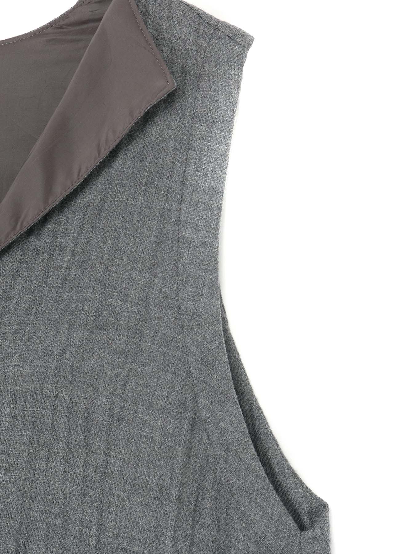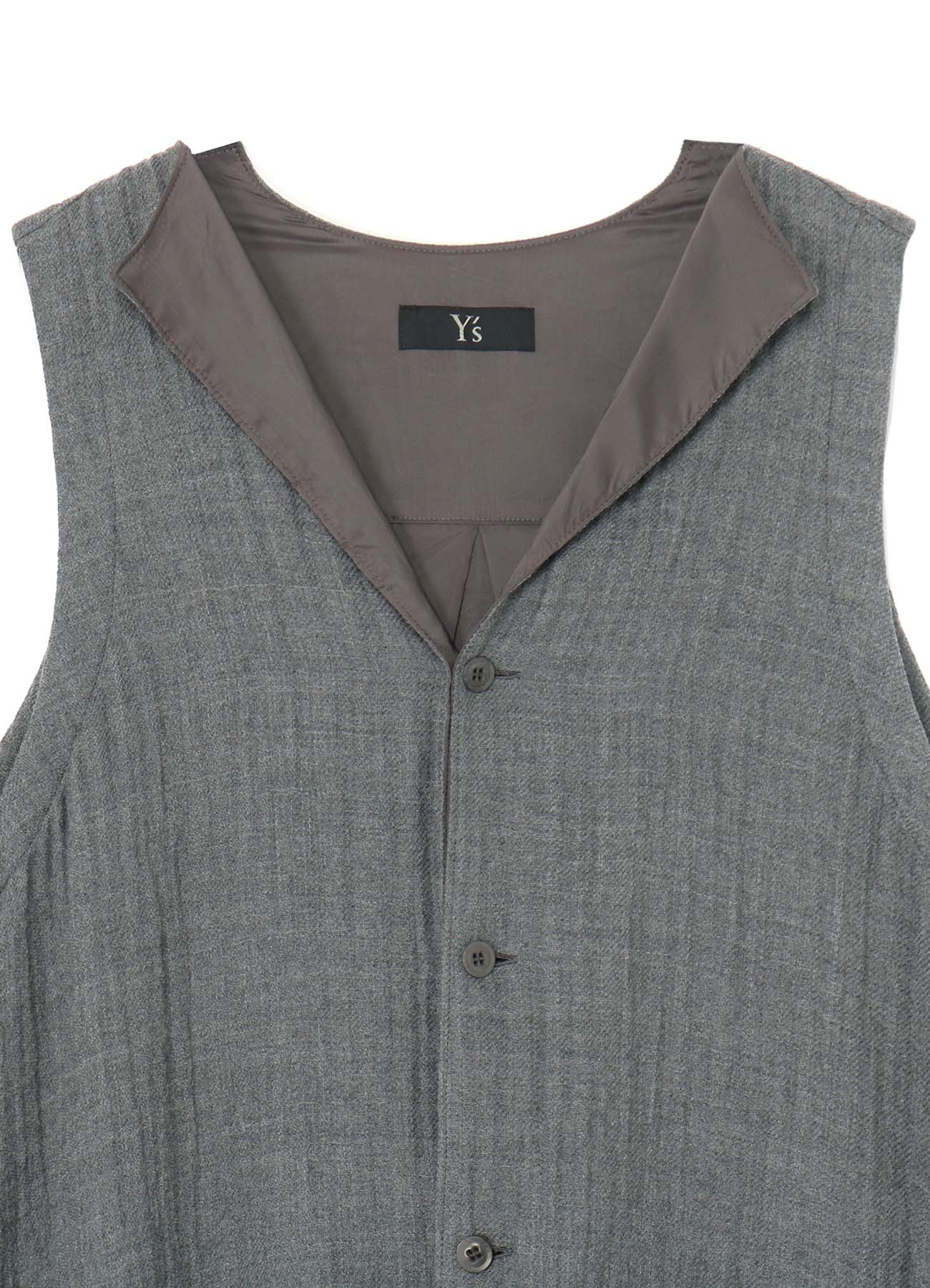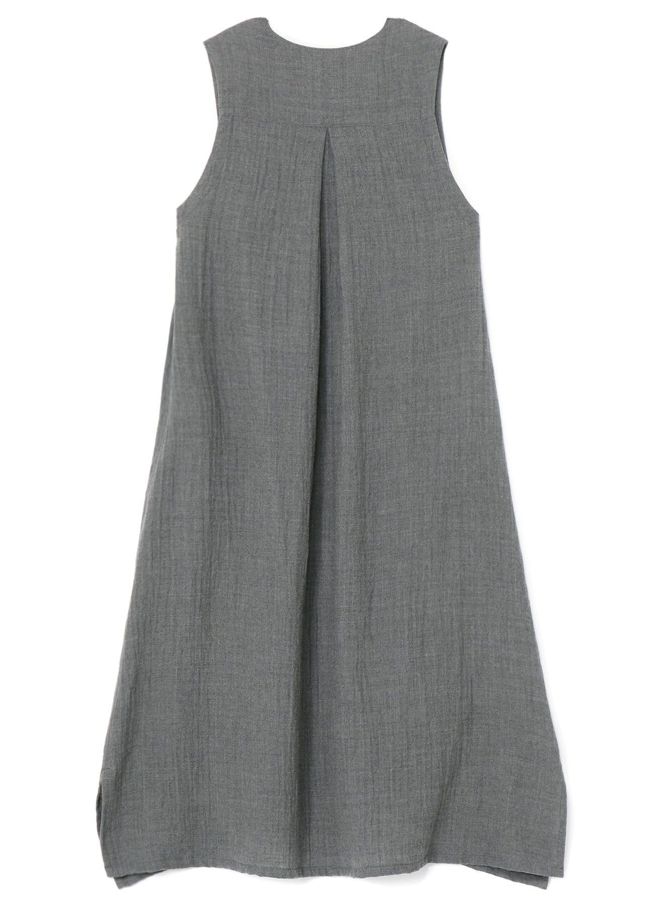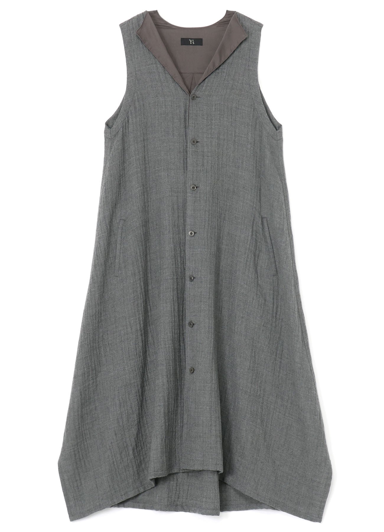 Ein ärmelloses Hemdkleid aus Wolle, das mit einem Soft-Wash-Finish behandelt wurde, um ein angenehmes, strukturiertes Gefühl zu bieten. Es verfügt über einen geräumigen Armausschnitt, der sich für das Tragen von innerer Kleidung eignet, und vielseitige Stylingmöglichkeiten als langer Weste, indem man die Vorderseite aufknöpft. Subtil akzentuiert mit einem Innenfutter, das am Kragen hervorschaut, erhältlich in Grundfarben.