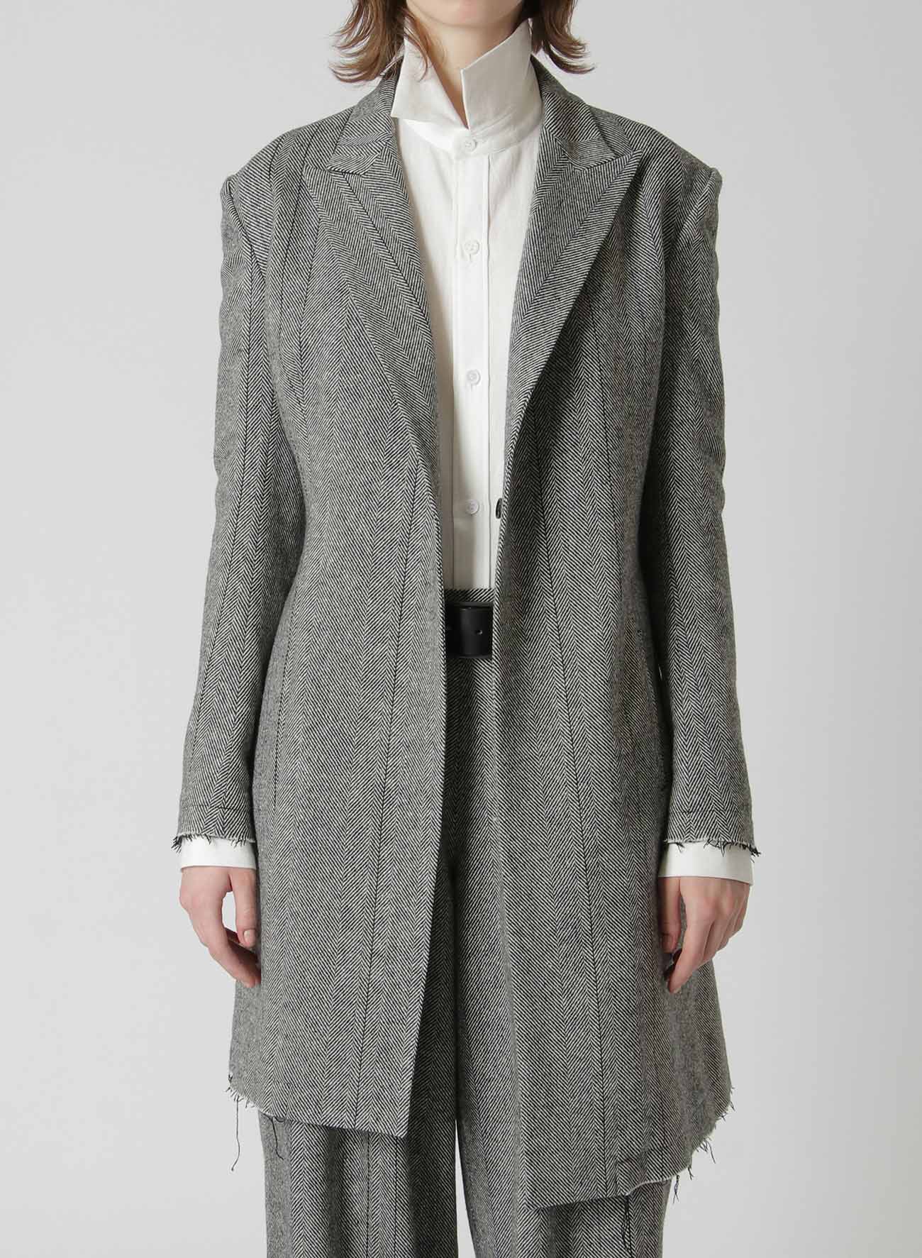 WOOL TWEED HERRINGBONE ASYMMETRIC JACKET