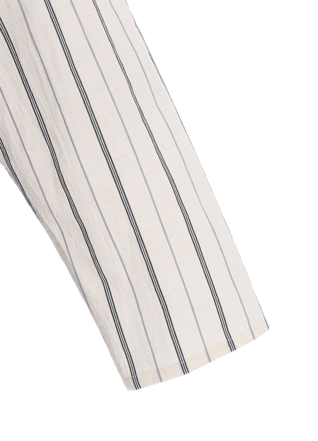 This Henri-neck pullover combines soft cotton fabric with a striped pattern material, featuring a unique textured surface through fine wrinkles. It exudes both quality and subtle individuality, making it ideal for daily wear.