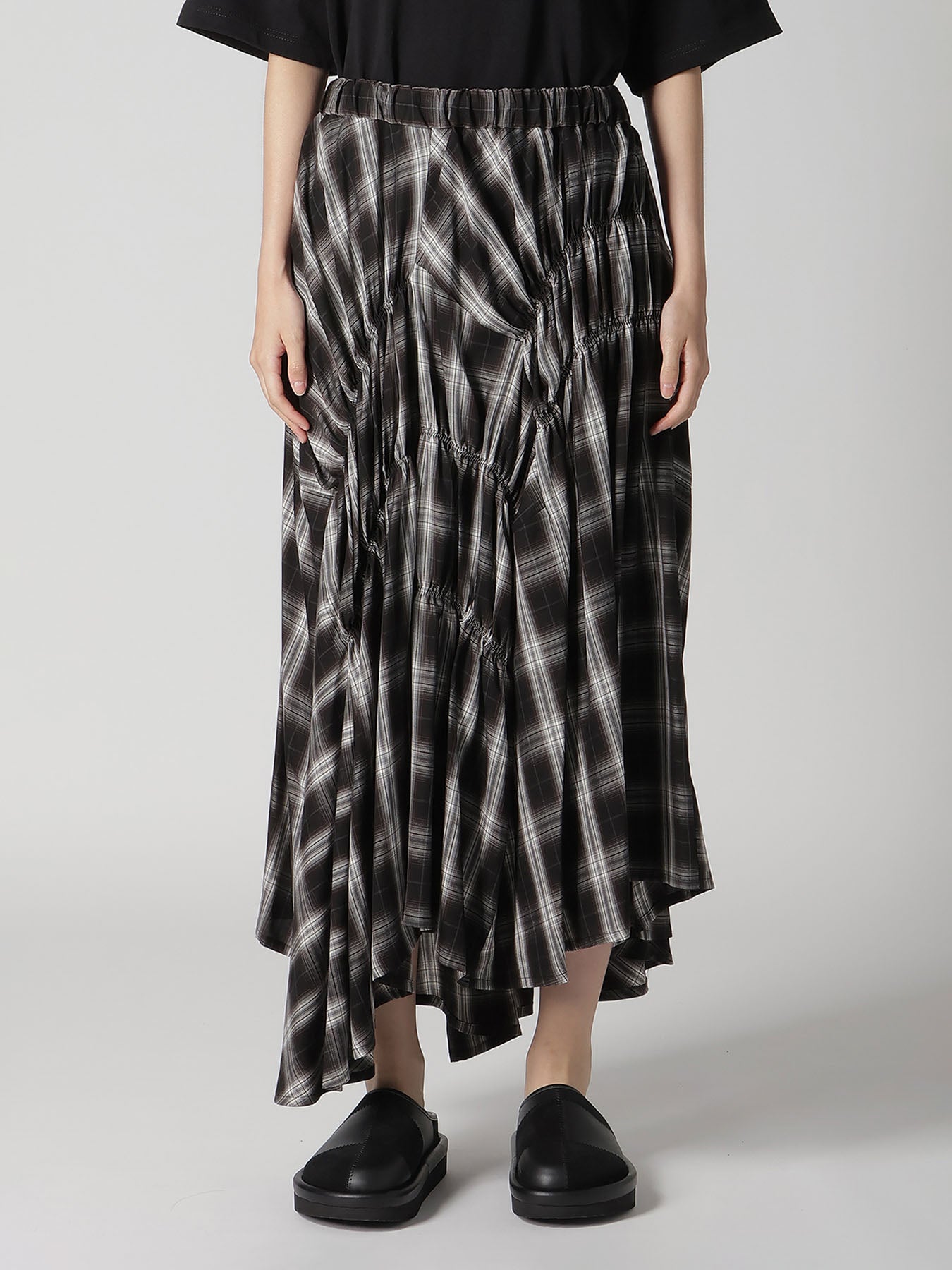 CUPRO SPUN PLAID GATHER SKIRT