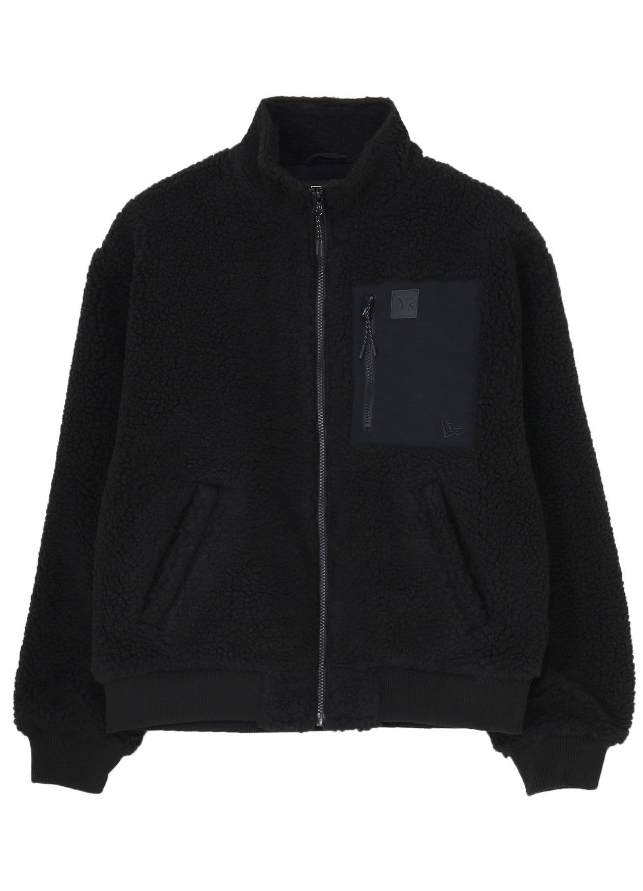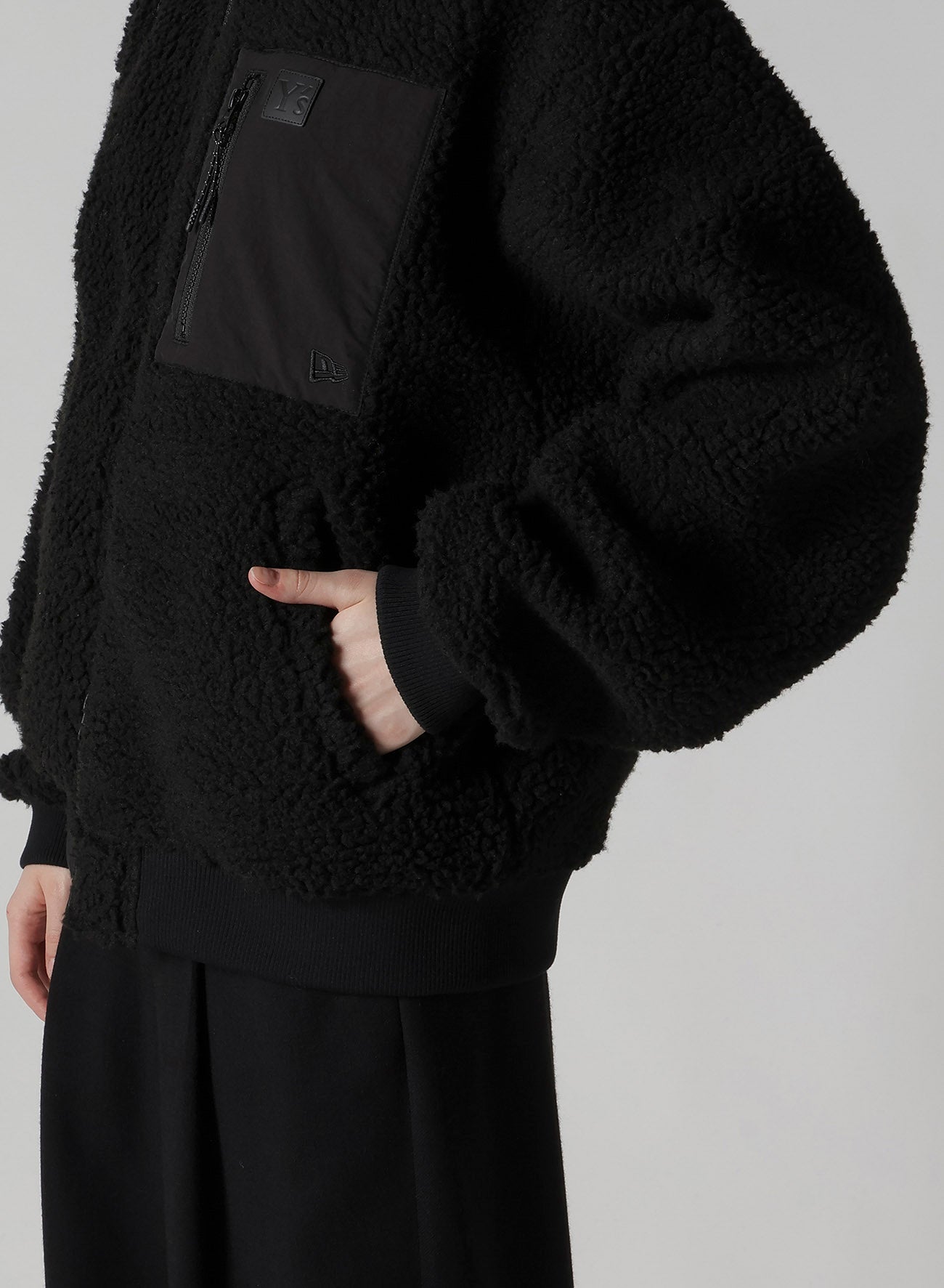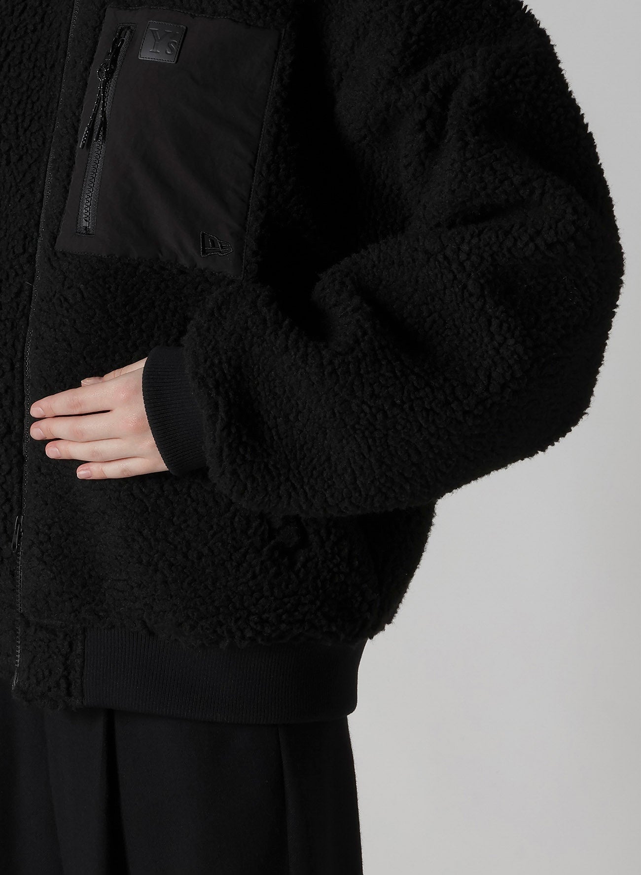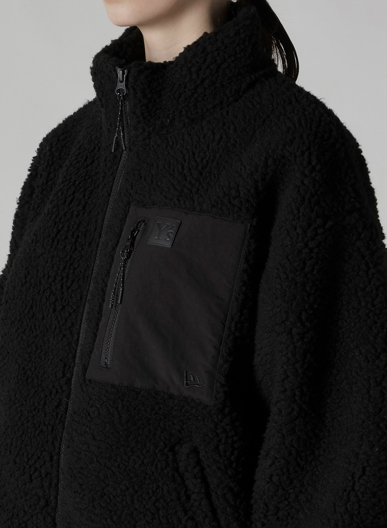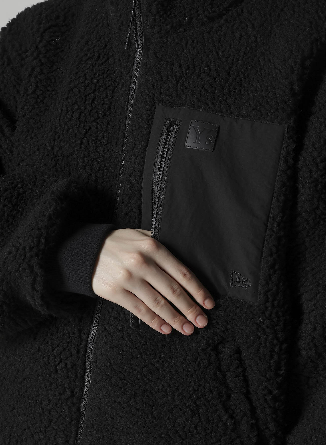 Die Herbst/Winter 2025 Kollektion von Y's × New Era bietet eine Blouson aus winddichtem und feuchtigkeitsspeicherndem Schaf-Boa. Ein Leder-Patch mit Y's-Branding ziert die Brusttasche. Die Oversized-Silhouette ist für alle Geschlechter geeignet.
