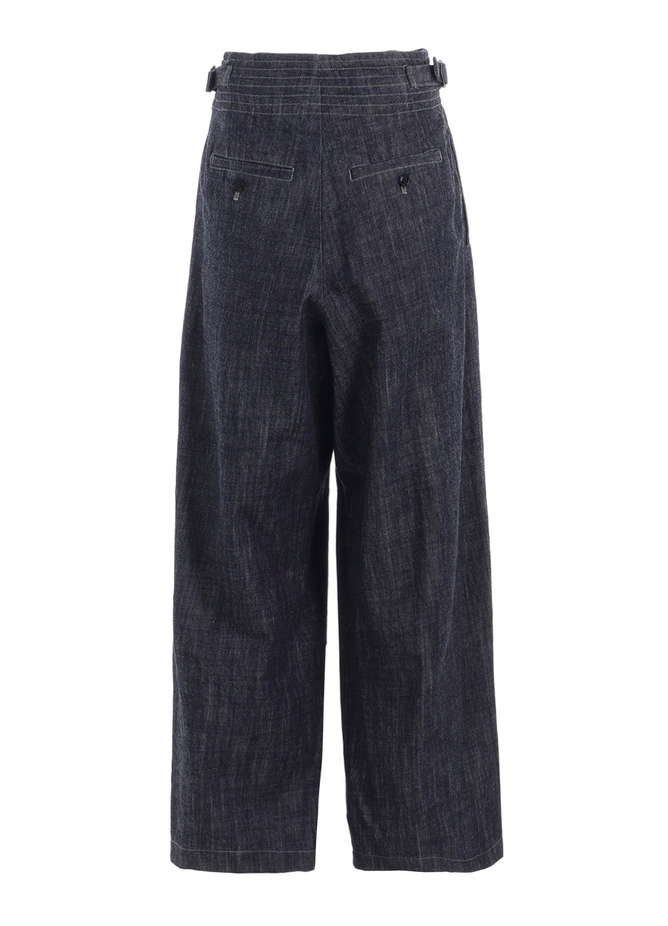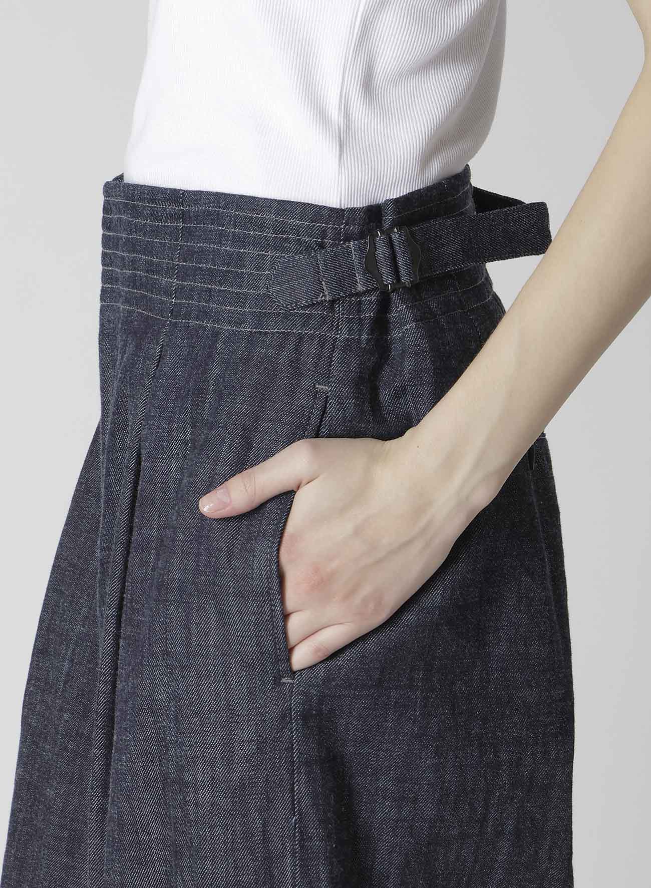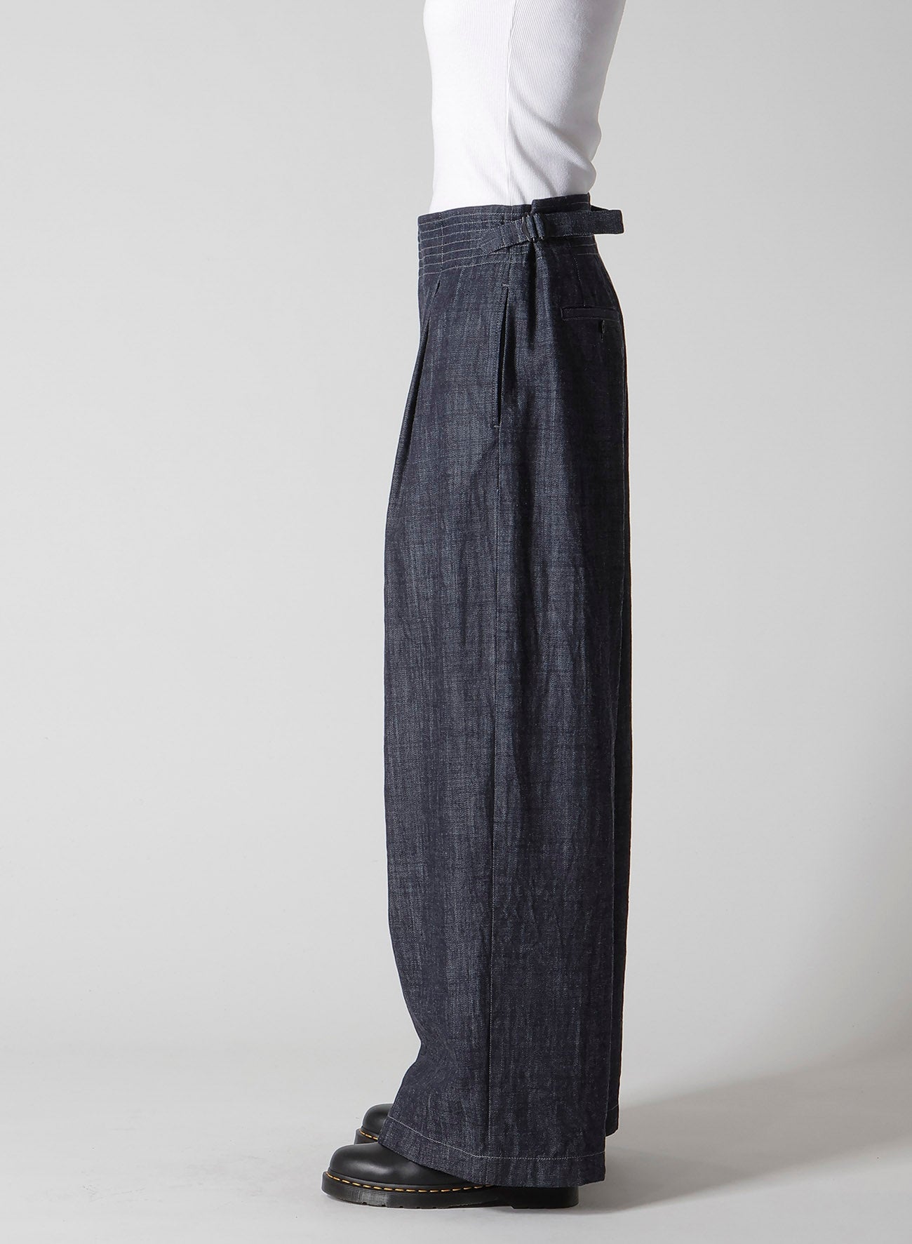 Diese Jeanshosen zeichnen sich durch markante Nähte an der Taille aus. Der leichte Denim wird mit teilweise dünneren Garnen gewebt, um eine einzigartige Pufferung und weiche Textur zu schaffen. Sie haben eine voluminöse Silhouette, mit verstellbaren Taillengürteln an den Seiten.