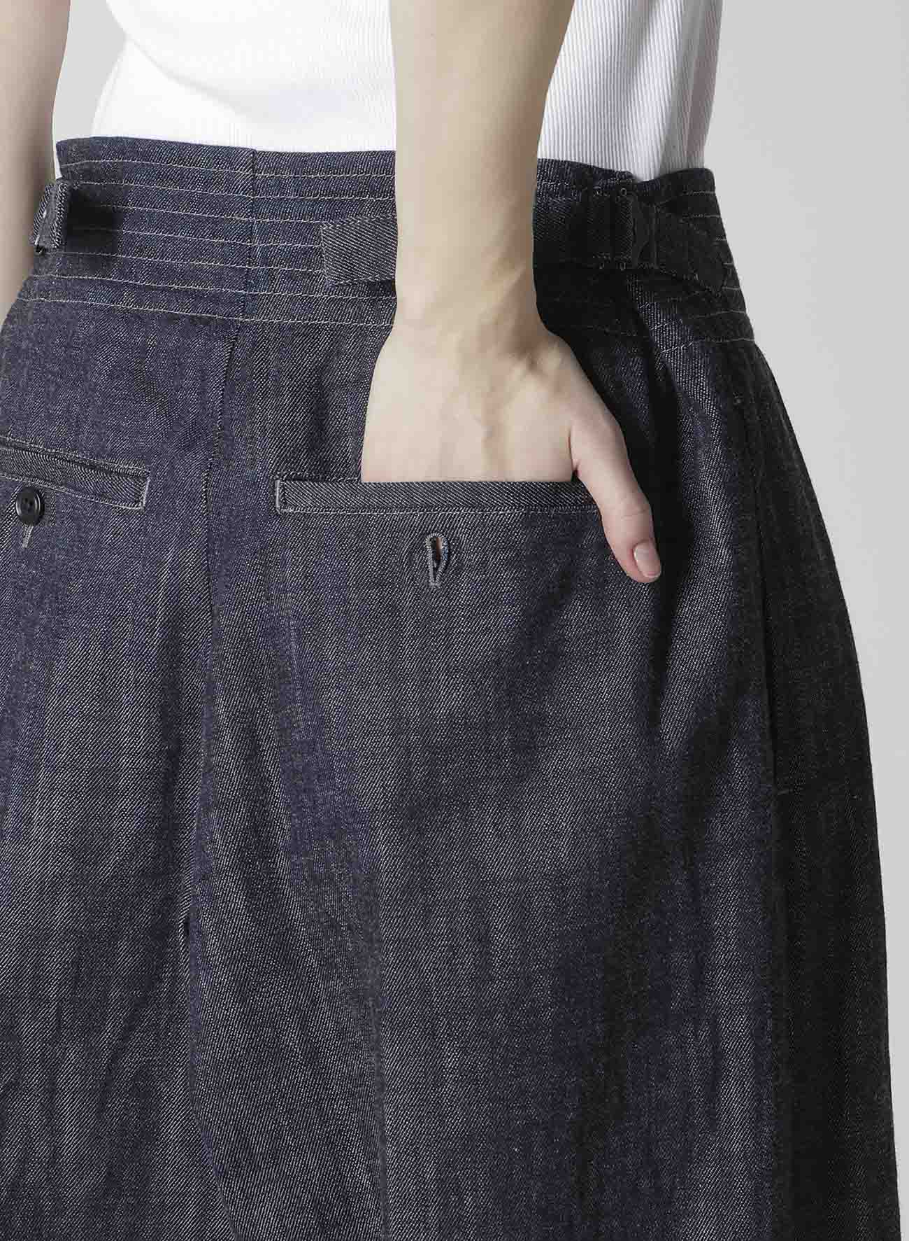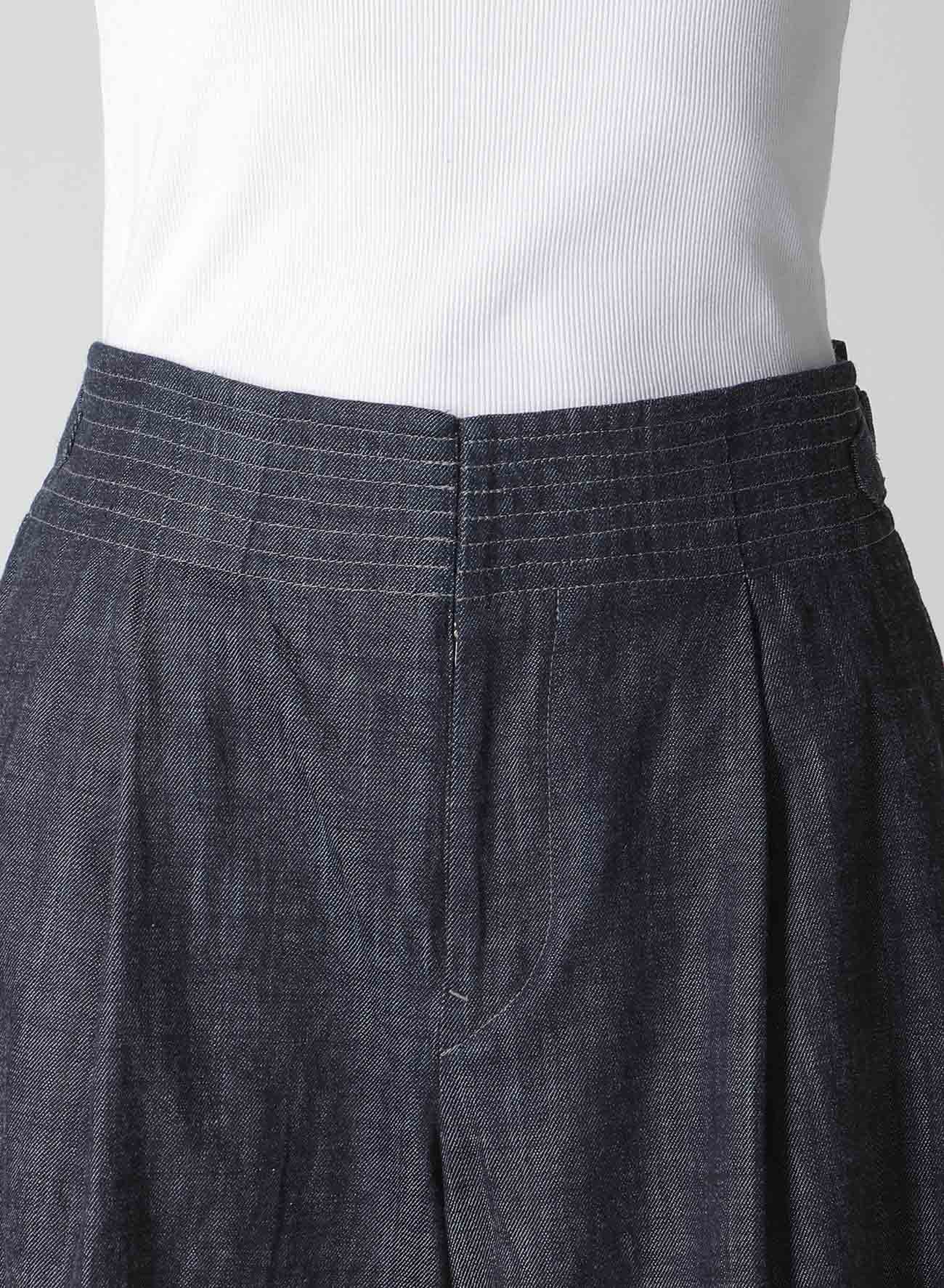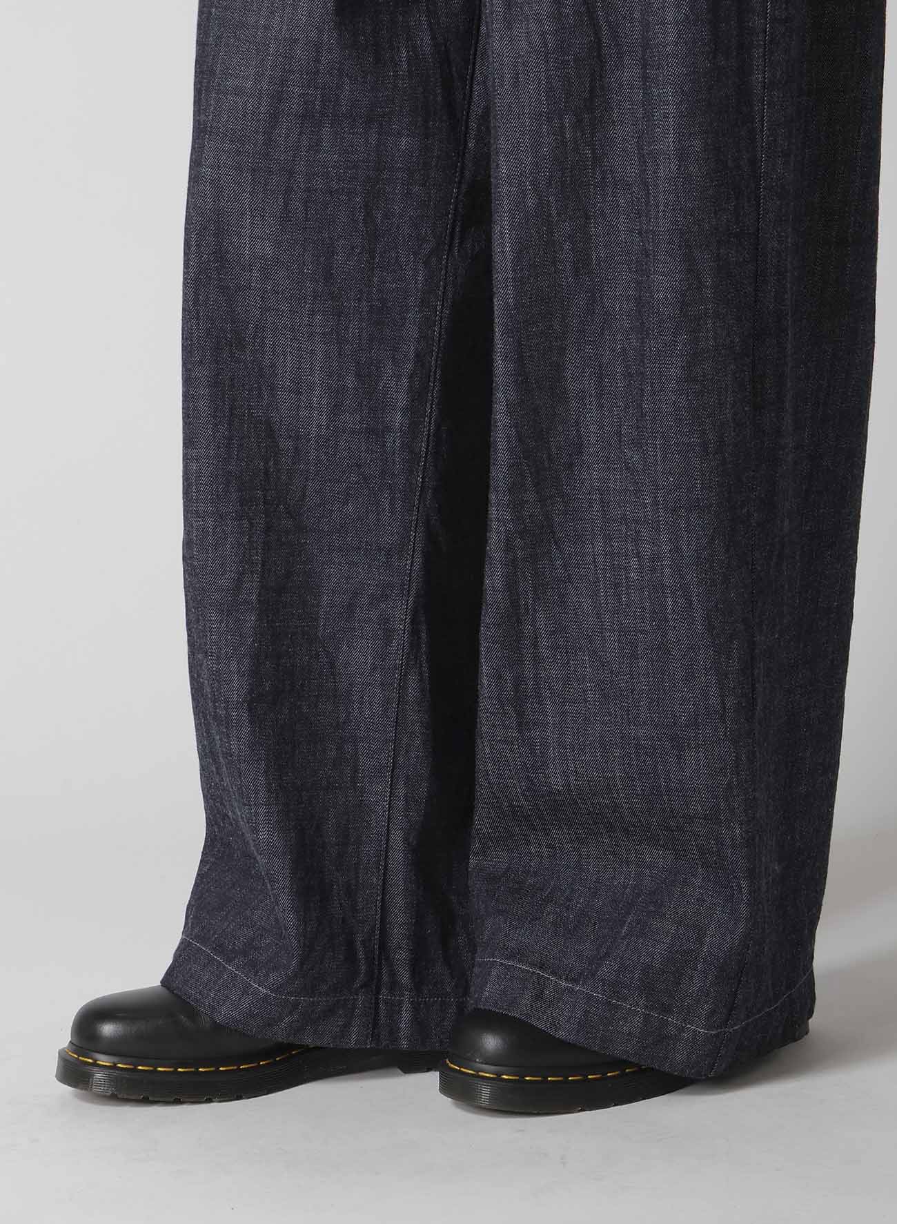 Diese Jeanshosen zeichnen sich durch markante Nähte an der Taille aus. Der leichte Denim wird mit teilweise dünneren Garnen gewebt, um eine einzigartige Pufferung und weiche Textur zu schaffen. Sie haben eine voluminöse Silhouette, mit verstellbaren Taillengürteln an den Seiten.