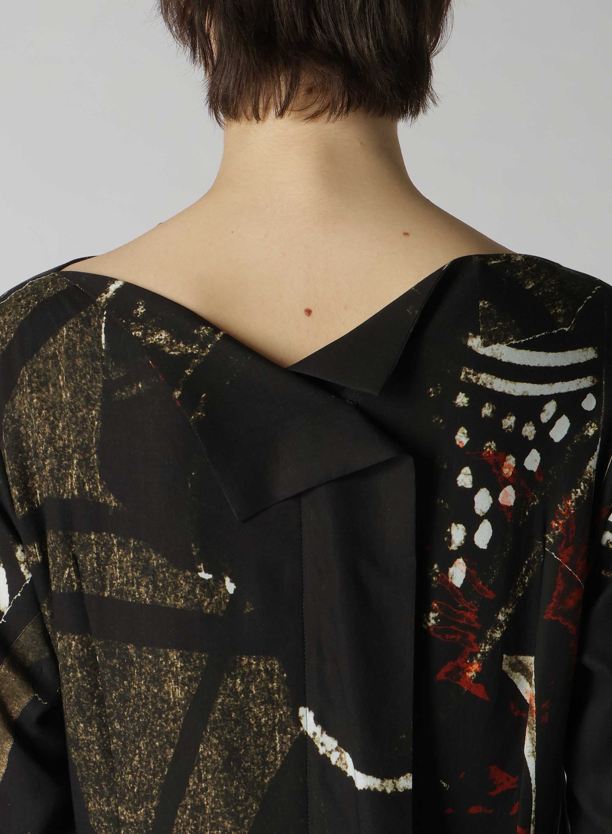 RY/LAWN AFRICAN FLOWER PT COLLARLESS DRESS