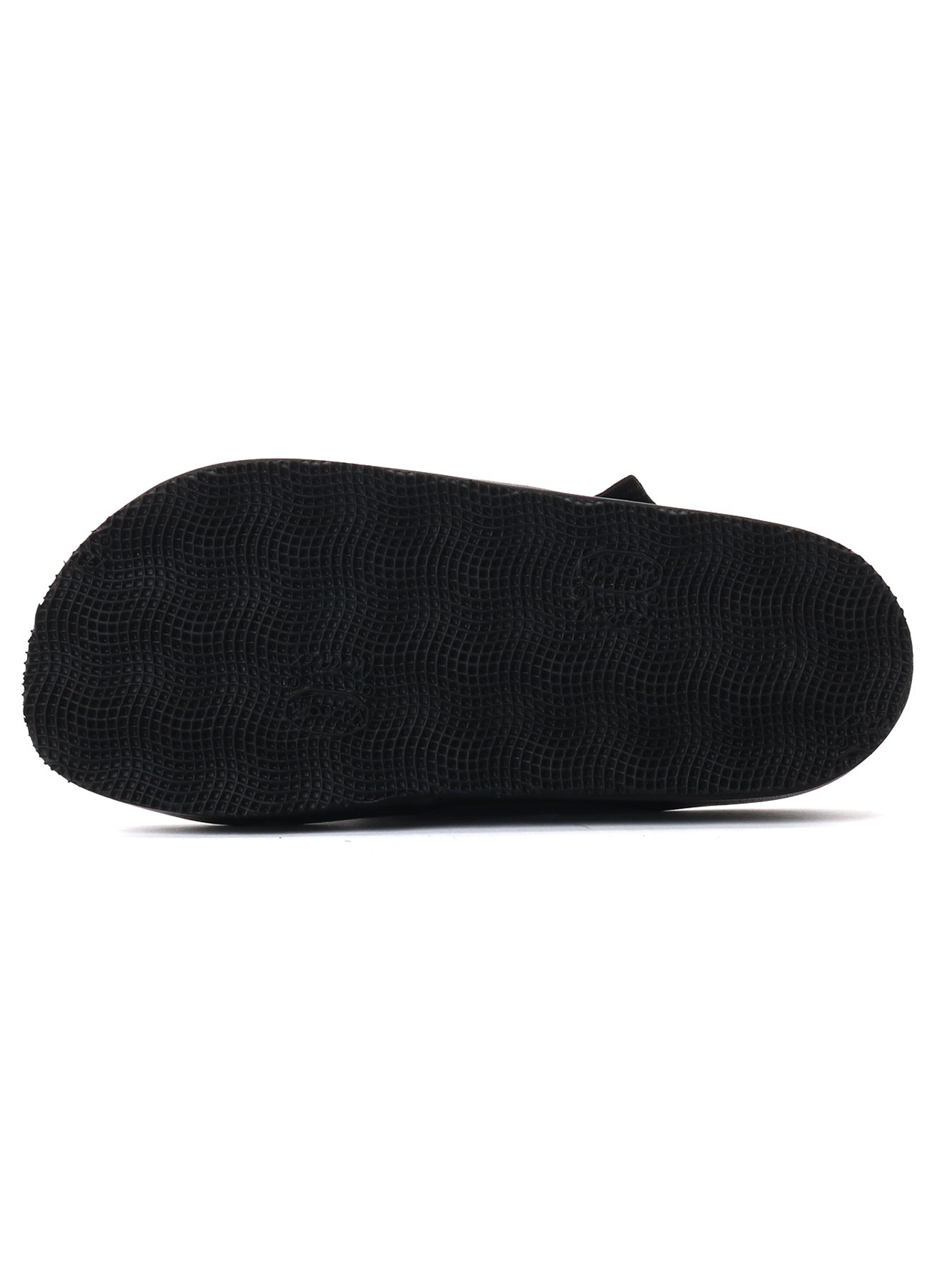 These sandals feature a unique combination of striped pattern in rayon fabric and leather. They're designed with a draped upper using fabric from the Yohji Yamamoto collections, adding an avant-garde touch. The voluminous sole wrapped in leather gives a casual yet fashion-forward impression. Be cautious of slight color transfers due to leather's nature.