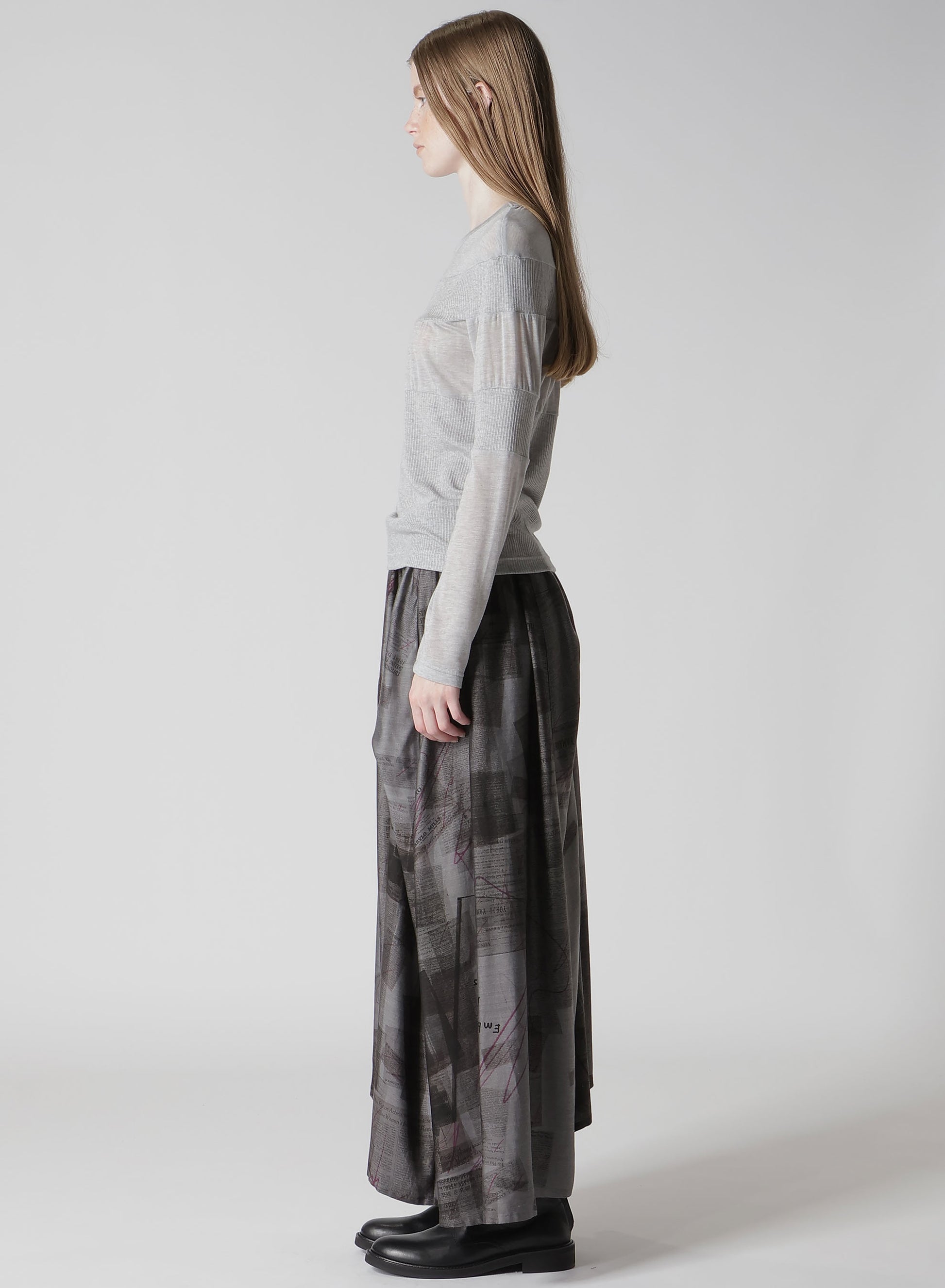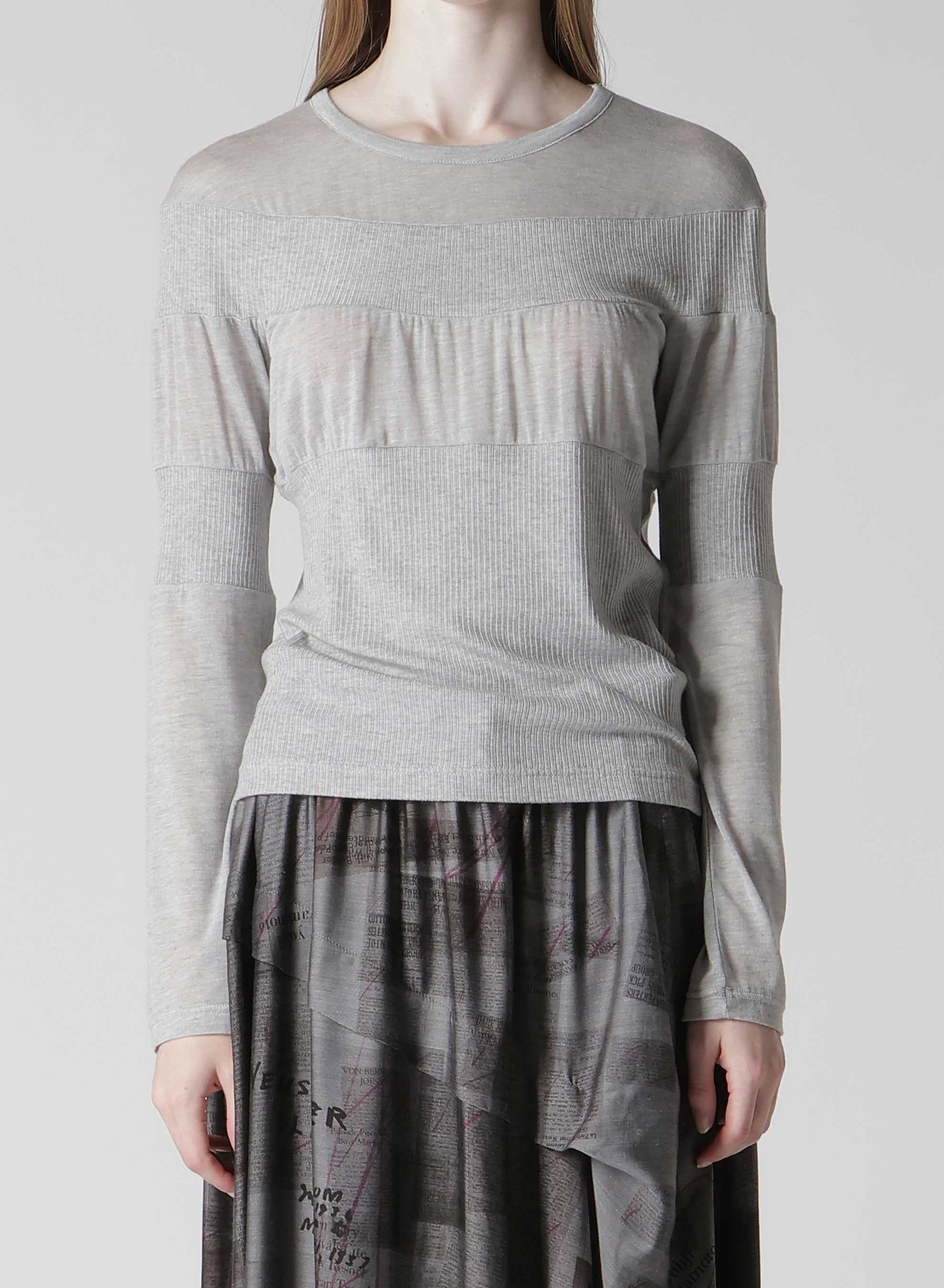【2/20 12:00 release】GAUZE JERSEY X RIB PANEL ROUND NECK LONG SLEEVE TEE