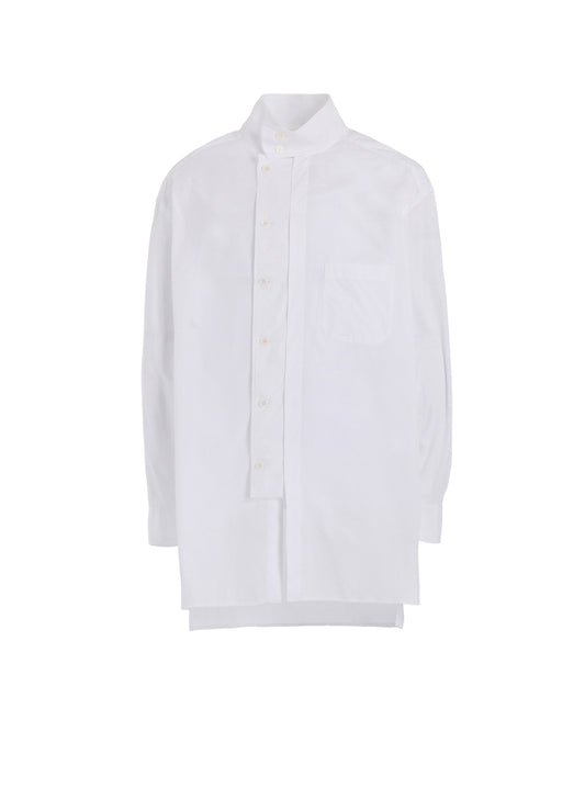 COTTON BROAD CLOTH STAND COLLAR LONG SHIRT WITH ROUNDED HEM