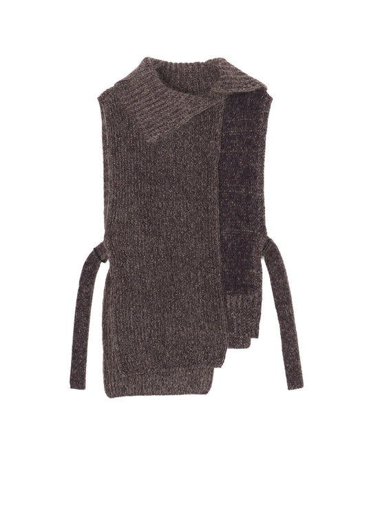 RANDOM RIB STRIPE HIGH NECK ASYMMETRIC T