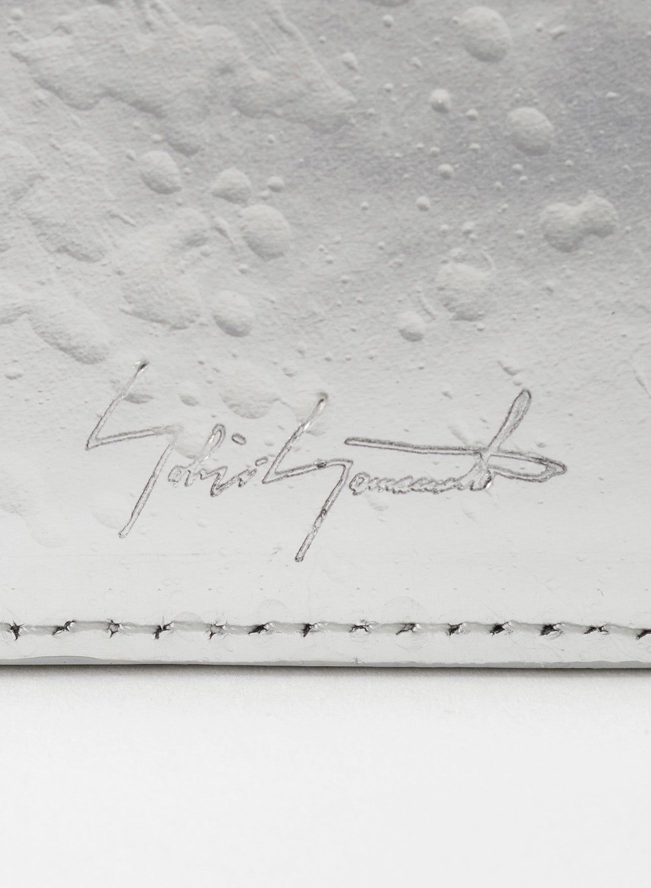 - Made from foil leather with unique enameled droplets.